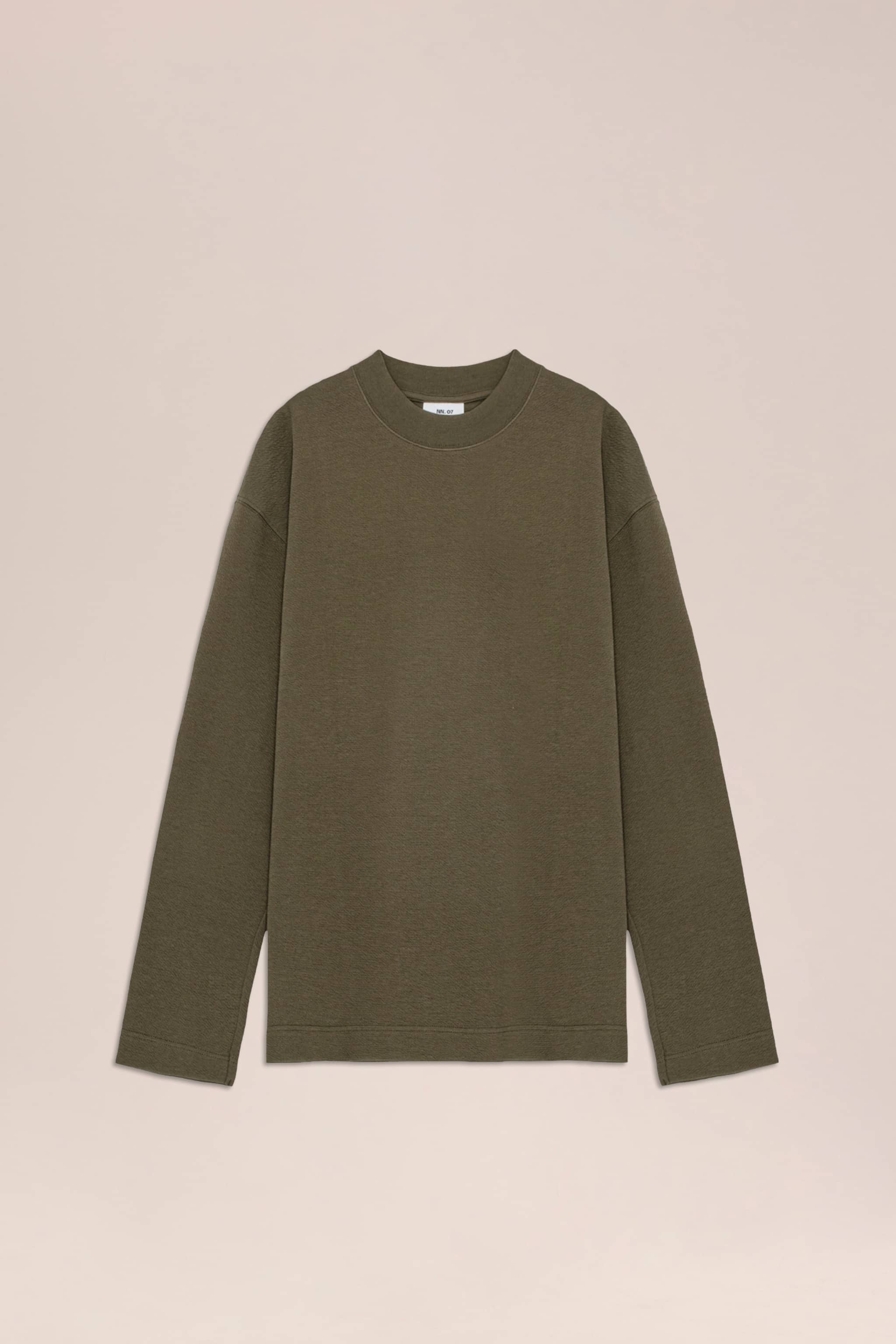 Afslappet t-hirt skabt i en blød scuba jacquard-blanding af økologisk bomuld. Designet med en bred ribkant ved halsen.