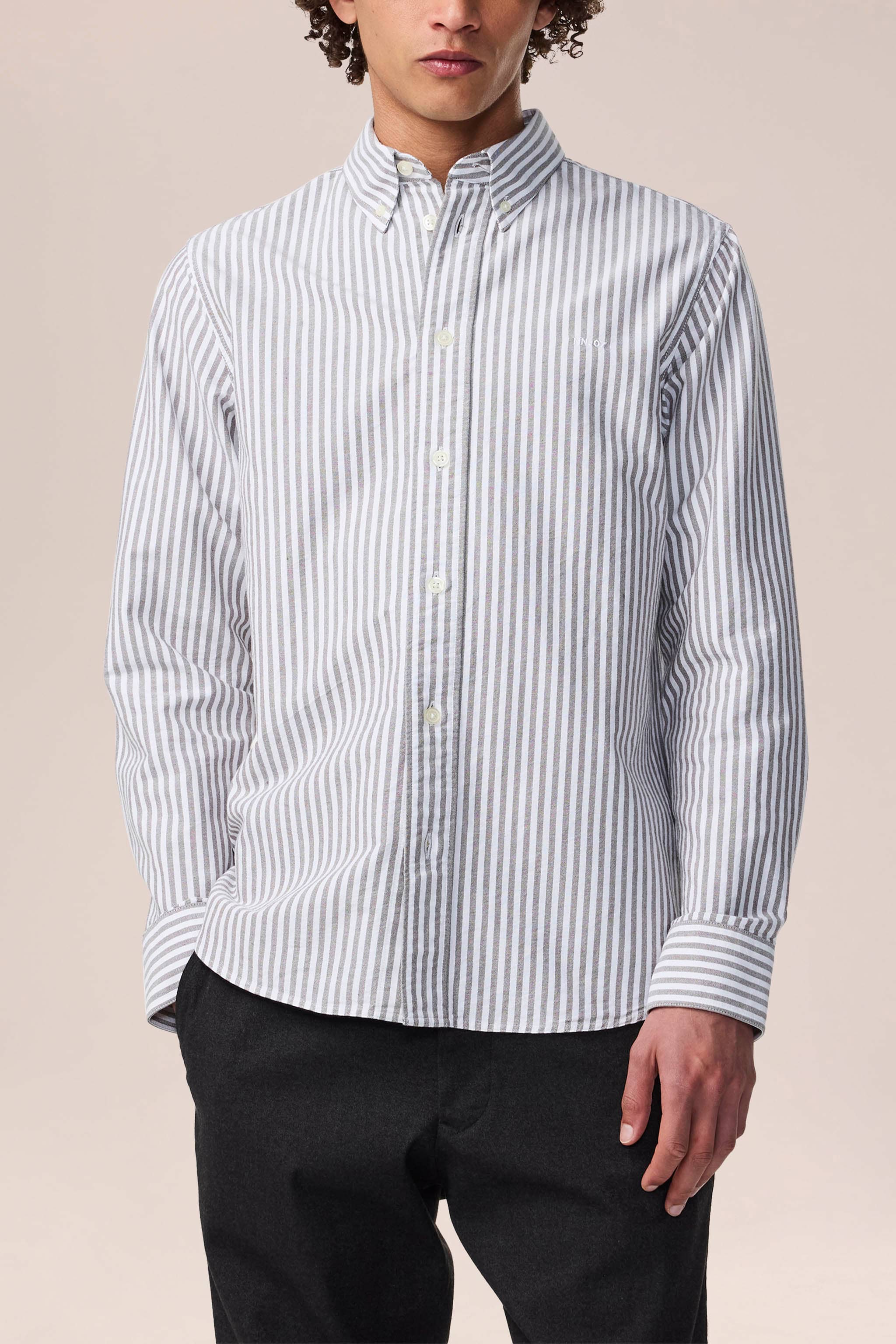 Button-down-skjorte vævet i et Oxford-mønster af klassisk blød økologisk bomuld med imiterede NN.07-logo-perlemorsknapper.
