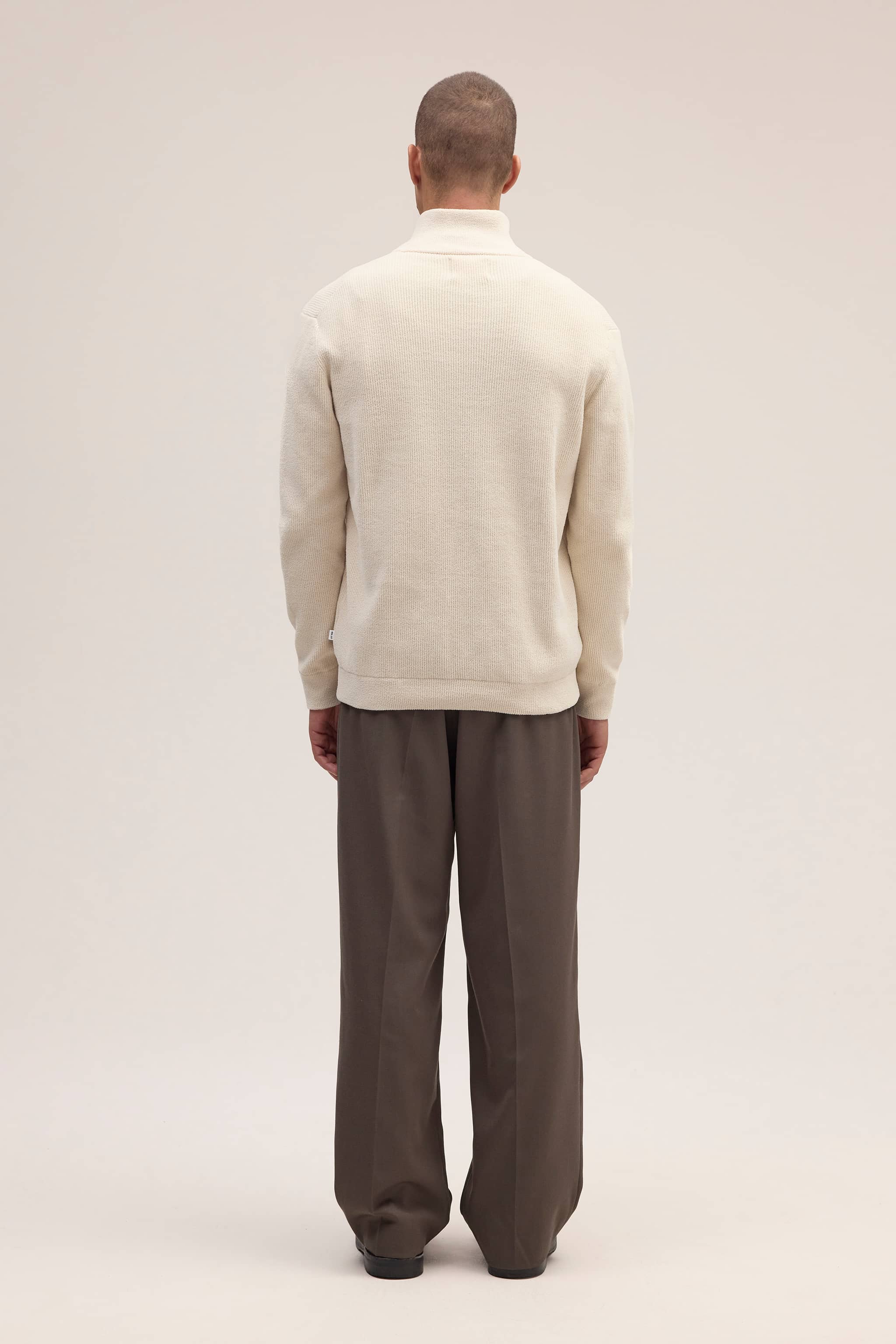 Half-zip sweater fremstillet i ultrablød chenille med en mat tekstur. Designet med stående krave og ribstrik-detaljer for en afslappet og behagelig fornemmelse.