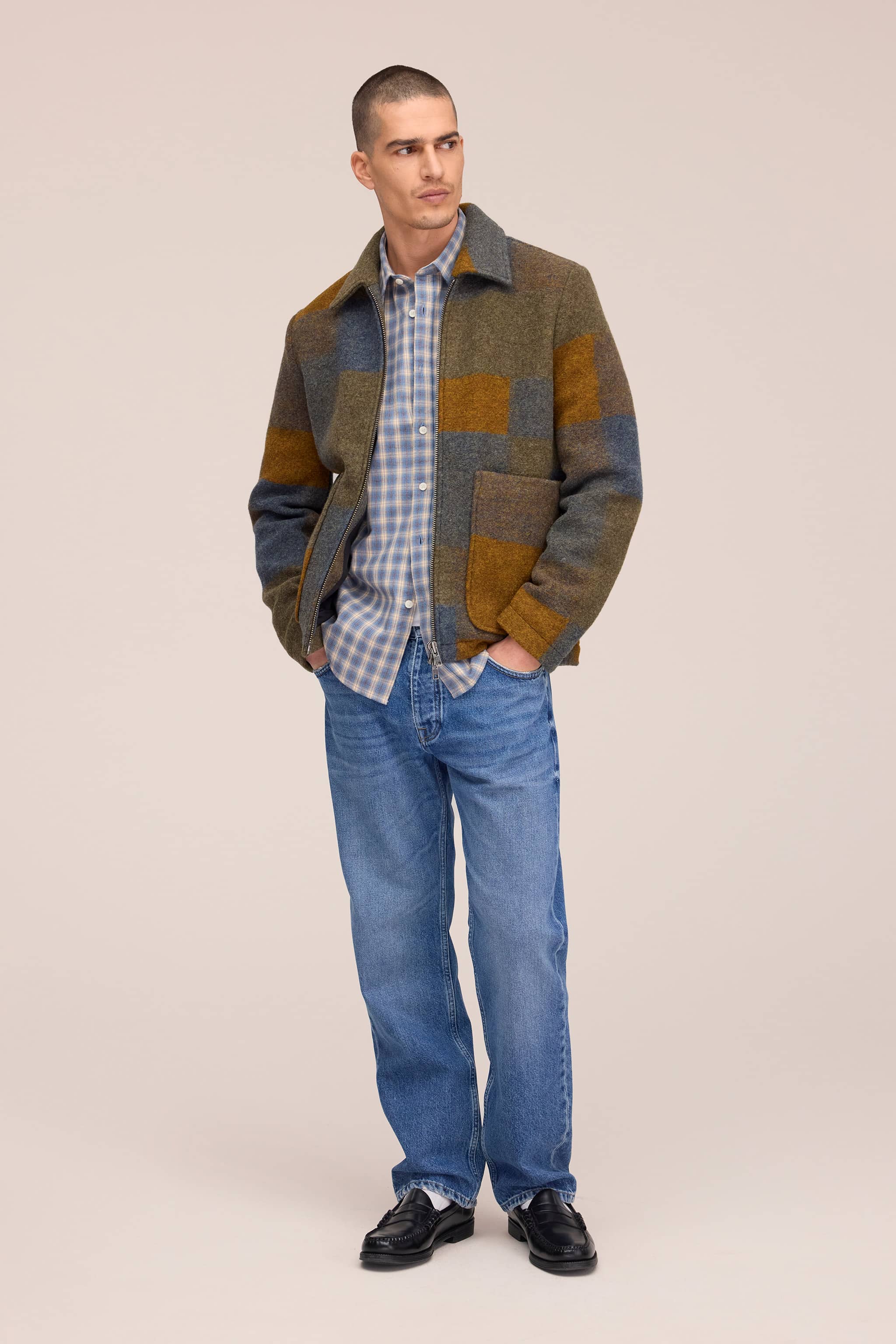 En raffineret jakke fremstillet i et førsteklasses materiale fra det anerkendte væveri British Millerain. Jakken er lavet i økologisk bomuld og behandlet med proprietære voks-teknikker, udviklet gennem mere end et århundrede, hvor voksen er dybt imprægneret i fibrene for øget holdbarhed, vandafvisning og et ensartet udtryk.