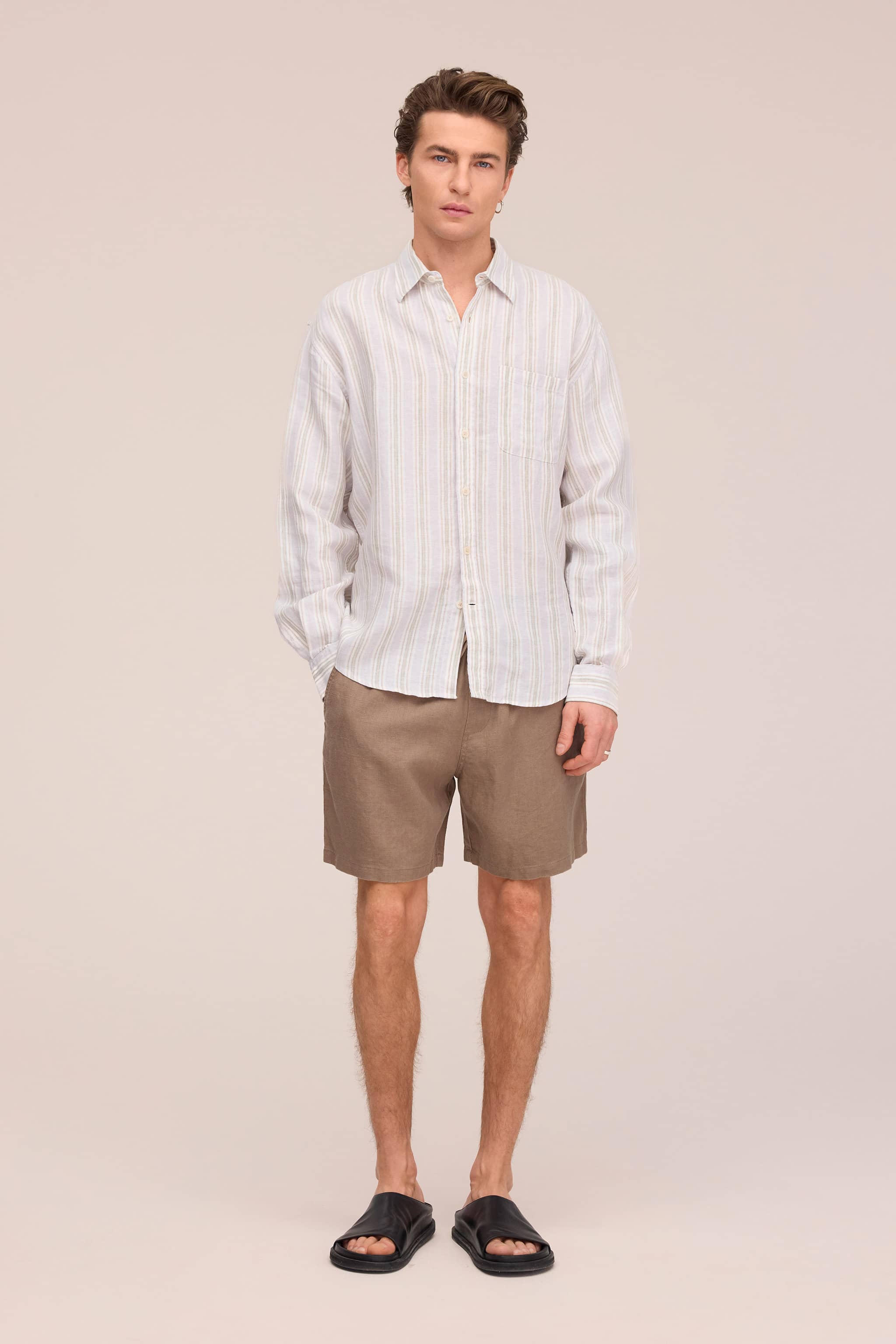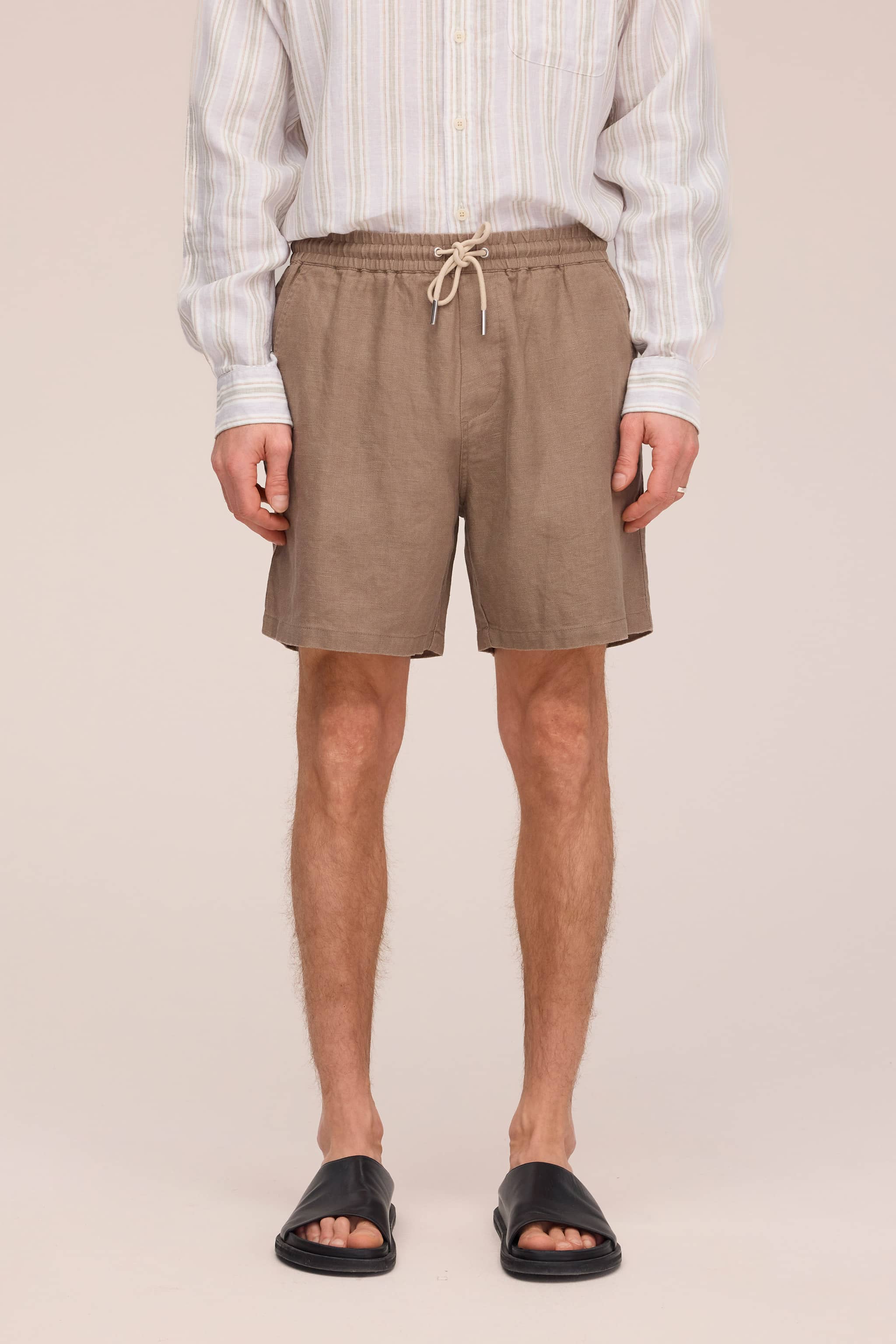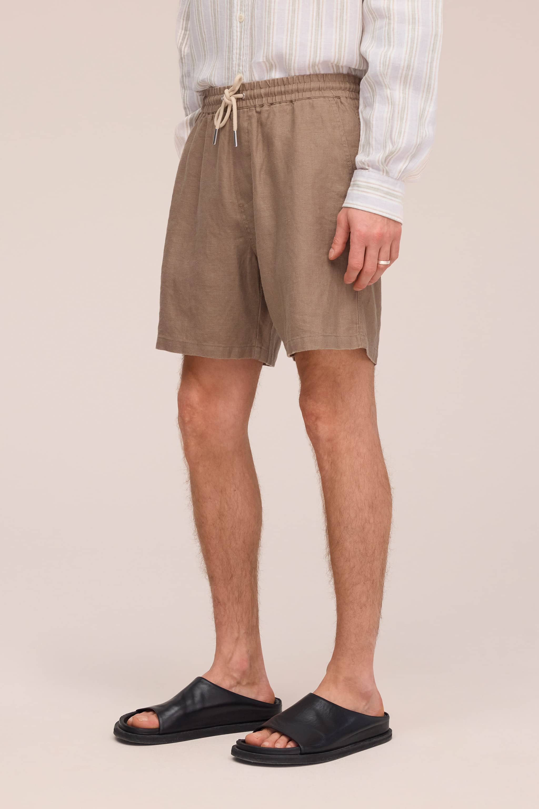 Dress-shorts skabt i åndbart 260 g/m² europæisk hør, afsluttet med snørelukning og elastisk talje for et behageligt fit.