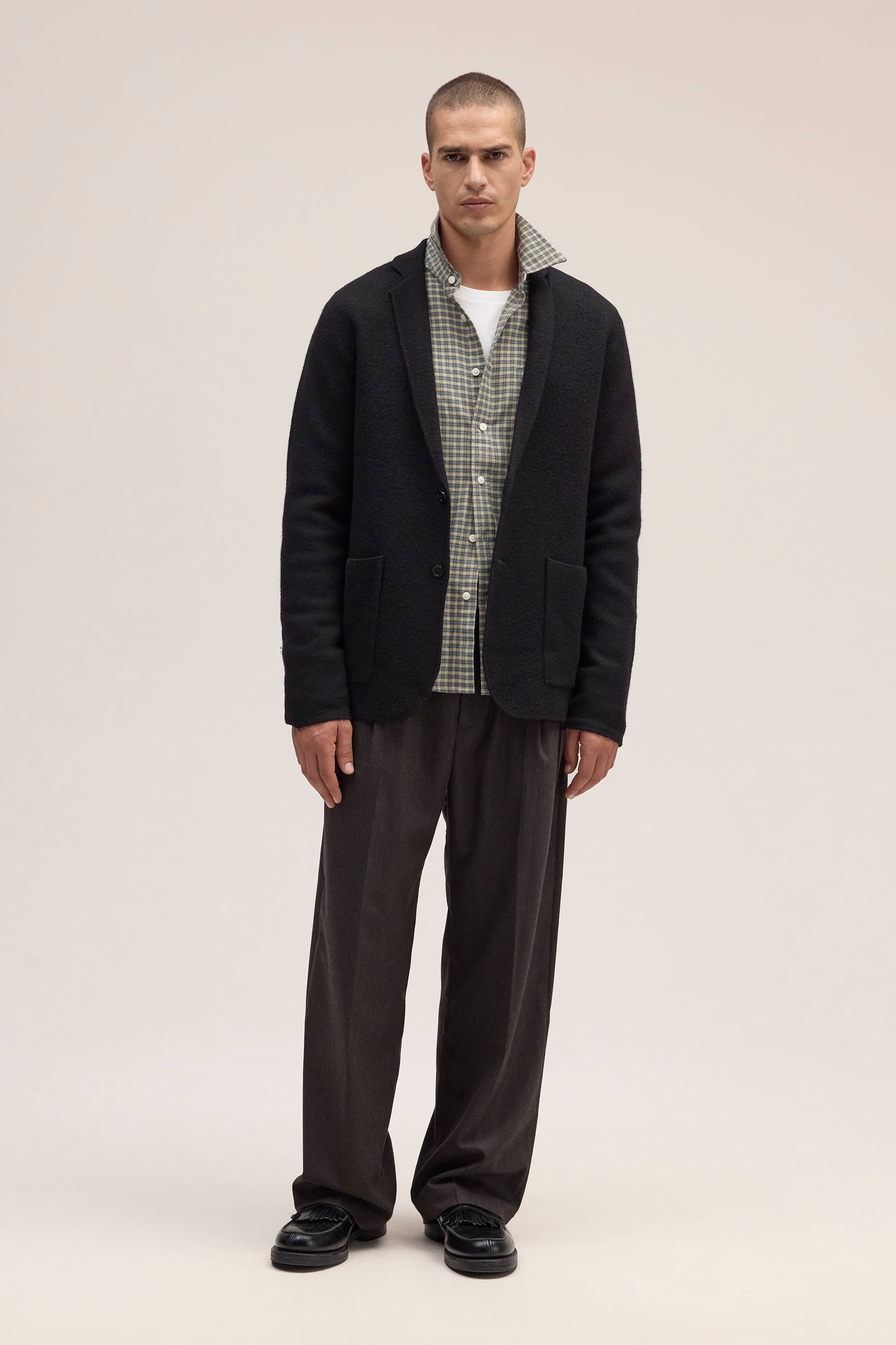 Raffineret take på den klassiske blazer fremstillet af certificeret uld med blød håndføling. Designet med glat jerseystrik, knaplukning og komfortabel stretch for bevægelsesfrihed.