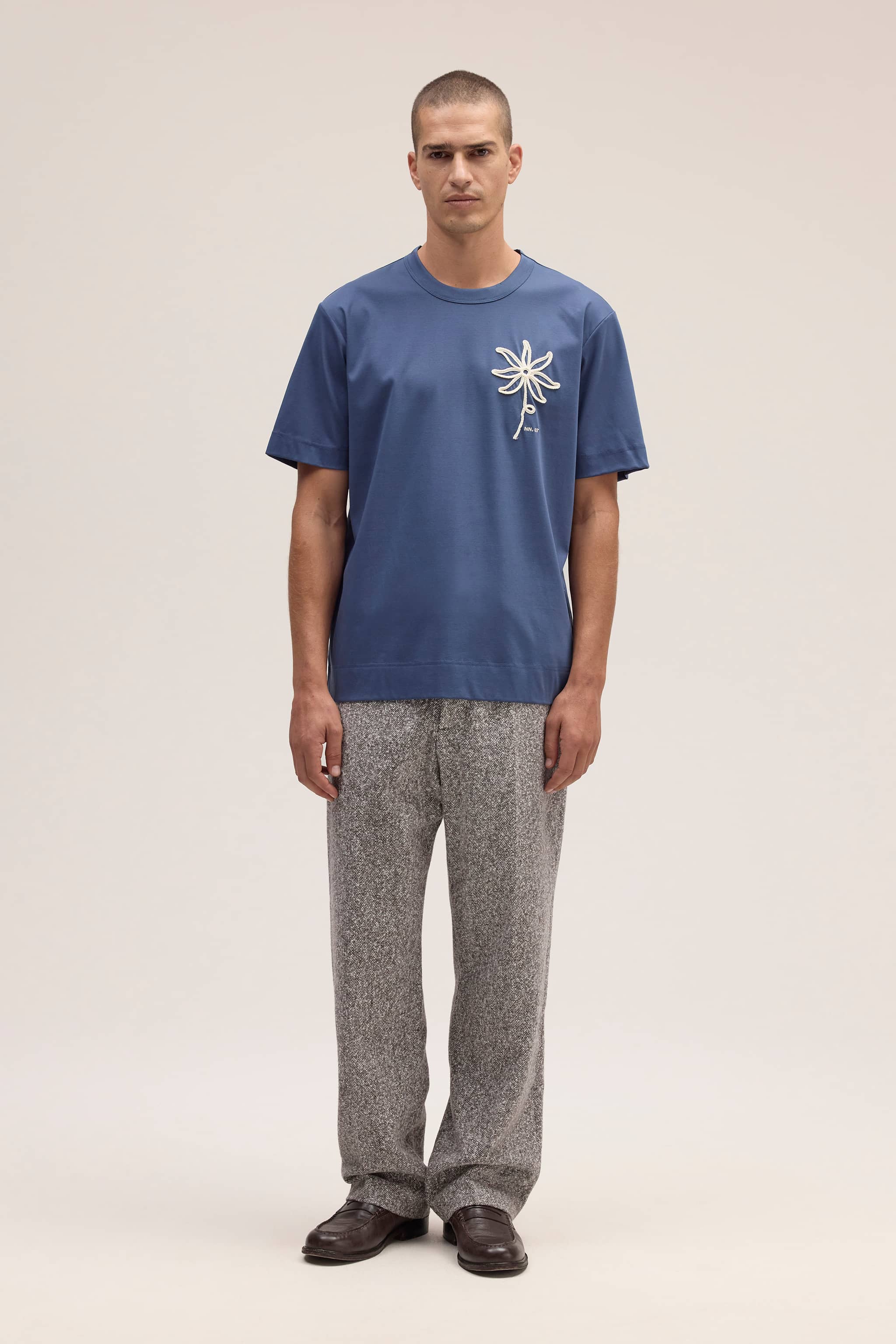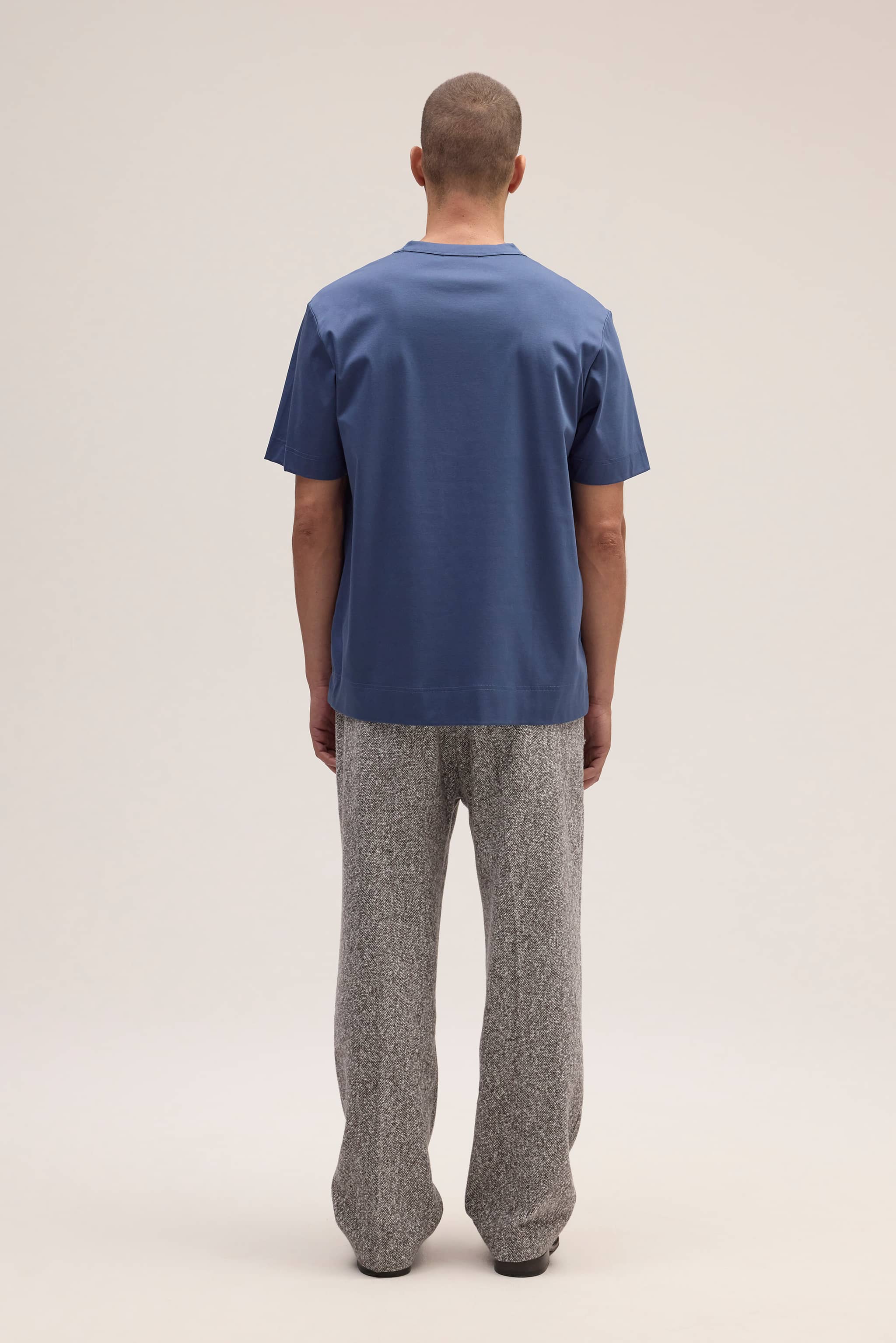 Regular fit t-shirt crafted from mercerized organic cotton jersey interlock, providing a smooth, refined handfeel. Designed with a clean neckline, binding details, and a unique chest application.