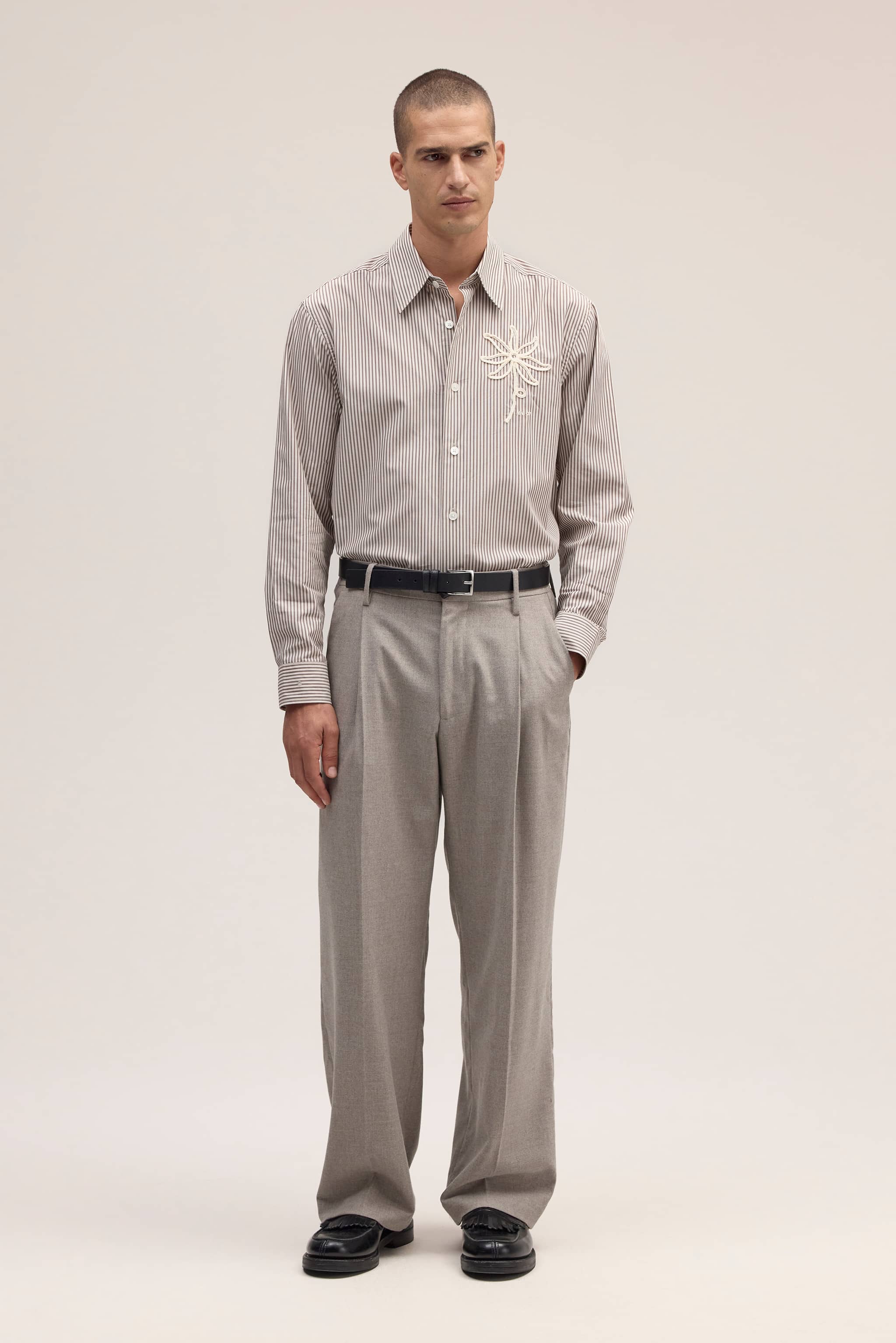 Skjorte fremstillet i holdbar Pima bomuld i en garntfarvet dobby satinvævning med en skarp og glat håndfornemmelse. Fuldendt med perlemorslignende knapper for et elegant præg.