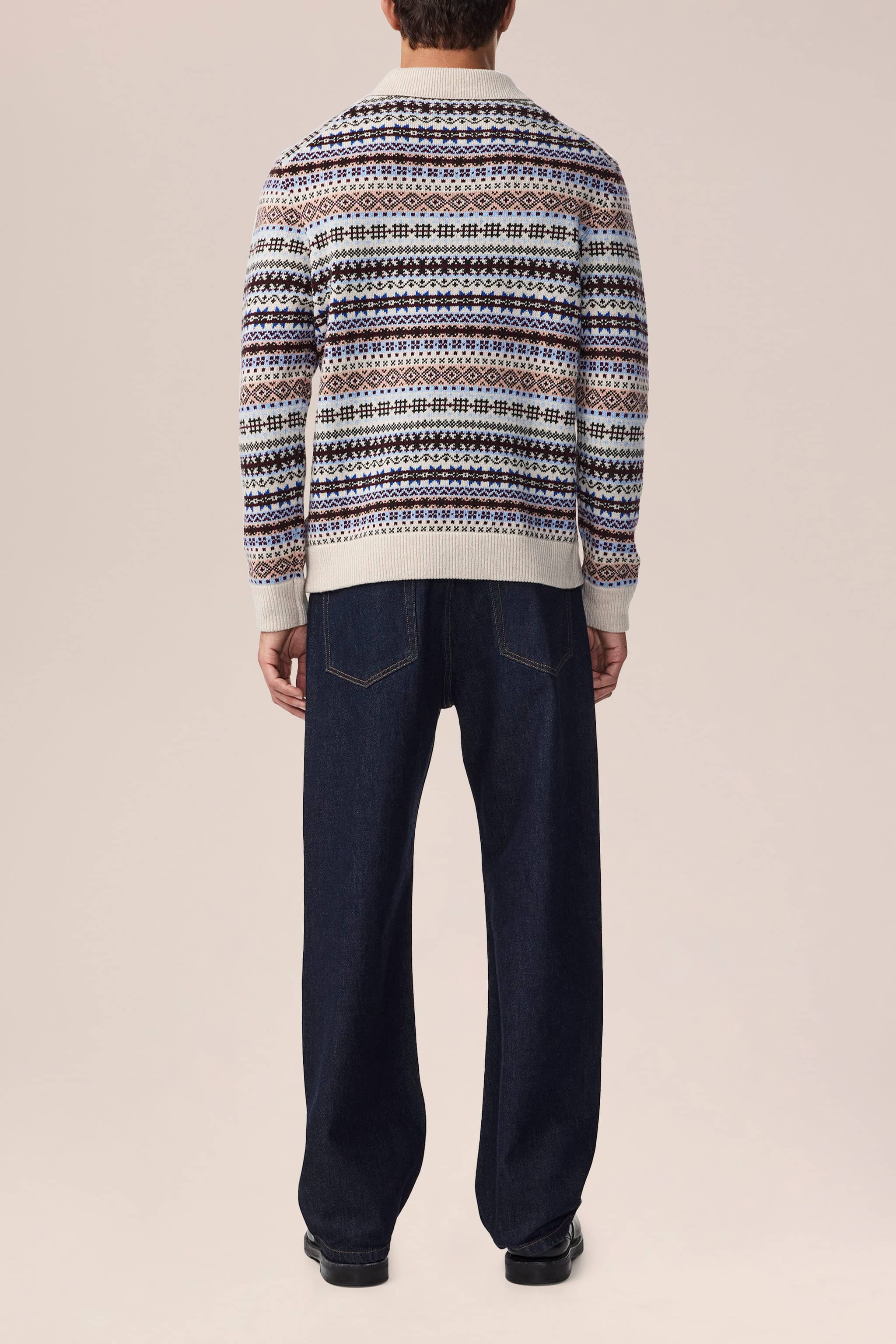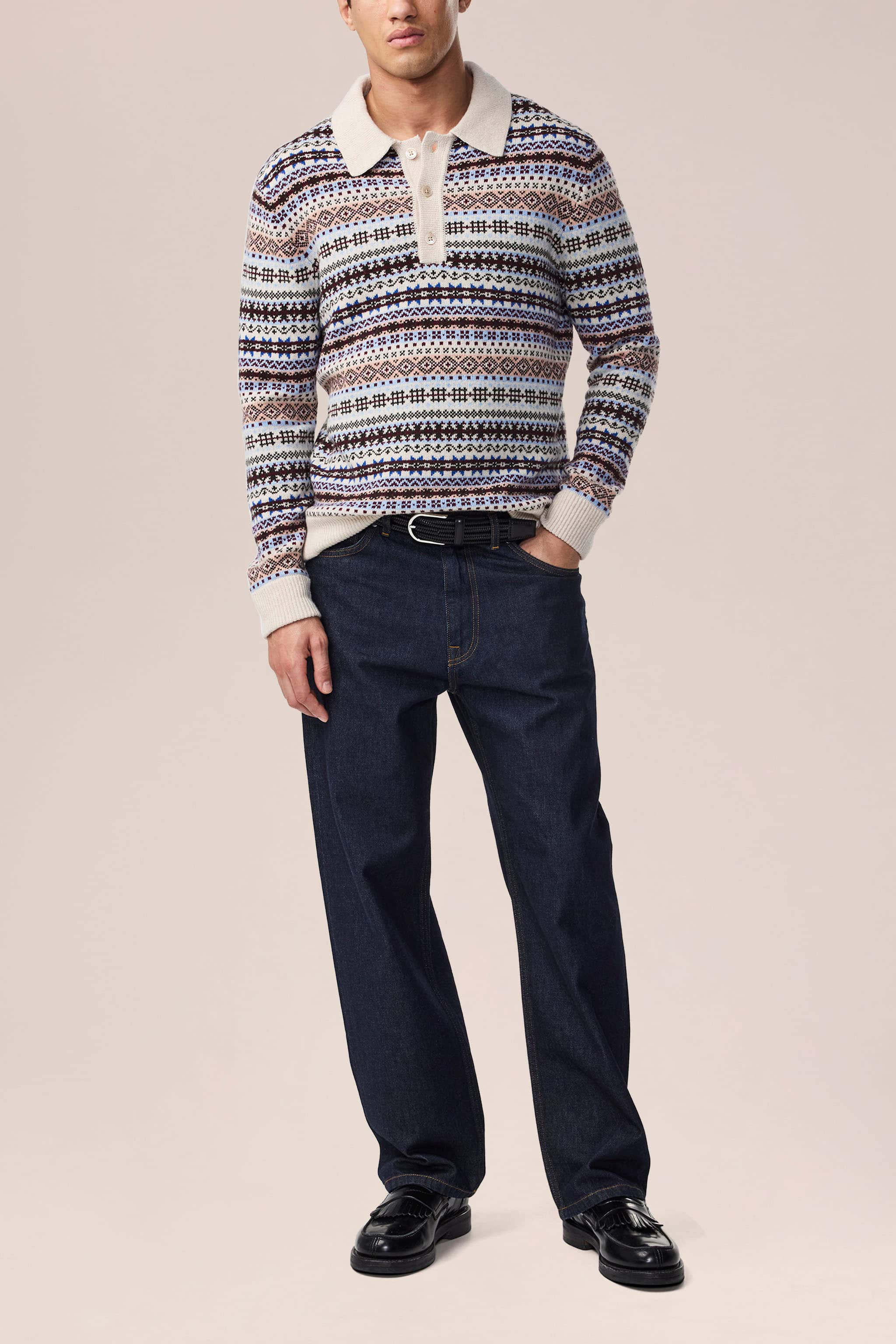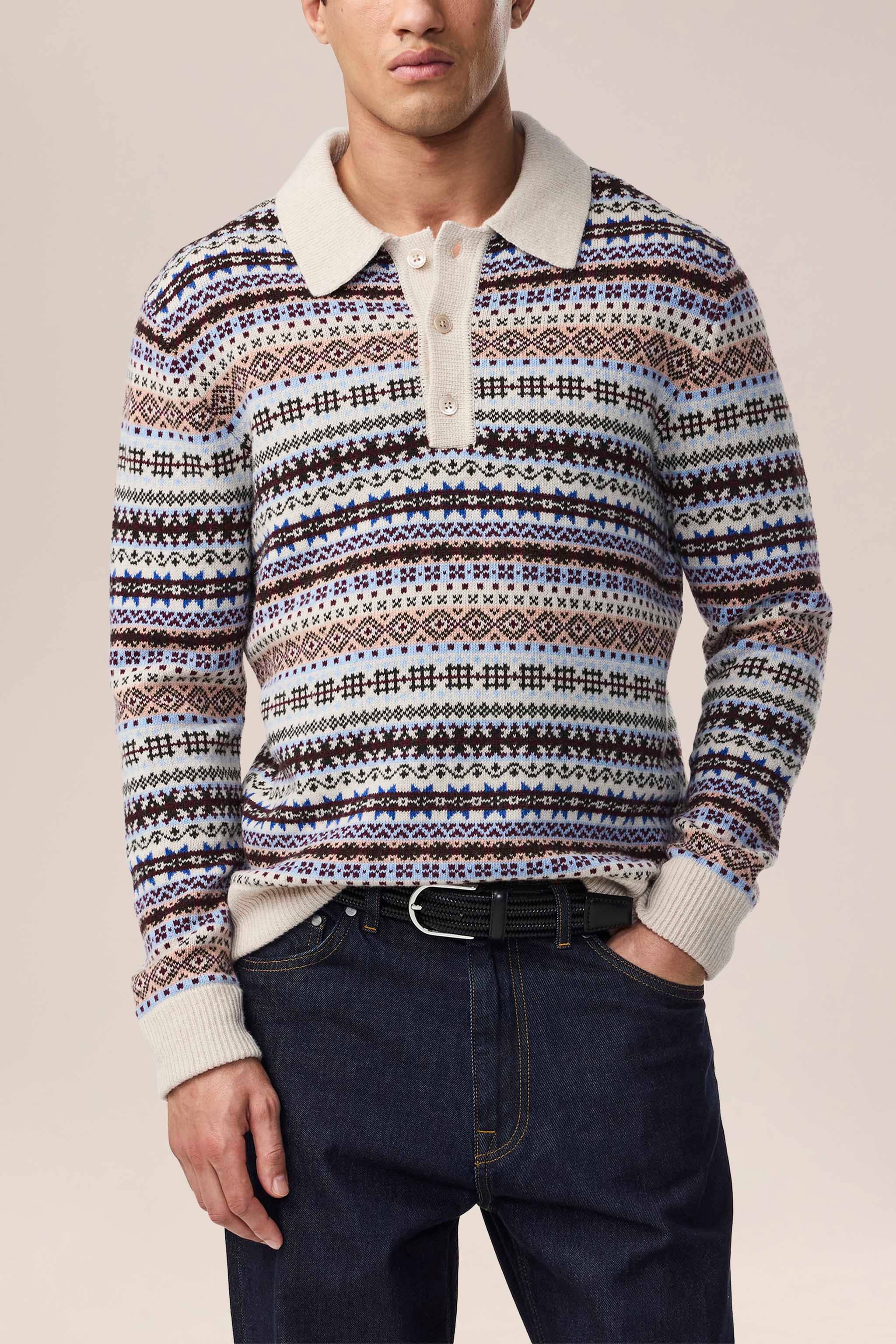 Relaxed-fit, multi-colored polo crafted from a soft wool blend. Finished with Mother-of-Pearl buttons for a refined touch.