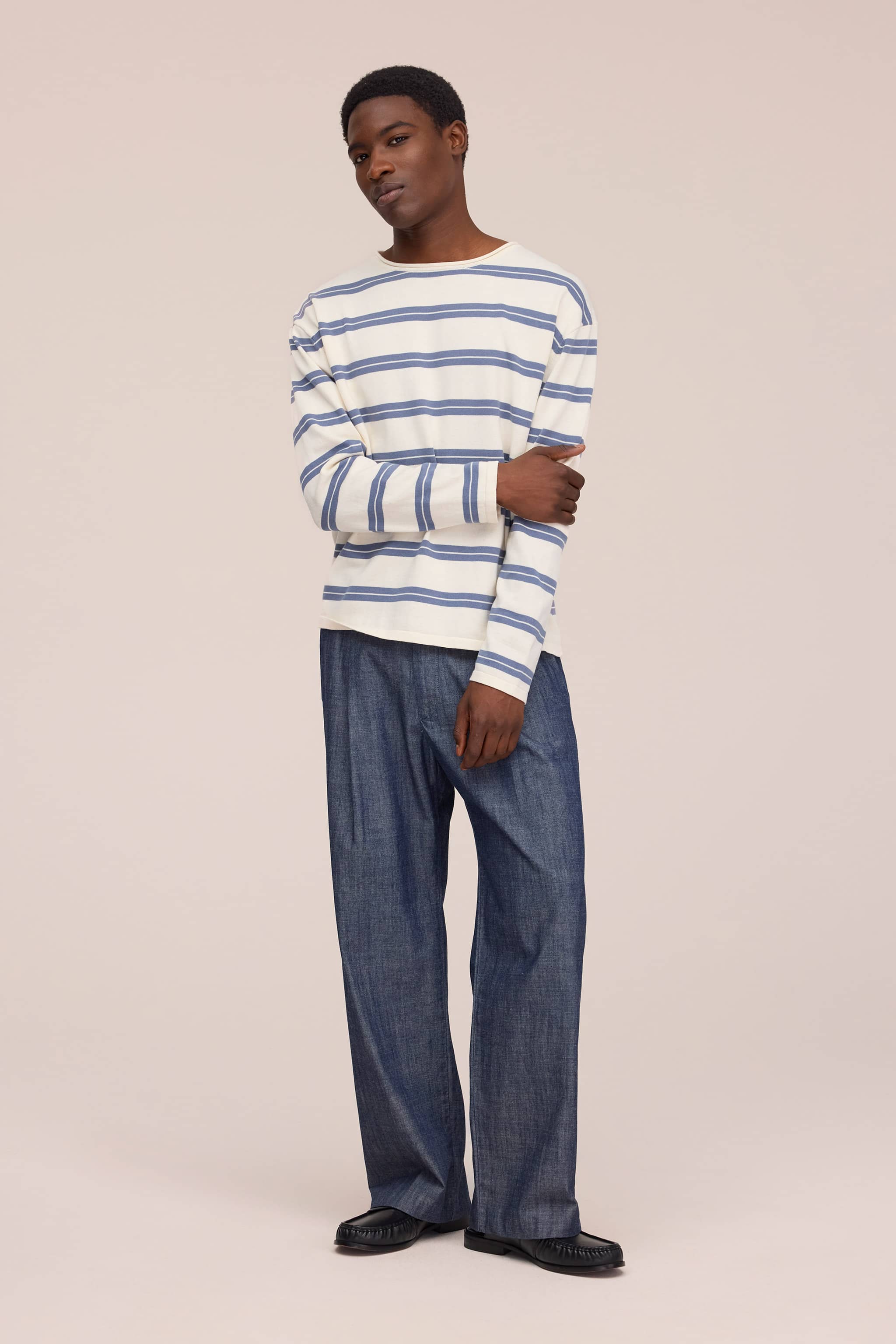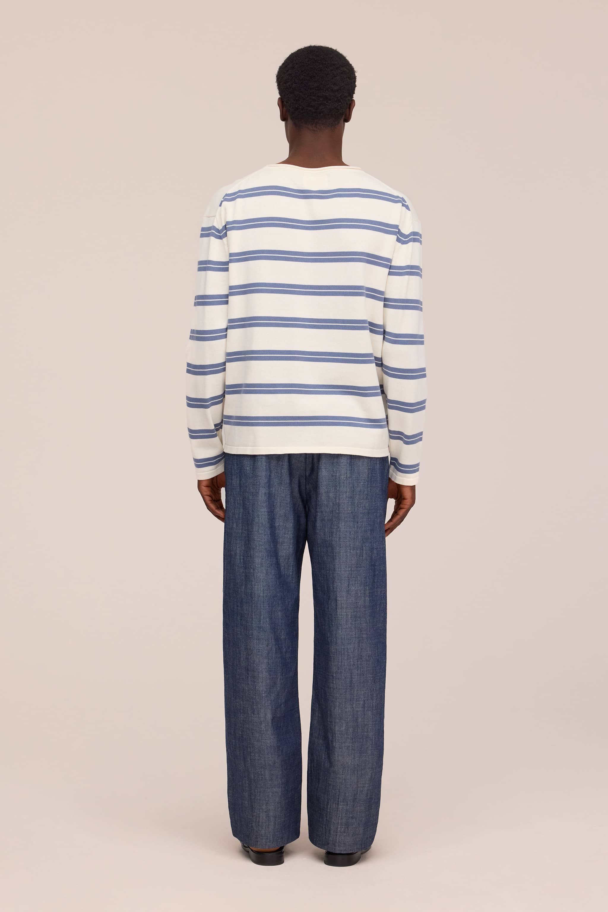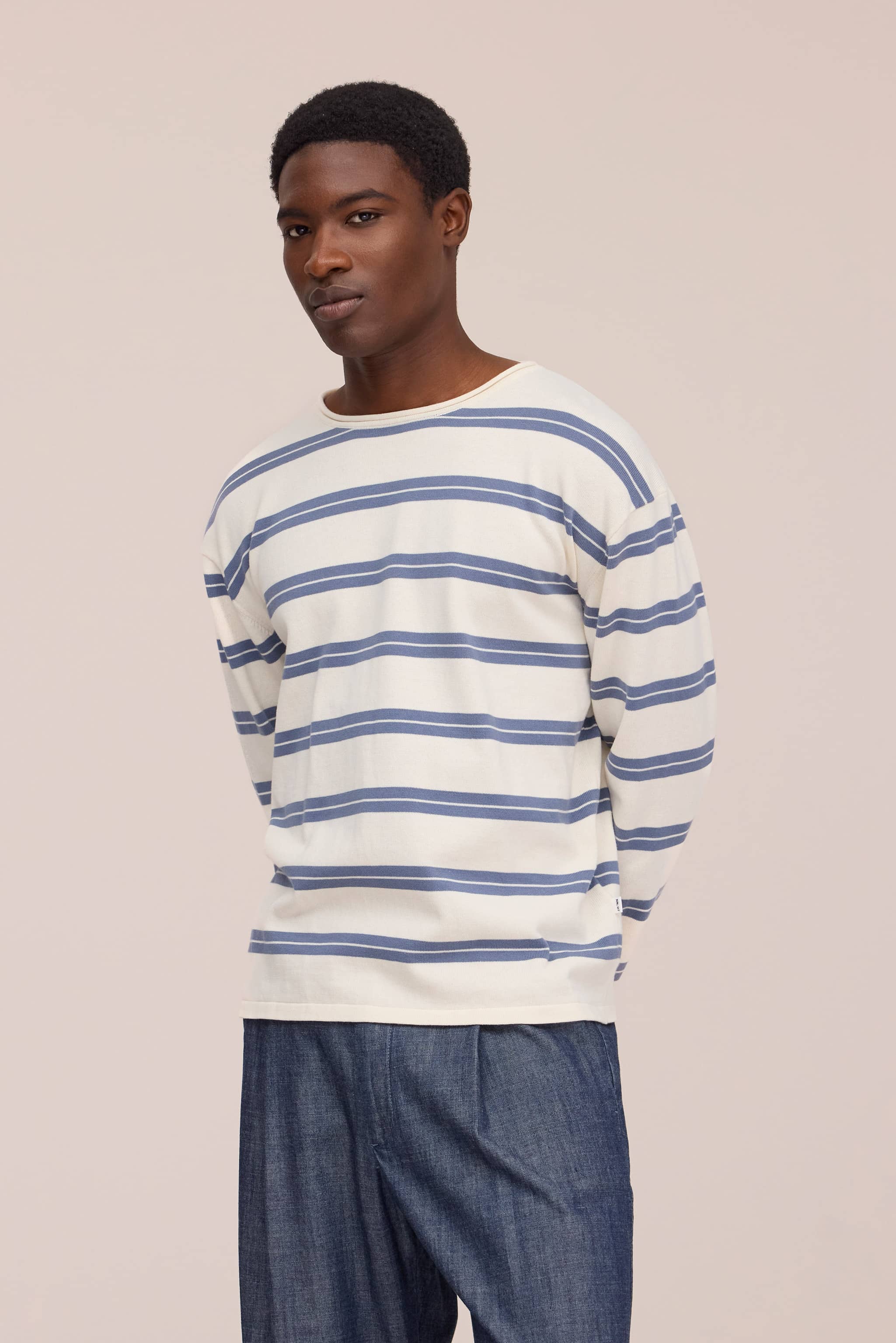 Sweater i relaxed fit med rund hals, strikket i blød økologisk bomuld med glat jerseystrik. Designet med rullet halskant og korte ribkanter for et afslappet, behageligt udtryk.