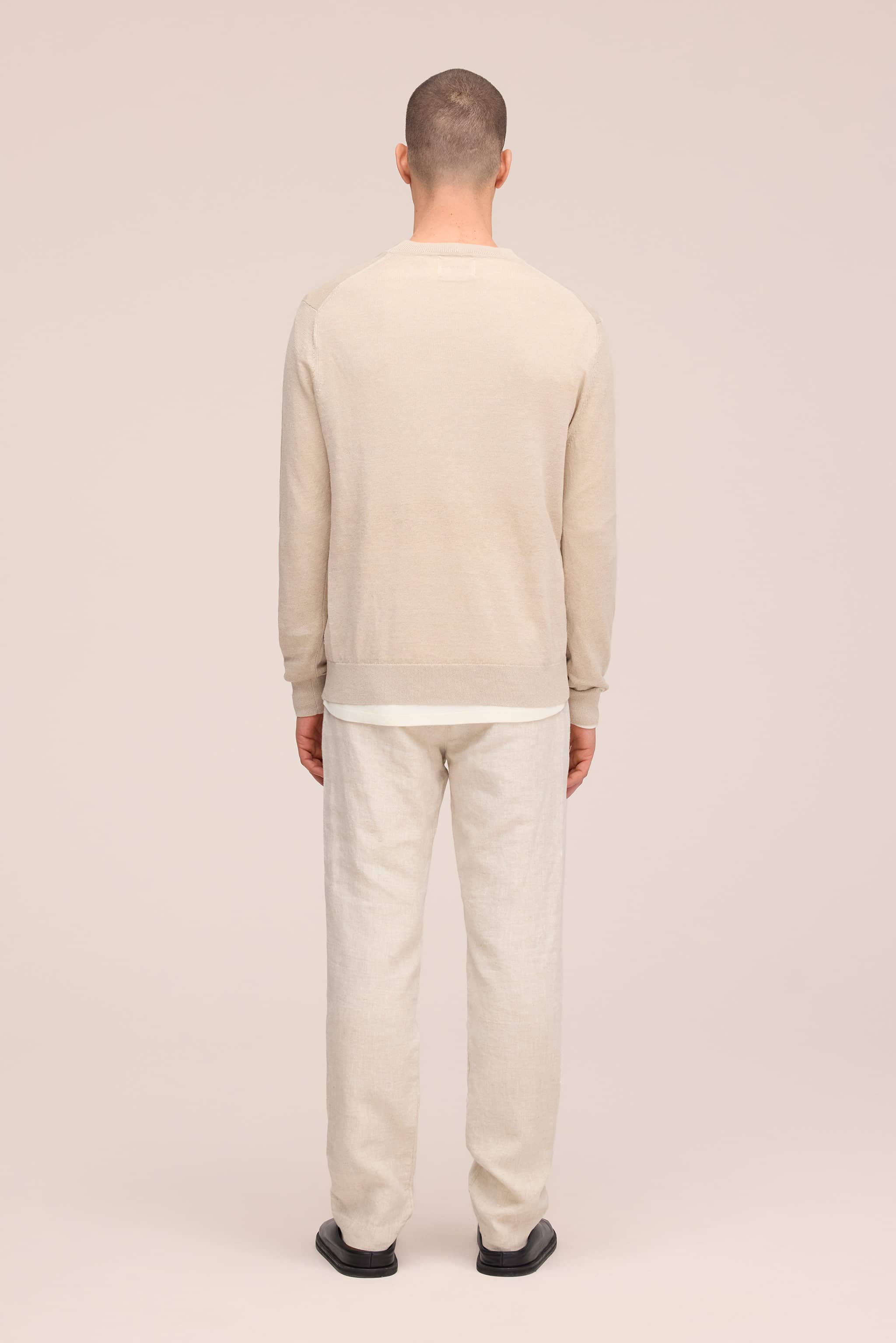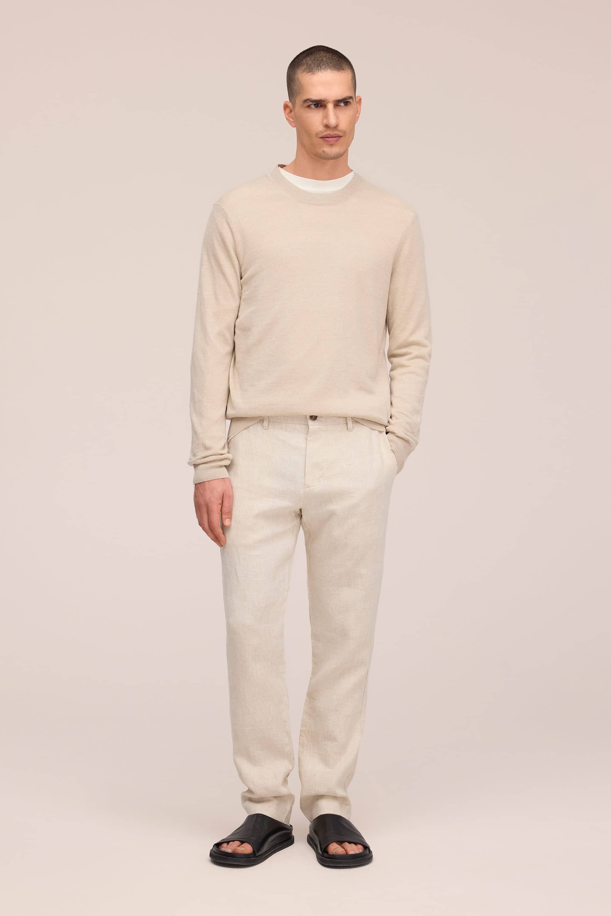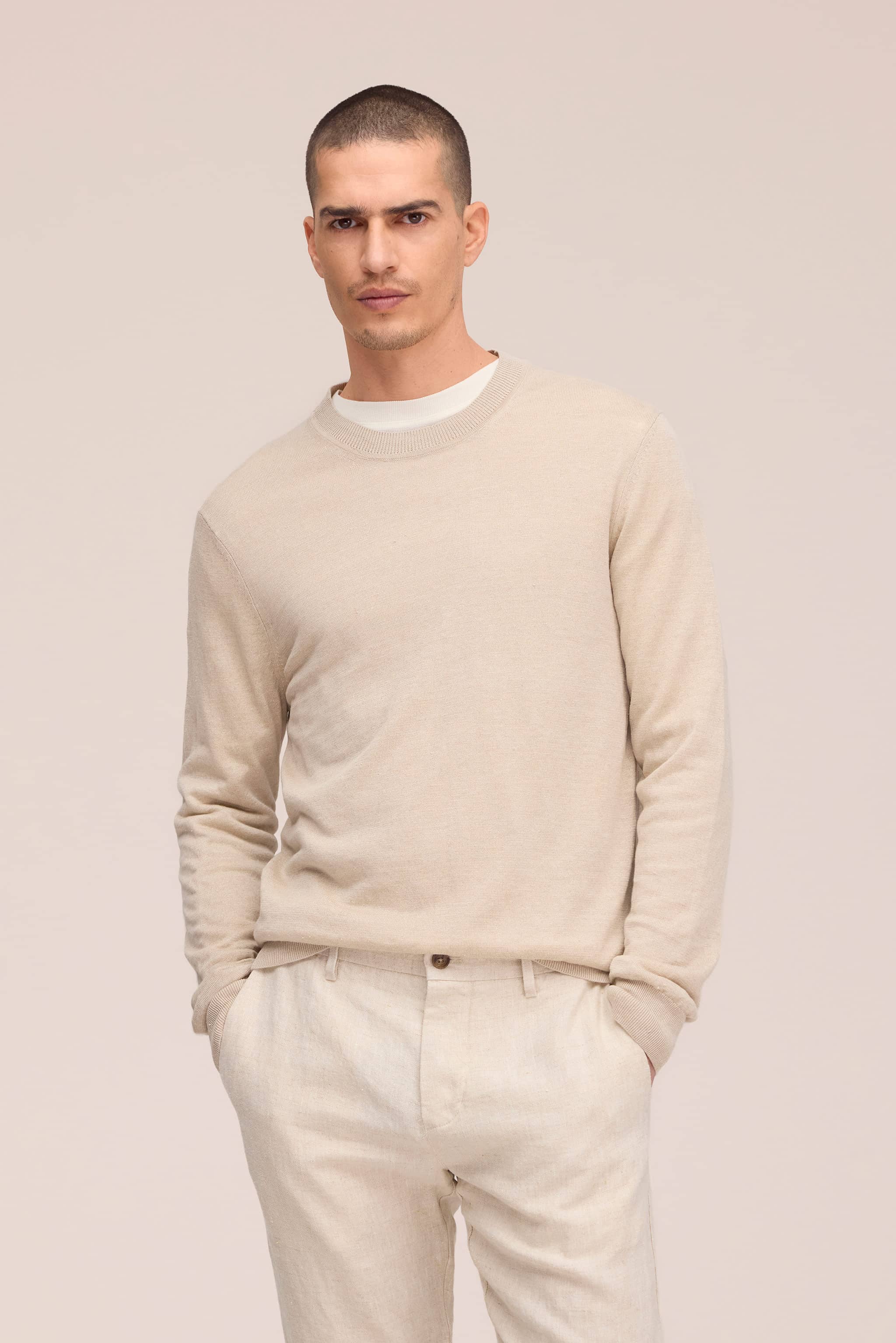 Rundhalset striksweater i regular fit, fremstillet i superfin europæisk hør med glat jersey-strik. Den bløde, fine hørkvalitet føles let og åndbar og er ideel til klassisk hverdagsbrug.