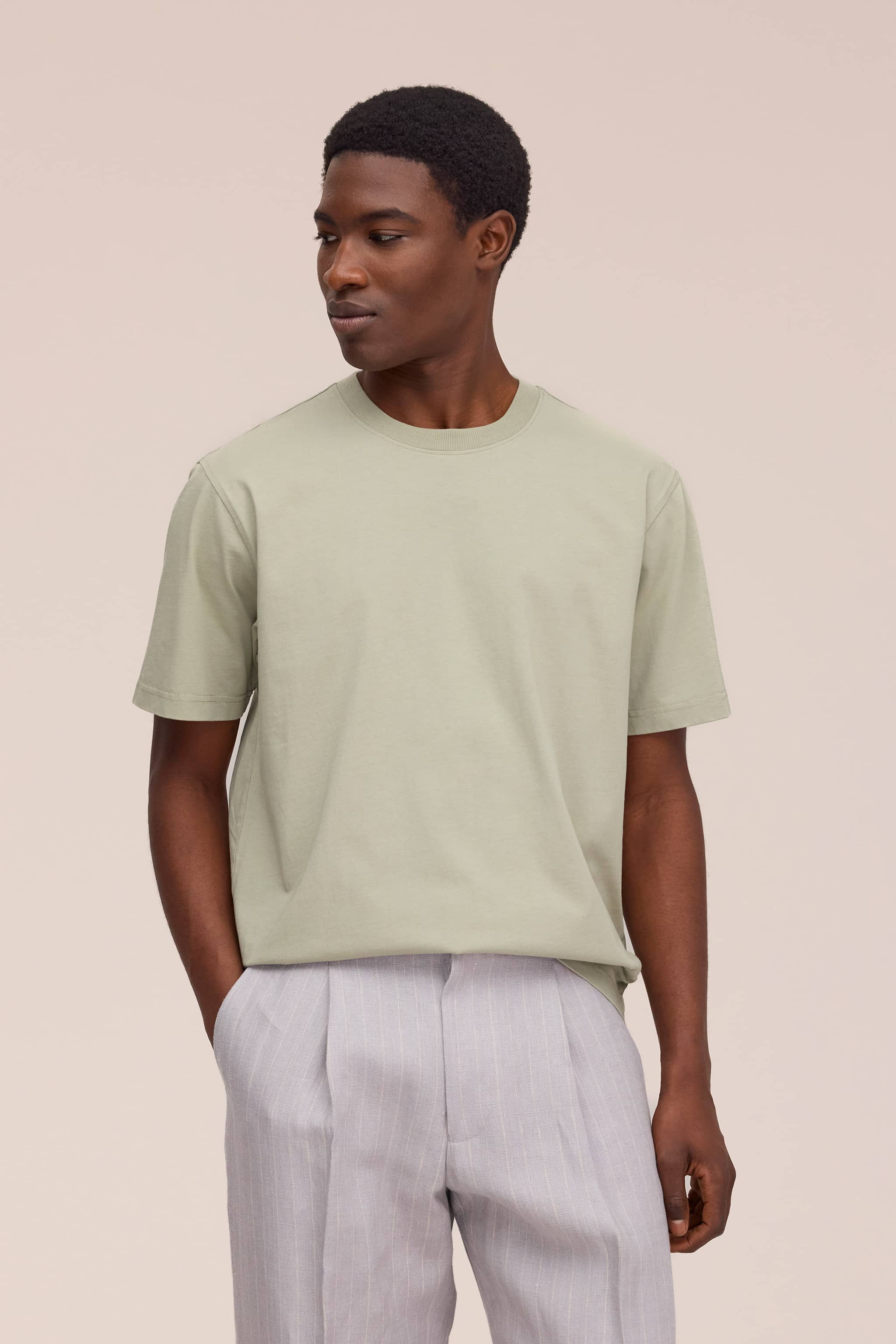 Legeres T-Shirt aus zartem Pima-Baumwolljersey. Mit Zwillingsnadel-Steppnähten und geripptem Detail am Halsausschnitt.