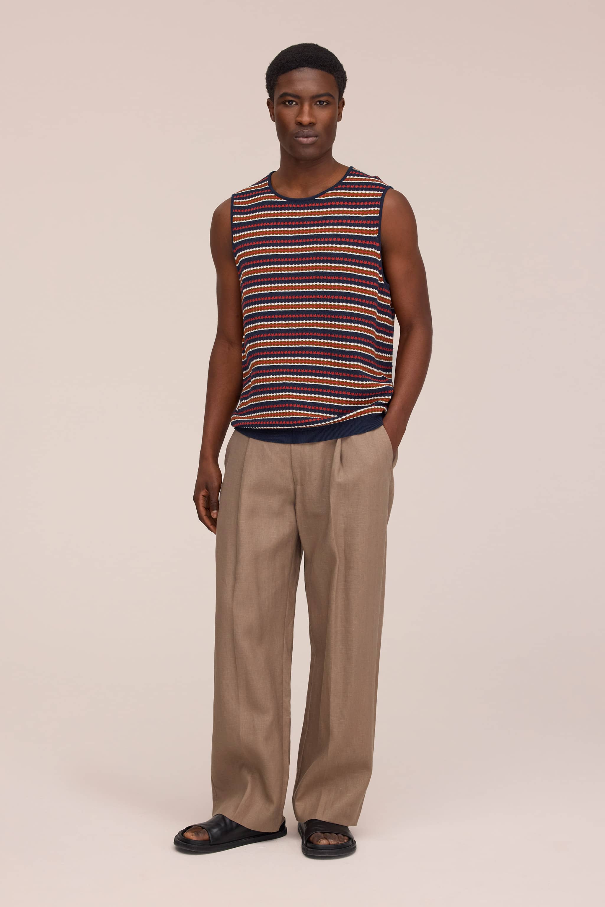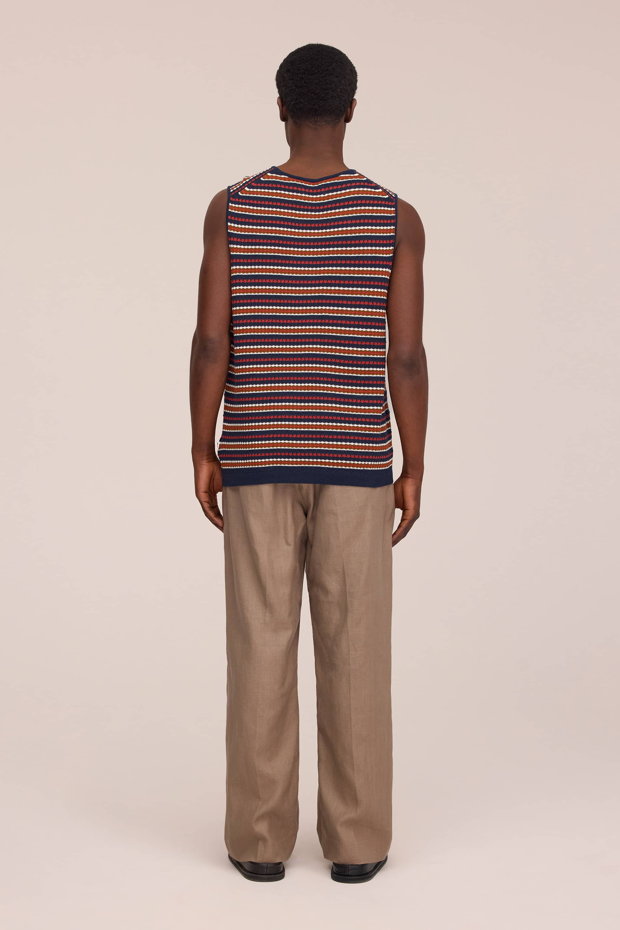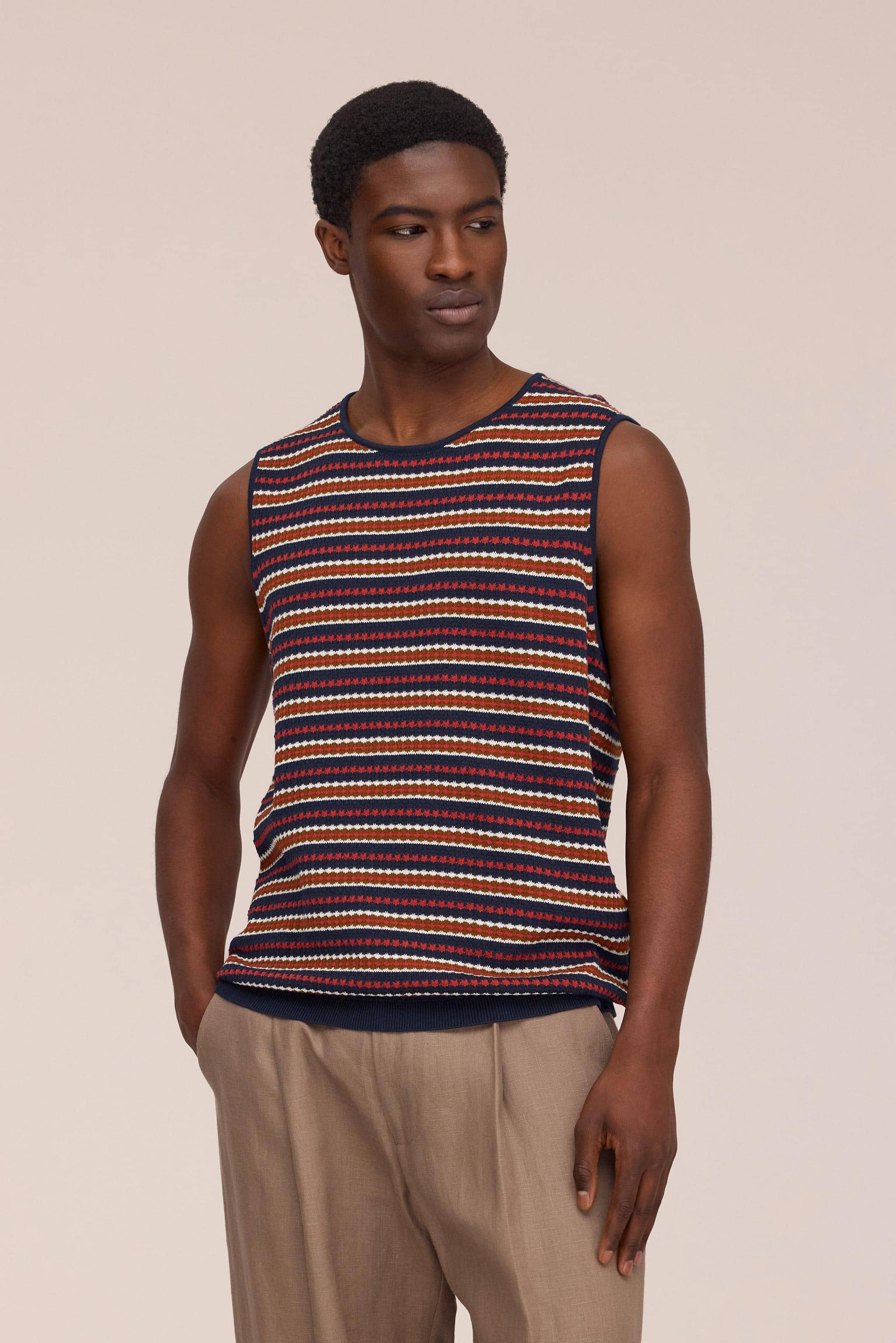 Gestricktes Tanktop aus strukturierter, weicher Bio-Baumwolle mit mehrfarbigem Streifen-Motiv.
