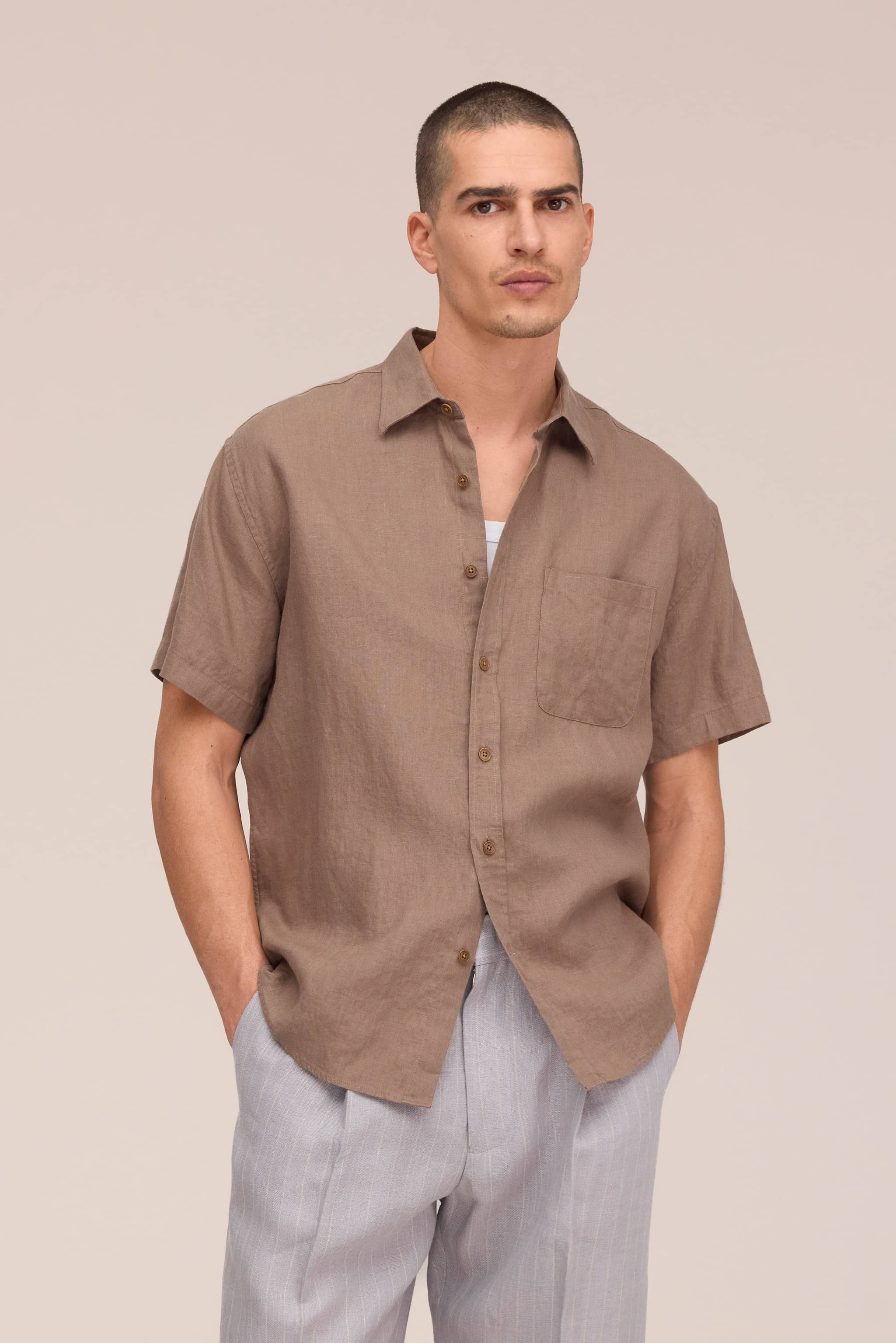 Kurzarmhemd aus hochwertigem europäischem Leinen mit weicher, fließender Haptik. Abgerundet durch Kragenstäbchen und farblich abgestimmte NN.07-Knöpfe für einen lässigen Look im Alltag.
