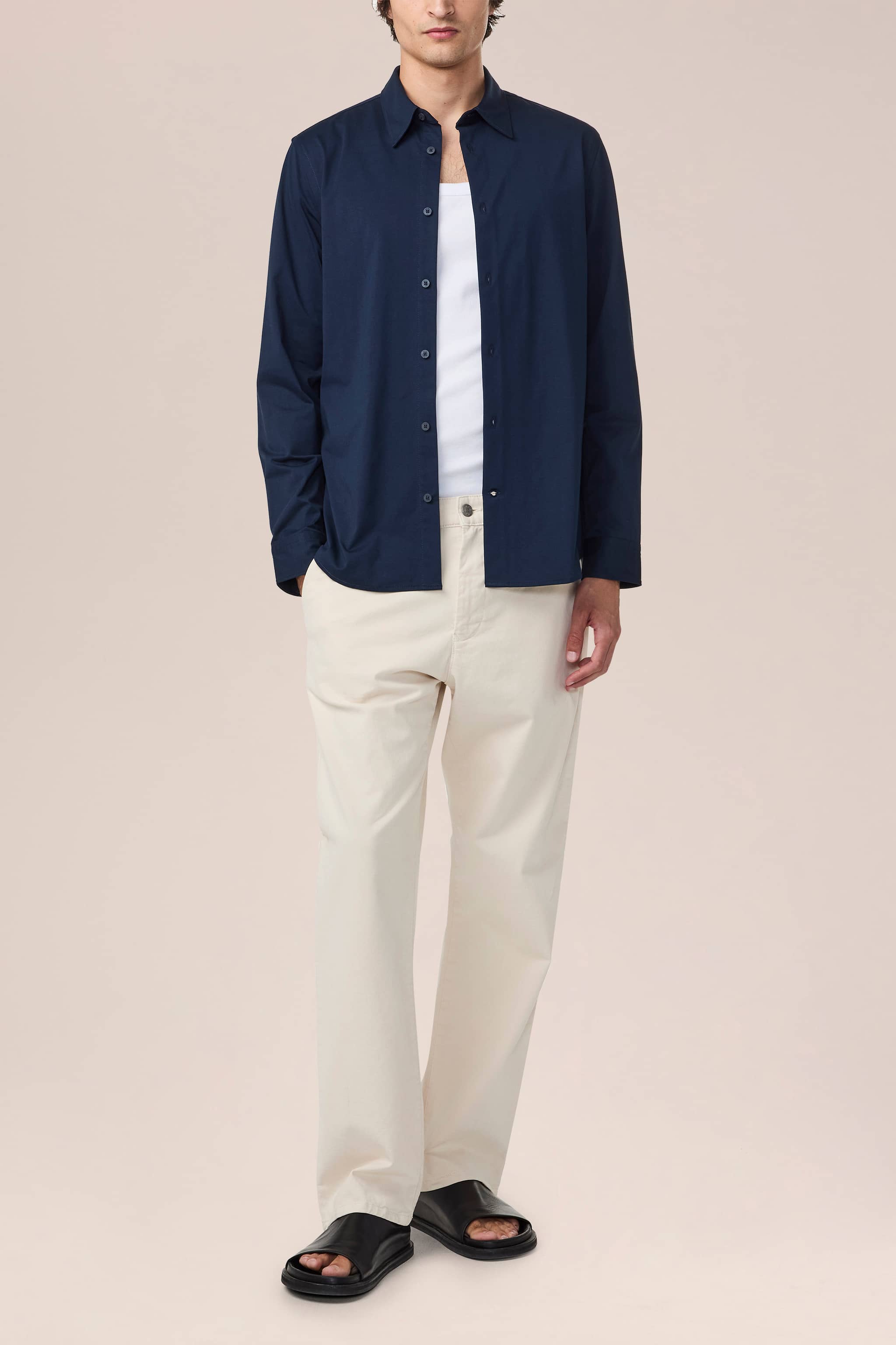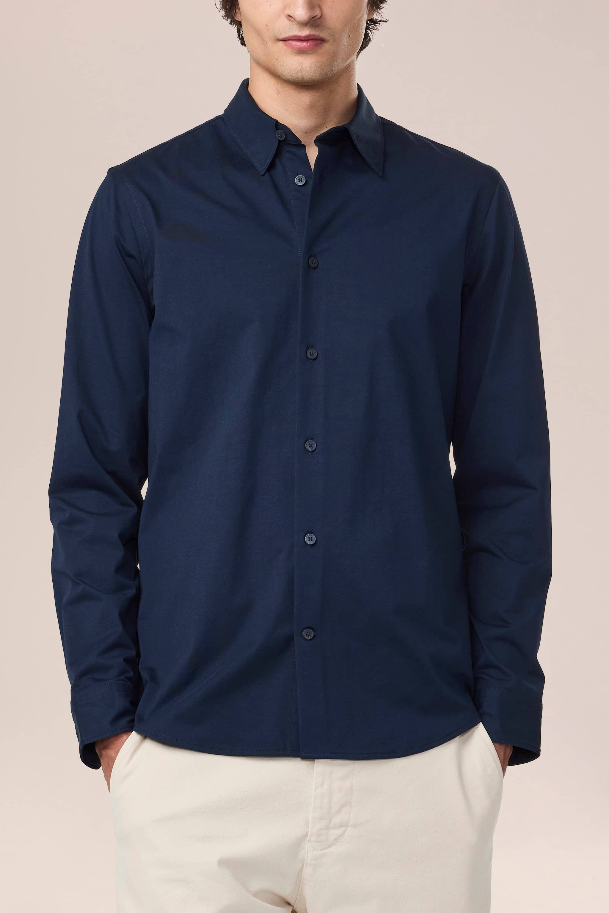 Minimalistisches Hemd aus Single Jersey aus Bio-Baumwollmix. Das Modell ist in Slim Fit geschnitten. Abgerundet durch Knöpfe aus Perlmutt.