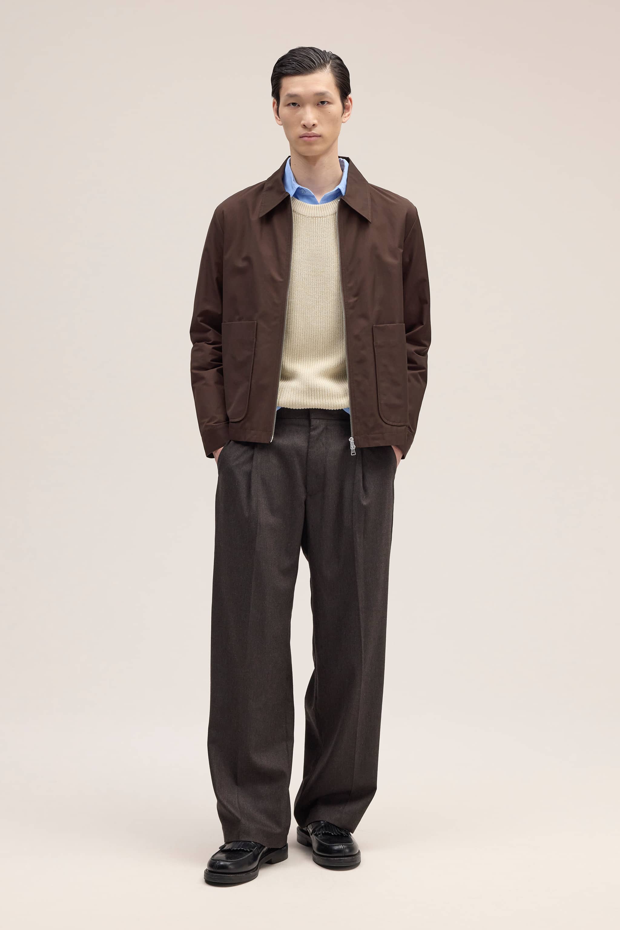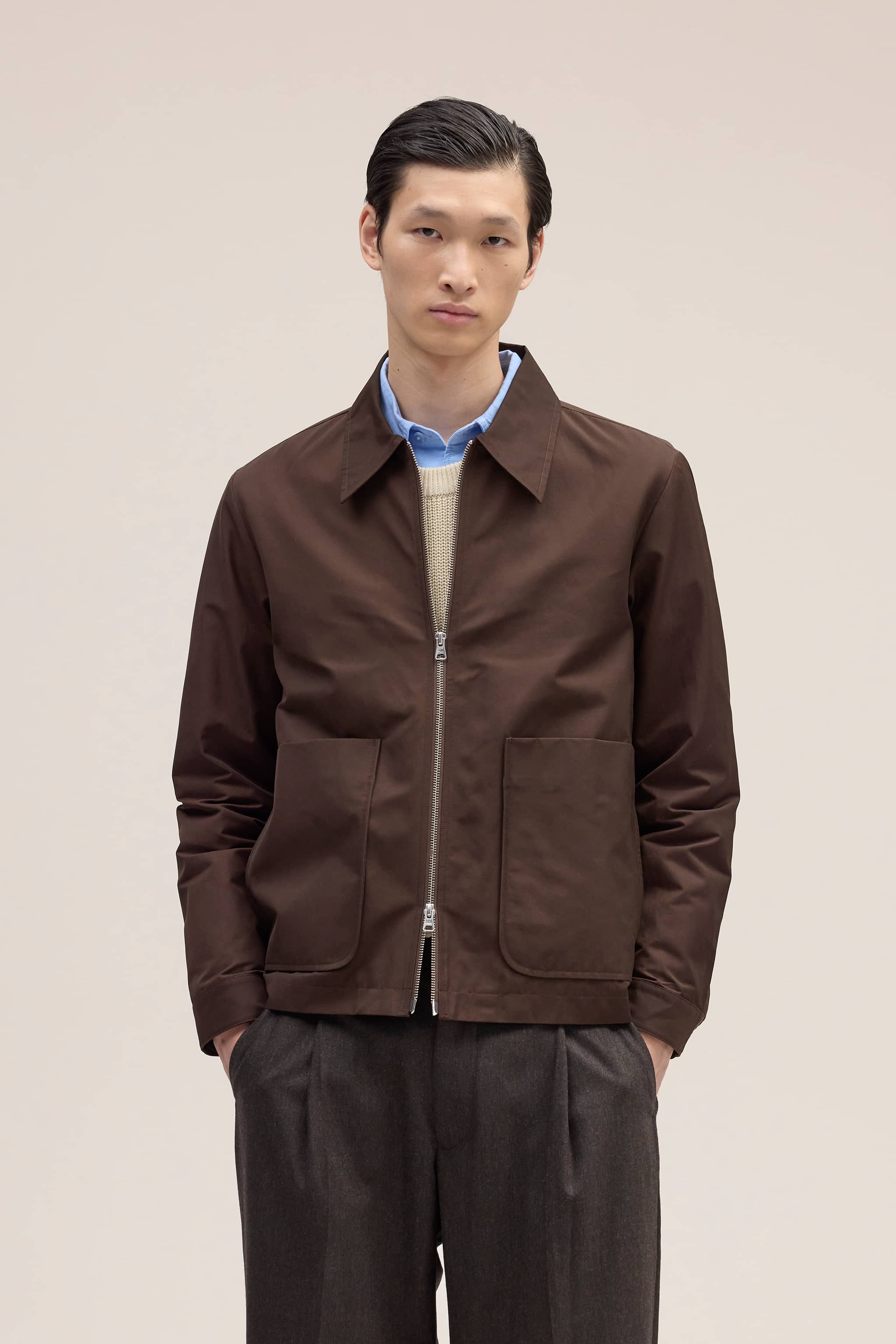 Übergangsjacke aus einem robusten, wasserdichten Gemisch aus Bio-Baumwolle und Recycling-Polyester, ausgestattet mit einem praktischen Zwei-Wege-Reißverschluss und zwei großen Taschen. Gael vereint das traditionell sportliche Design von Stadionjacken mit einem modernen, funktionalen Ansatz.