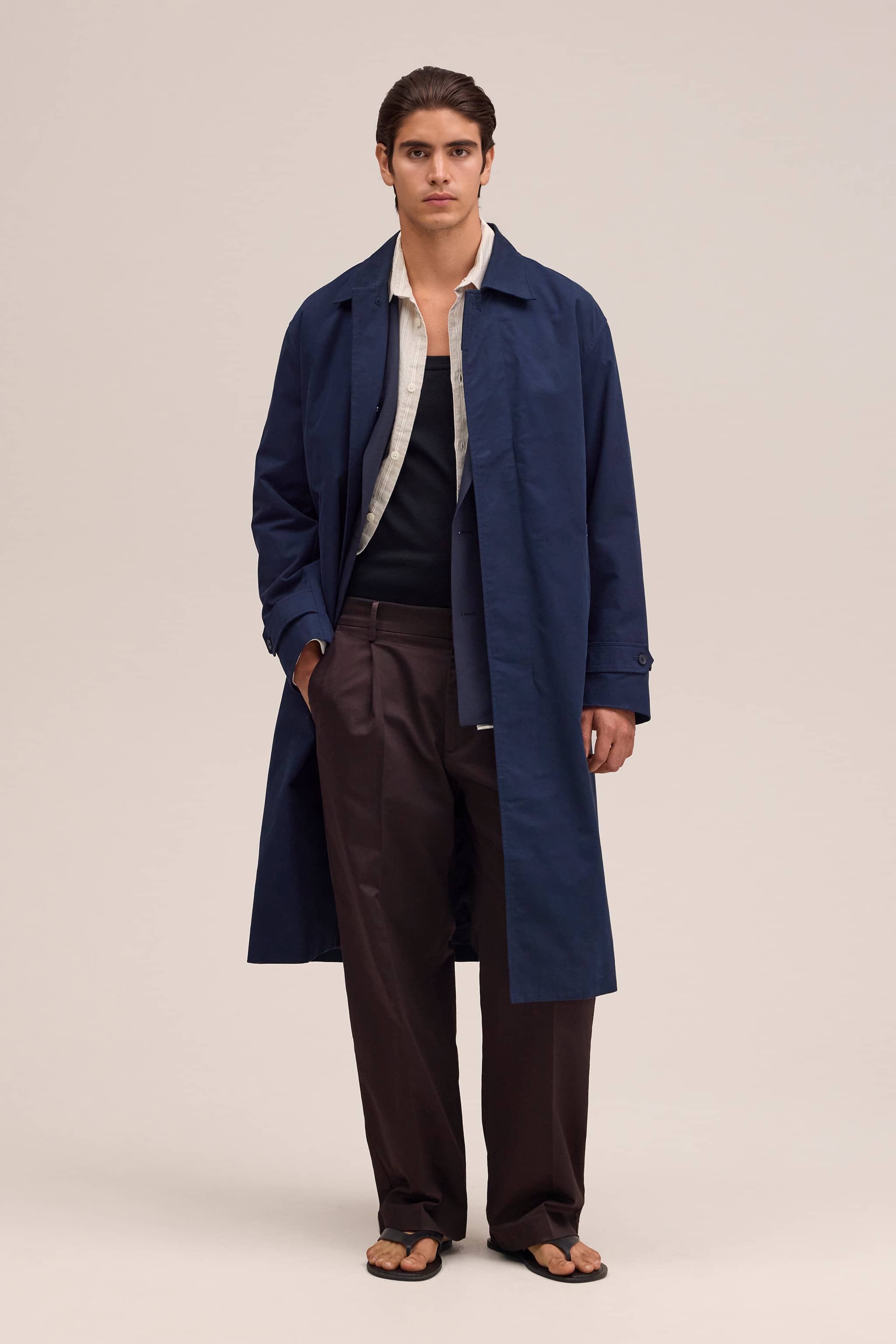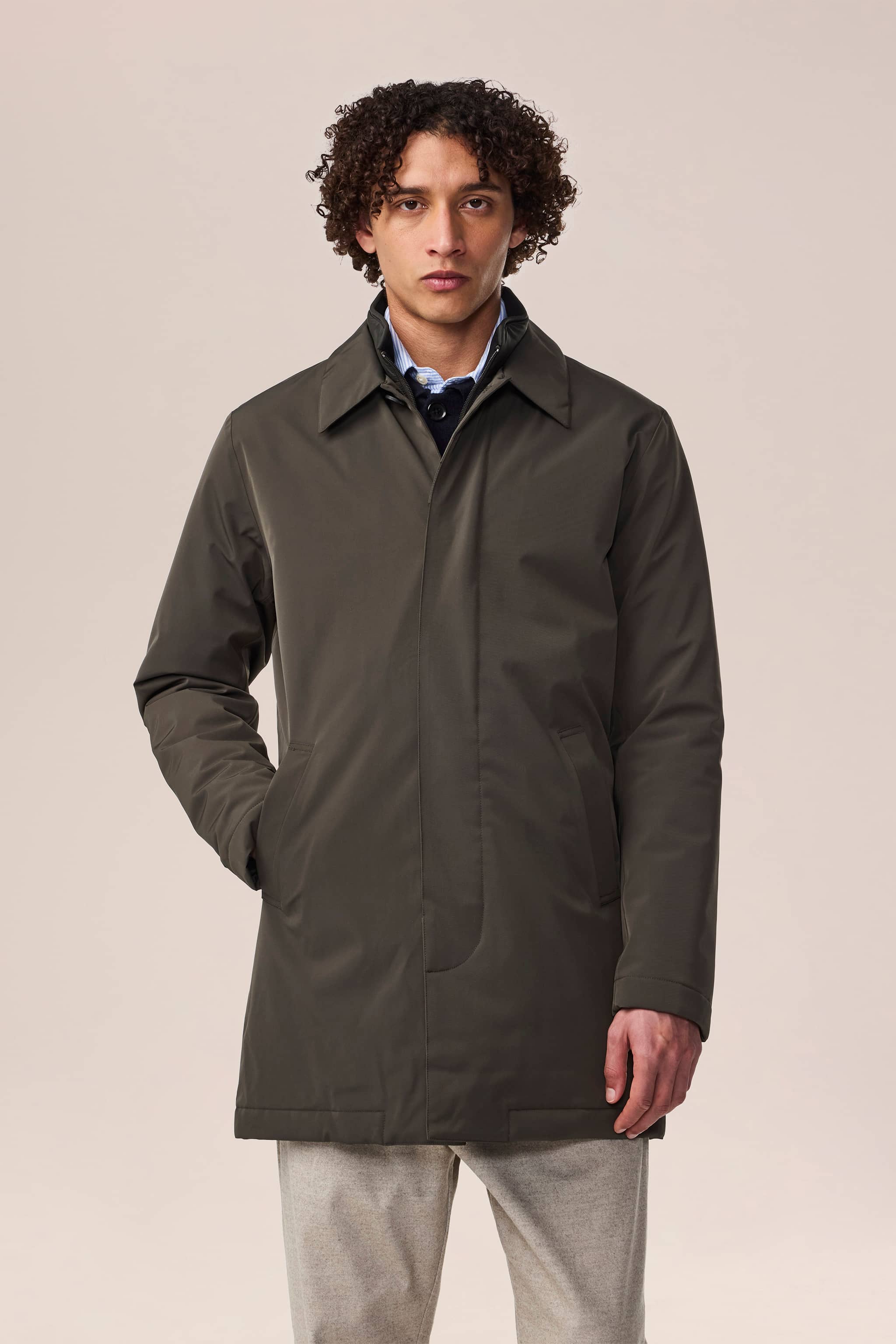 Klassischer, langer Mantel aus Bio-Baumwolle.