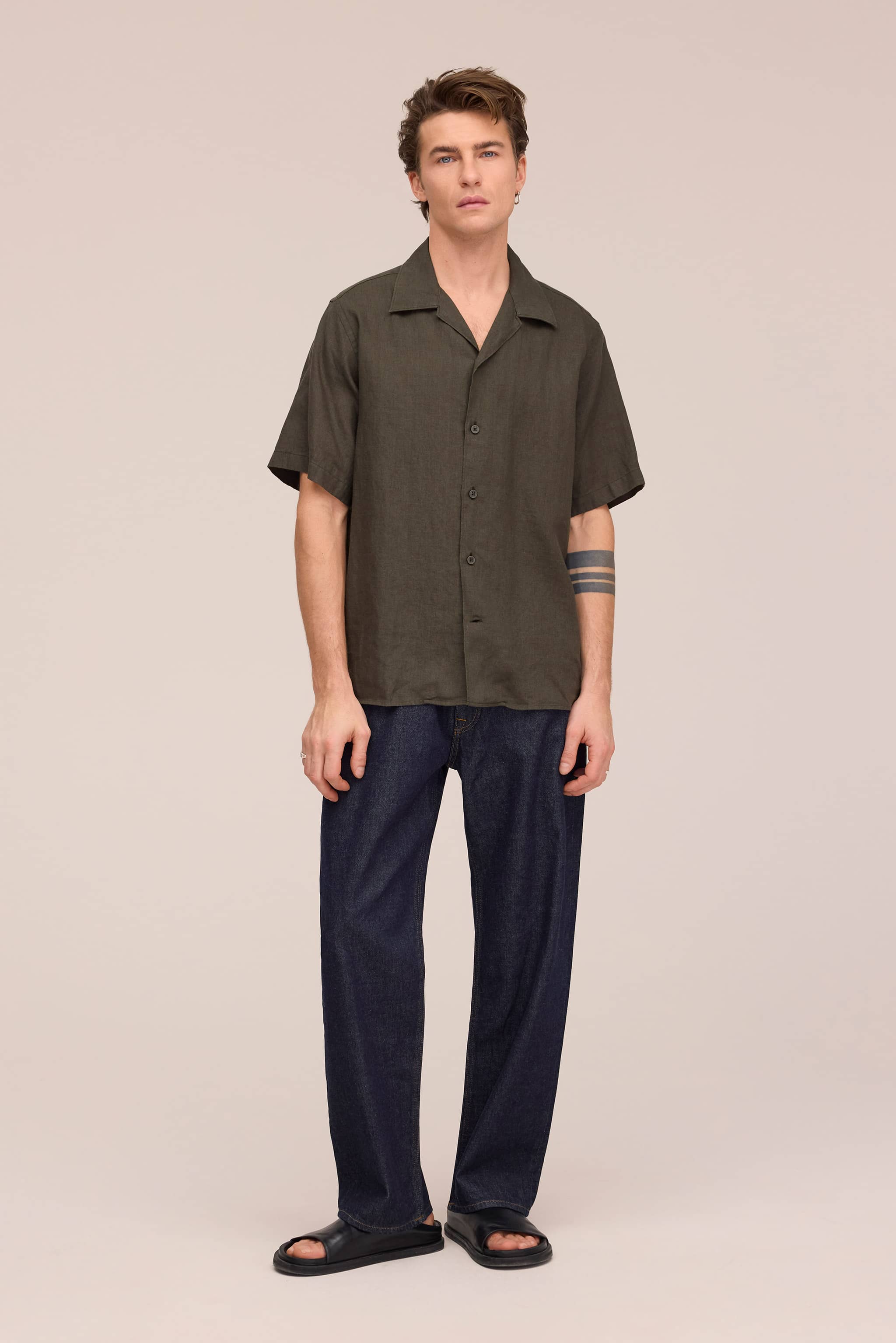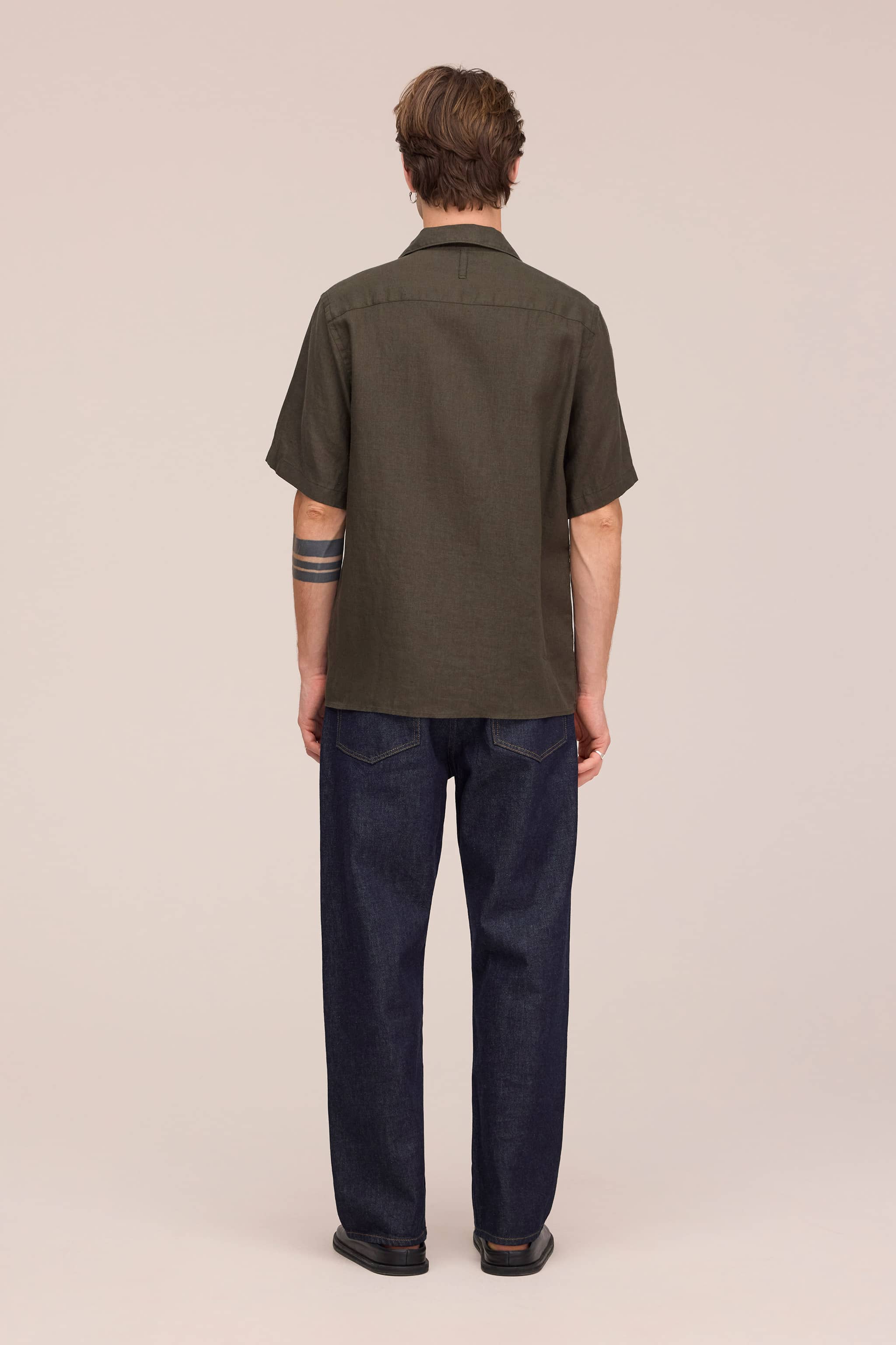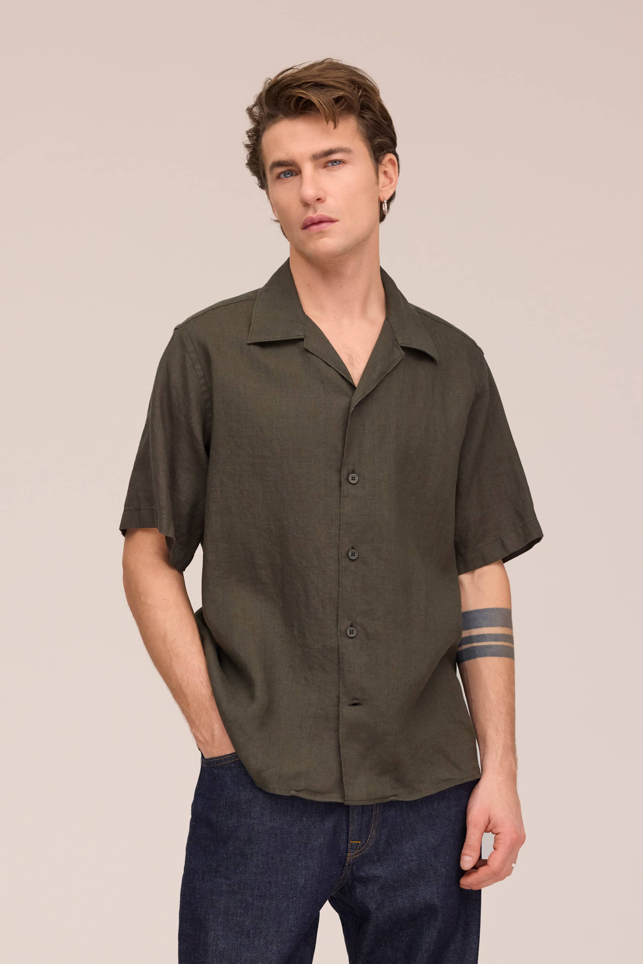 Julio - Offener Kragen Leinen hemd