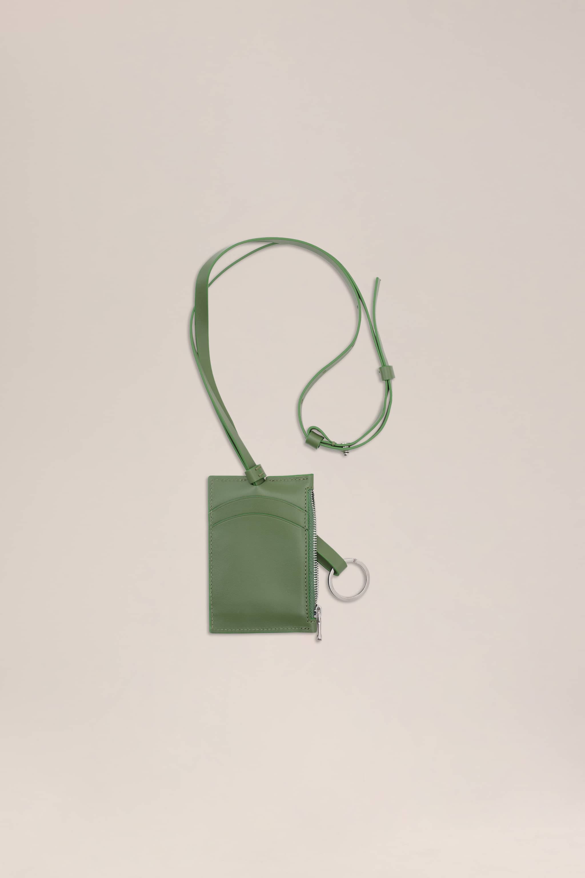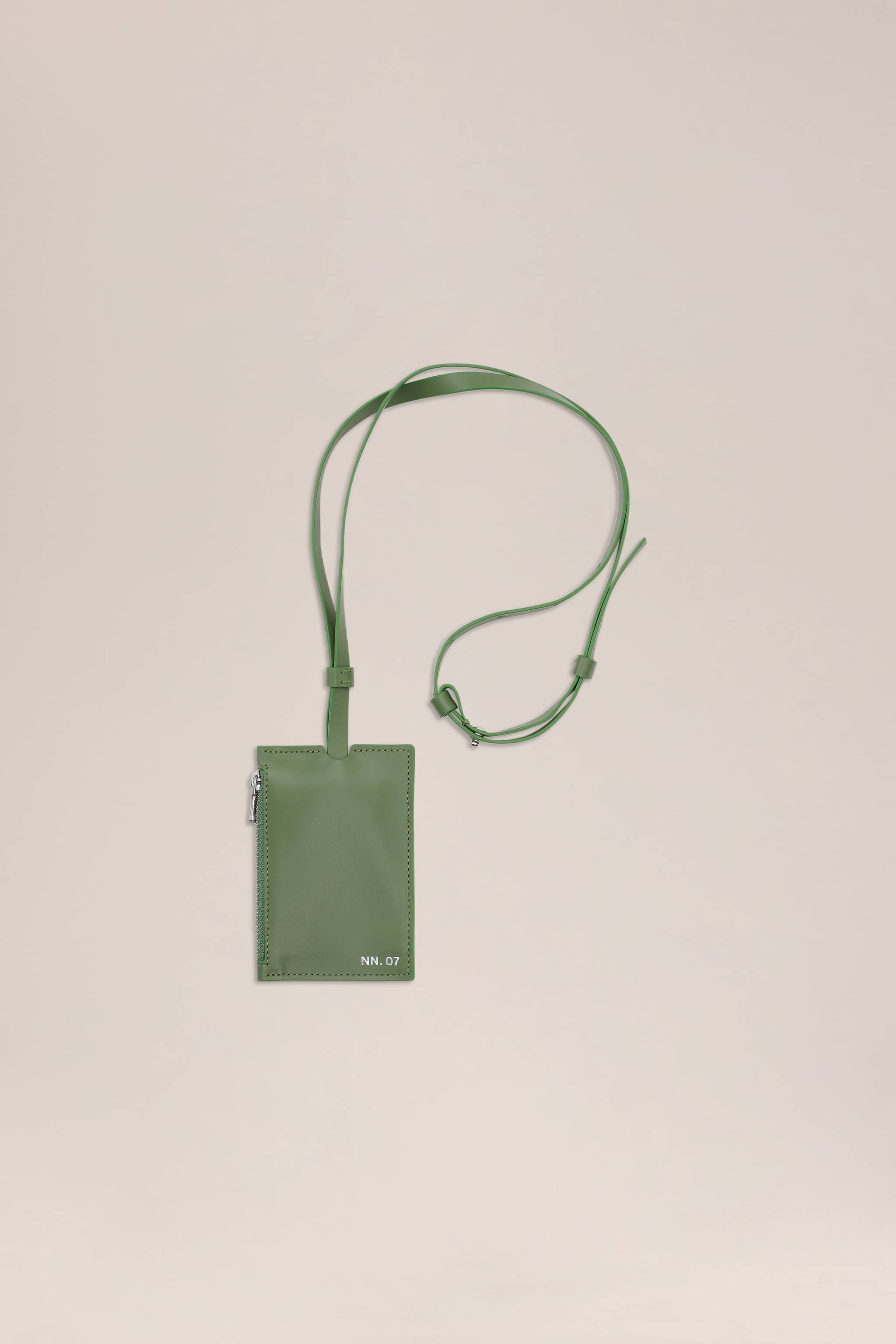 Kompaktes Schlüssel-Etui aus pigmentiertem, zertifiziertem Rindsleder mit weicher, glatter Haptik. Verstellbares Leder-Umhängeband und seitlicher Reißverschluss sorgen für schnellen Zugriff. Innen verbirgt sich ein Schlüsselfach mit befestigtem Ring; auf der Rückseite zwei vertikale Kartenfächer, vorn akzentuiert mit NN.07-Logo.