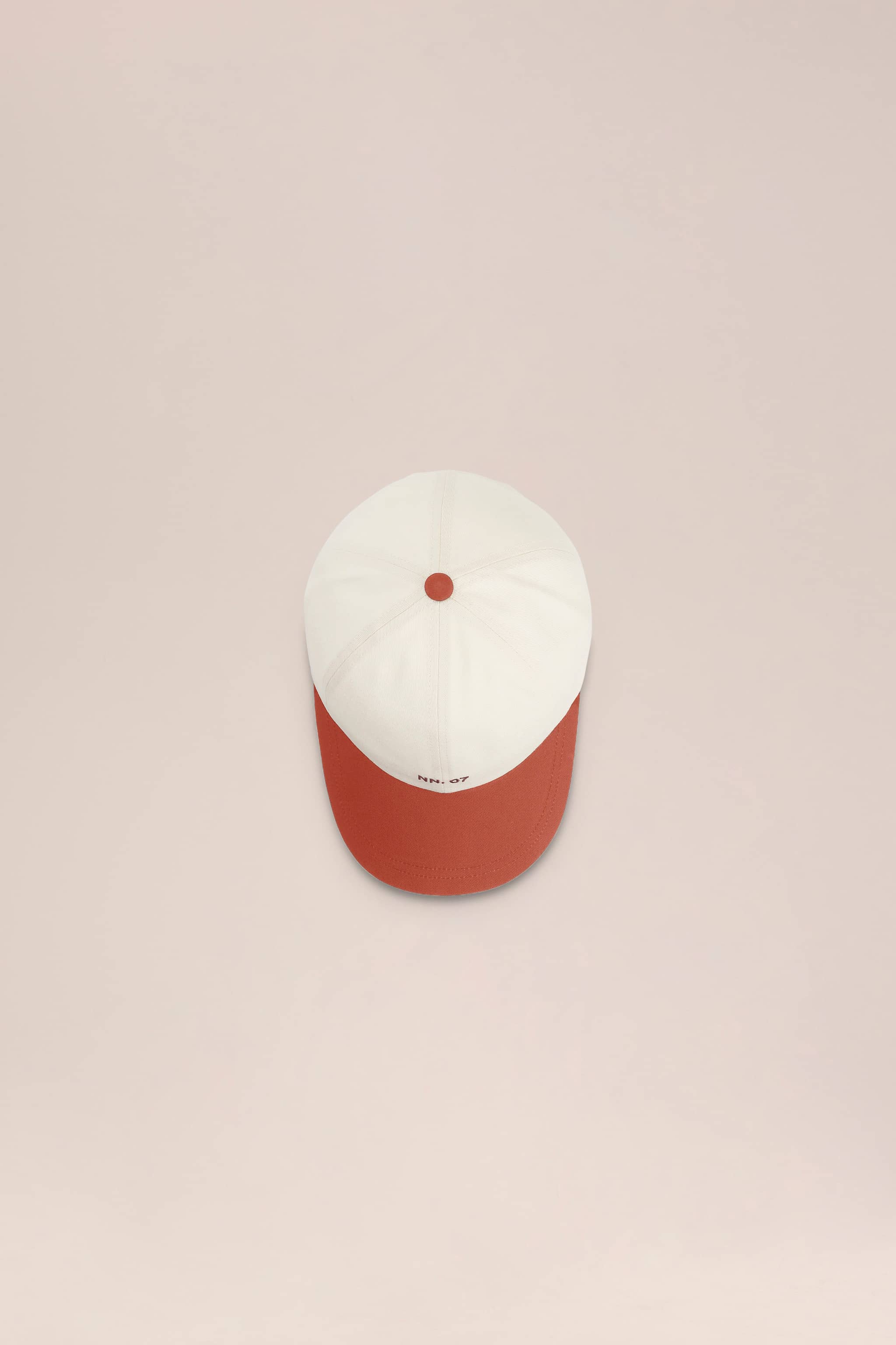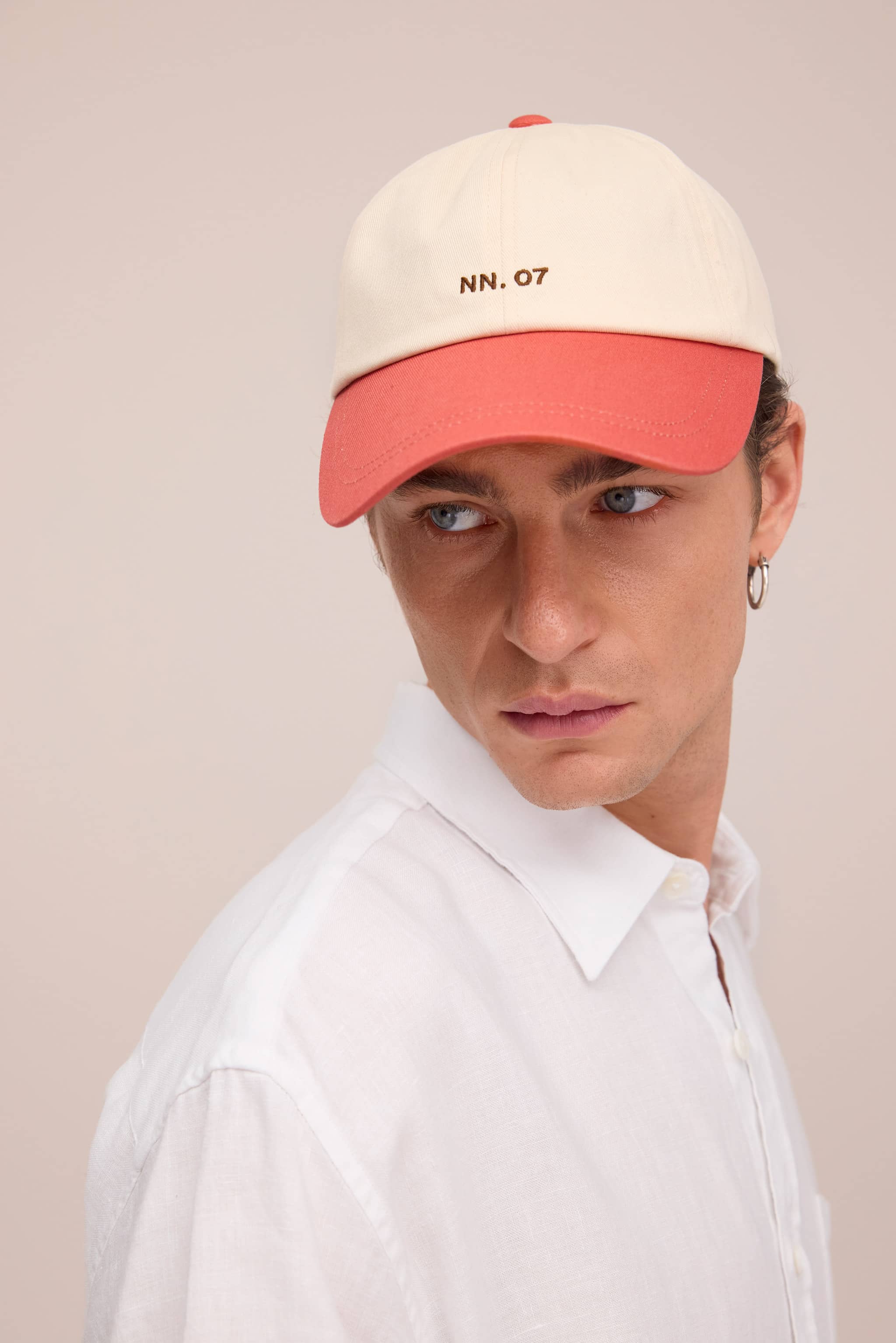 Cap aus leichtem Baumwoll-Canvas mit strukturiertem Denim-Schirm für einen subtilen optischen Akzent. Vorn mit NN.07 Logo, hinten mit verstellbarem Metallverschluss für eine individuell anpassbare Passform. Trockene, griffige Haptik.