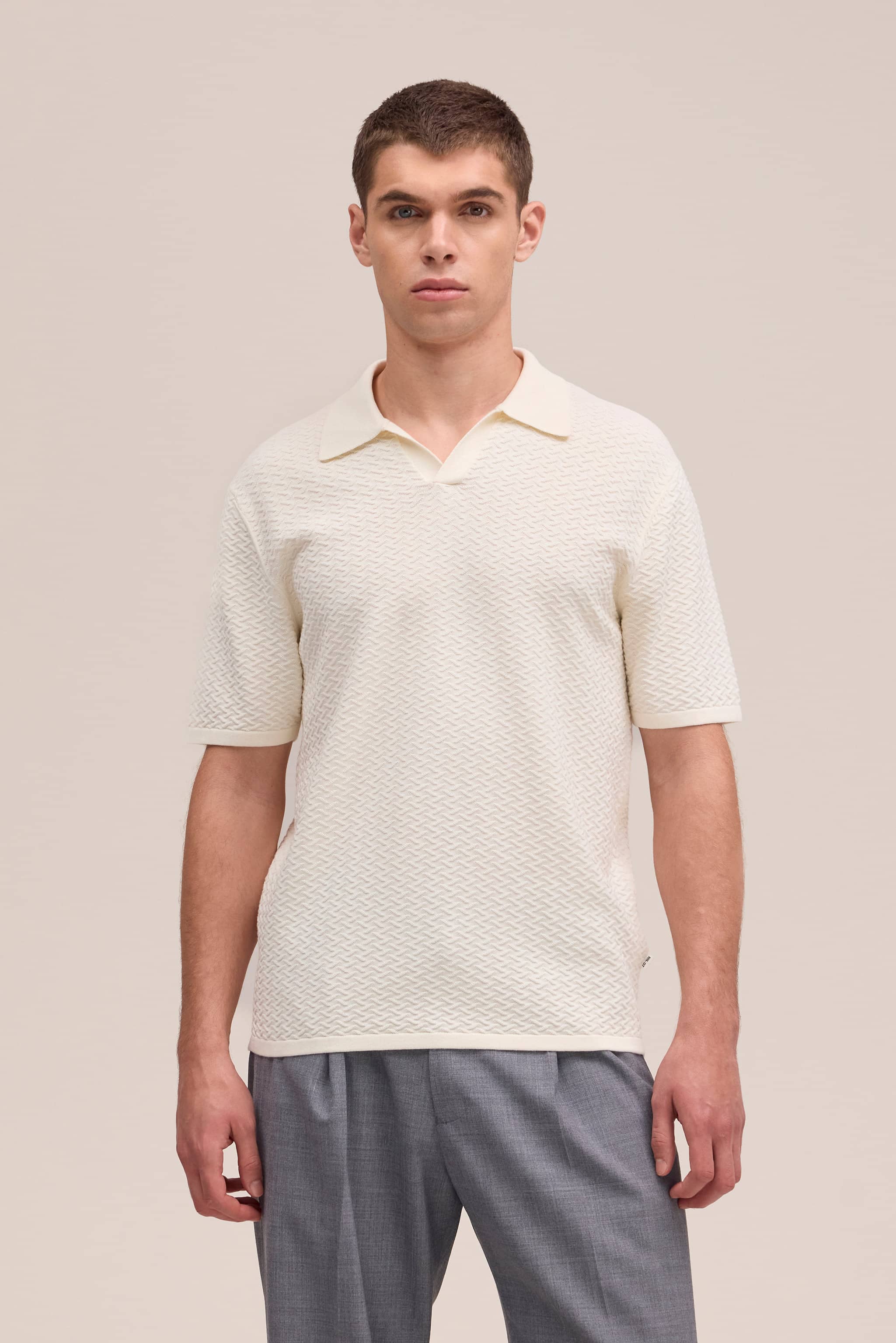 Ein leichtes Leinen-Polo mit strukturiertem Strick und kühlem, feinem Griff.
