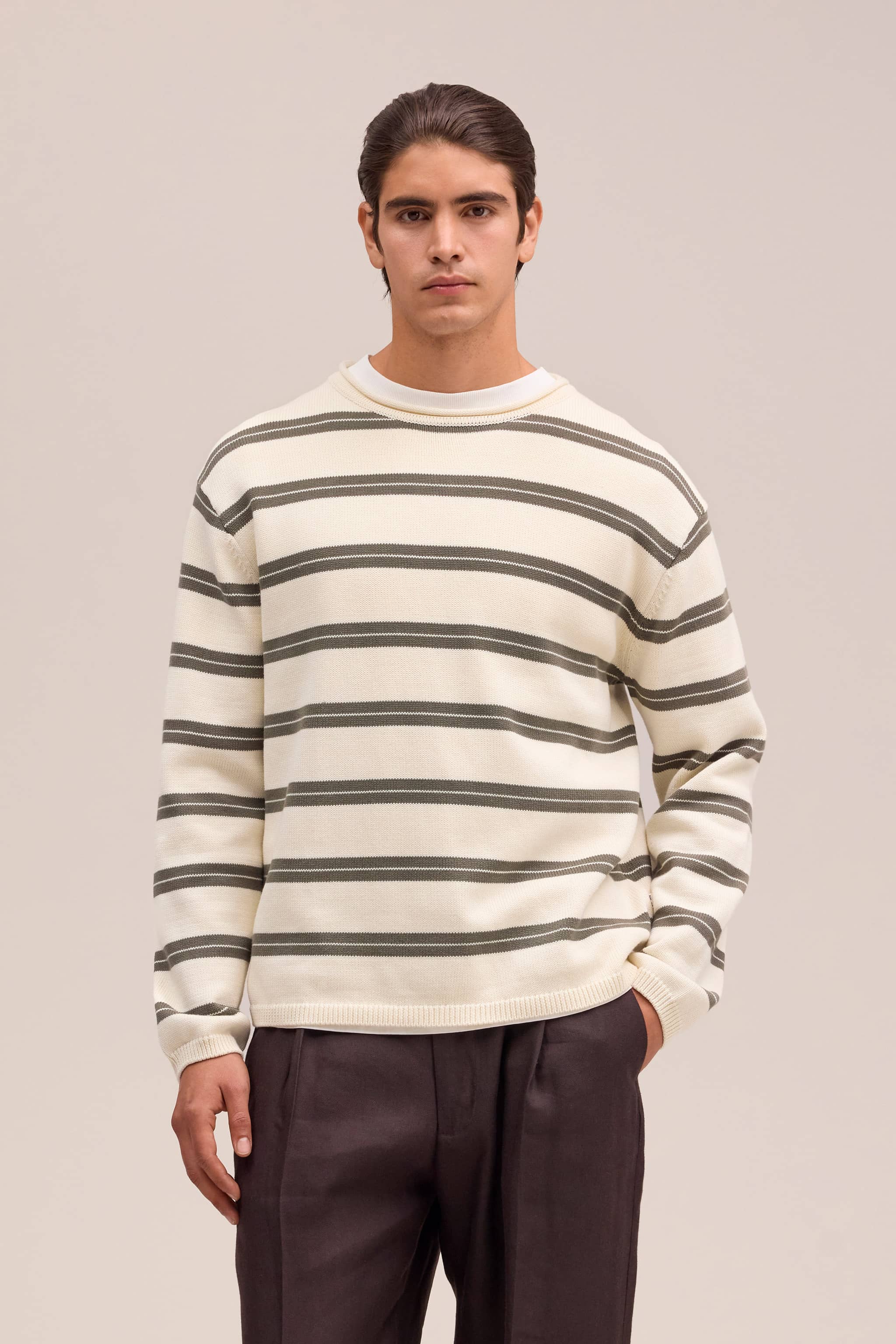 Gestreifter Rundhalspullover im Relaxed Fit aus mittelschwerer Bio-Baumwolle.