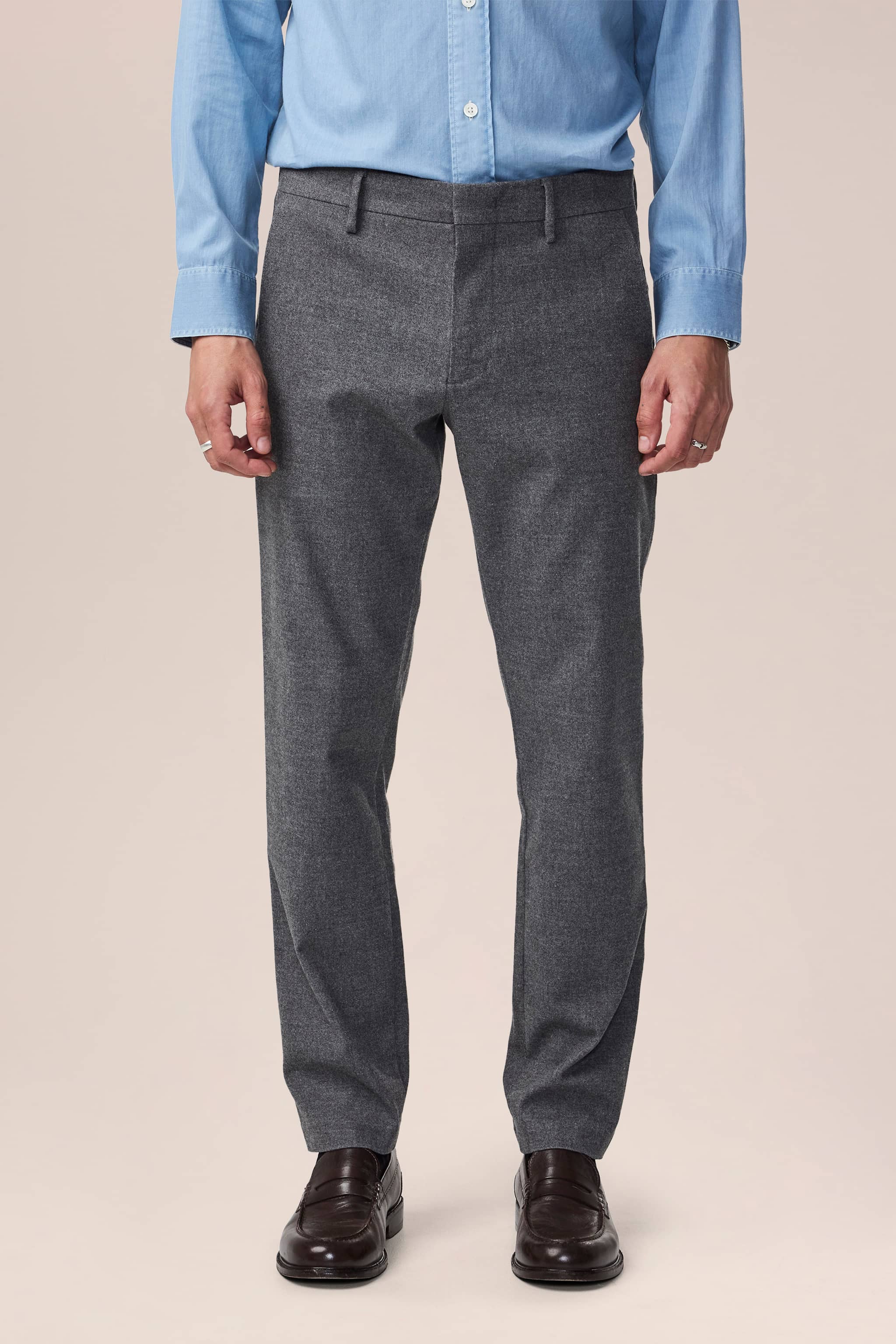 Chinos in Regular Fit aus mittelschwerem Panamagewebe mit fließendem Fall und schmal zulaufendem Bein.