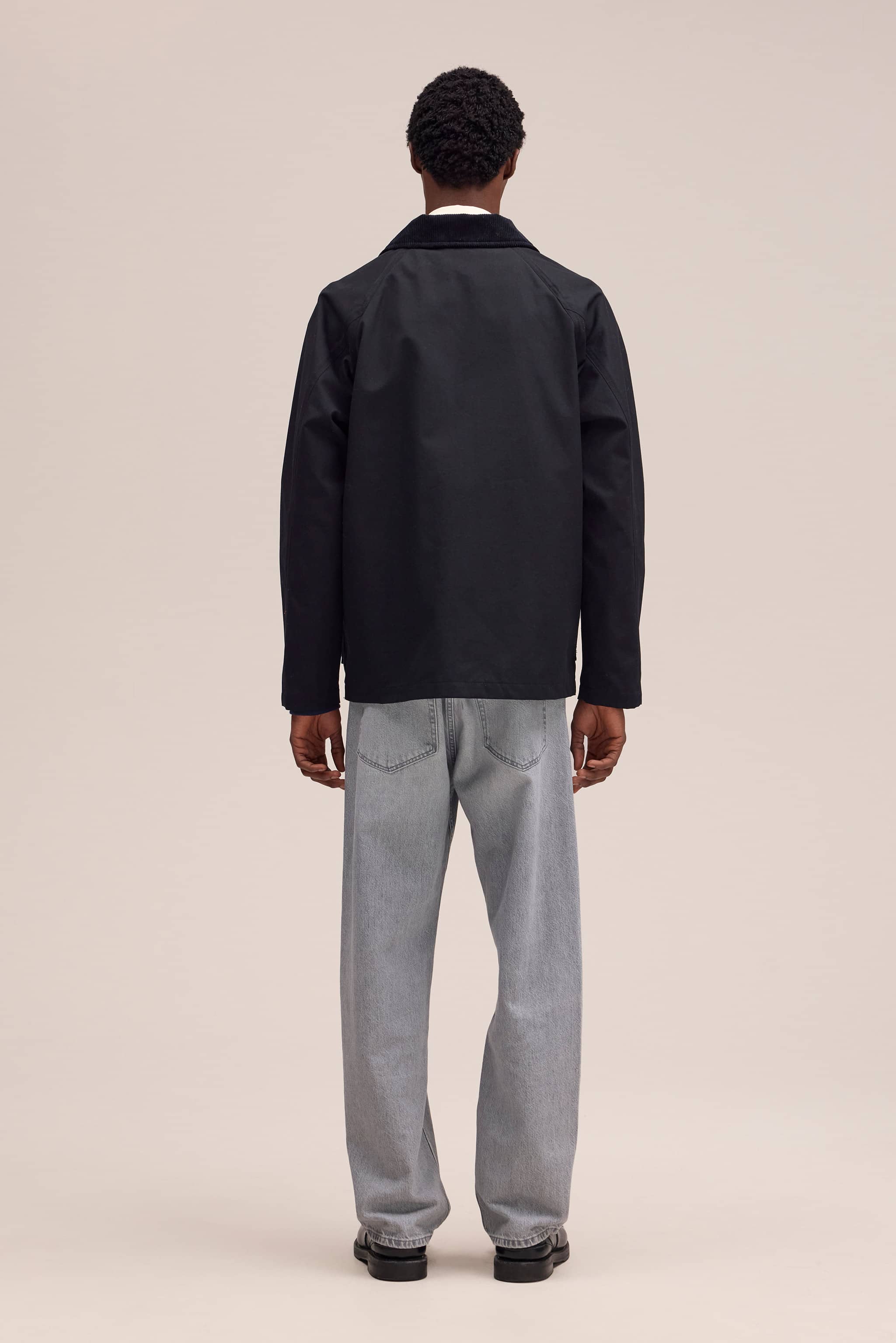 Eine raffinierte Jacke aus hochwertigem Stoff aus der renommierten Weberei British Millerain. Gefertigt aus Bio-Baumwolle und veredelt mit firmeneigenen Wachstechniken, die über mehr als ein Jahrhundert entwickelt wurden, wird das Wachs tief in die Fasern eingearbeitet und sorgt so für erhöhte Strapazierfähigkeit, Wasserabweisung und ein gleichmäßiges Finish. Das Ergebnis ist ein strukturiertes Gewebe mit dezent gewachster Optik, das zugleich atmungsaktiv und flexibel bleibt. Die Jacke ist mit einem weich angerauten Cordkragen und praktischen Taschen ausgestattet, wird mit einem Reißverschluss geschlossen und mit Metallsnaps mit eingeprägtem NN.07-Logo abgerundet – für ein durchdachtes, zurückhaltendes Finish.