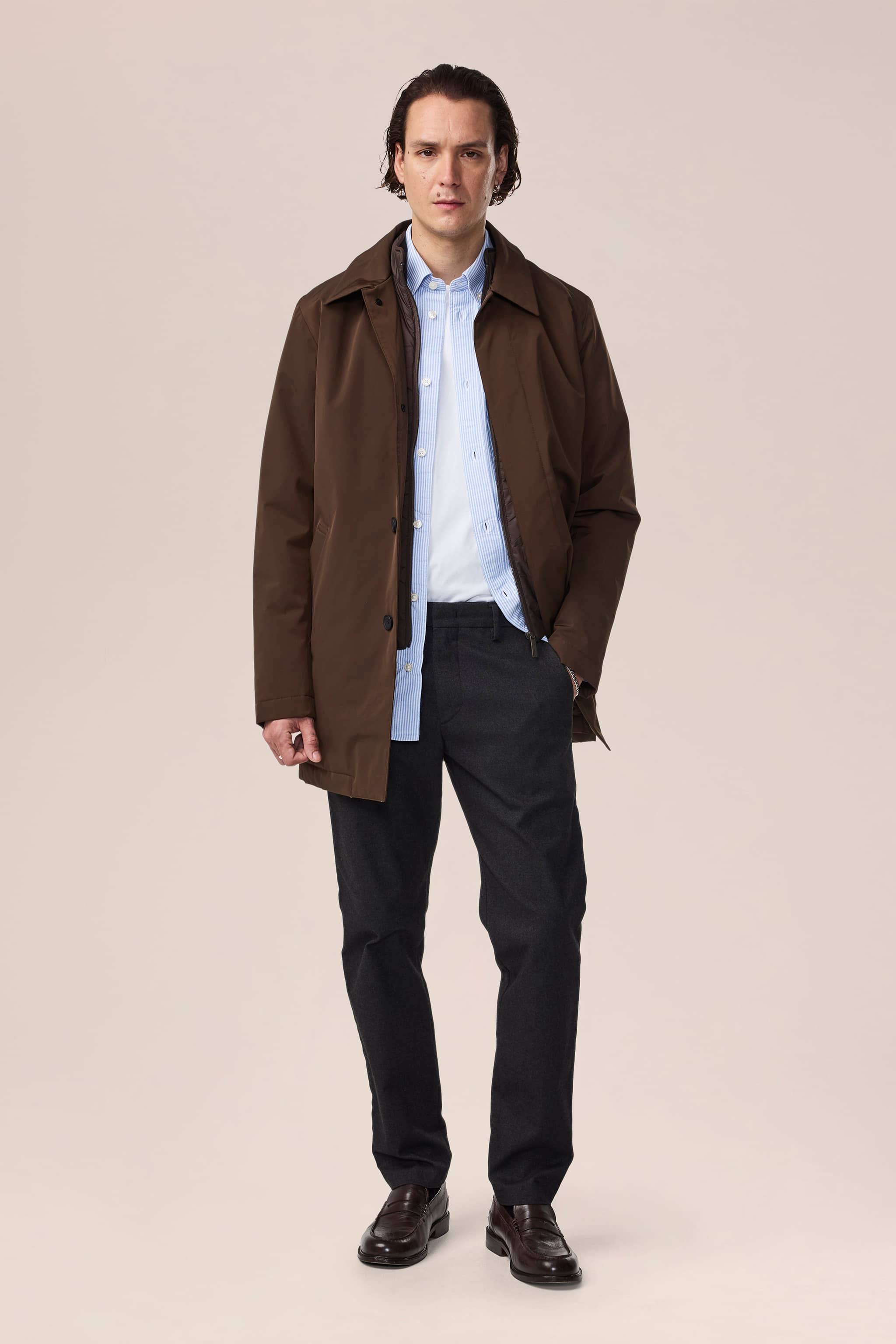 Leichtes Hybrid-Overshirt in Regular Fit aus strukturiertem Seersucker, atmungsaktiv für die Übergangszeit.
