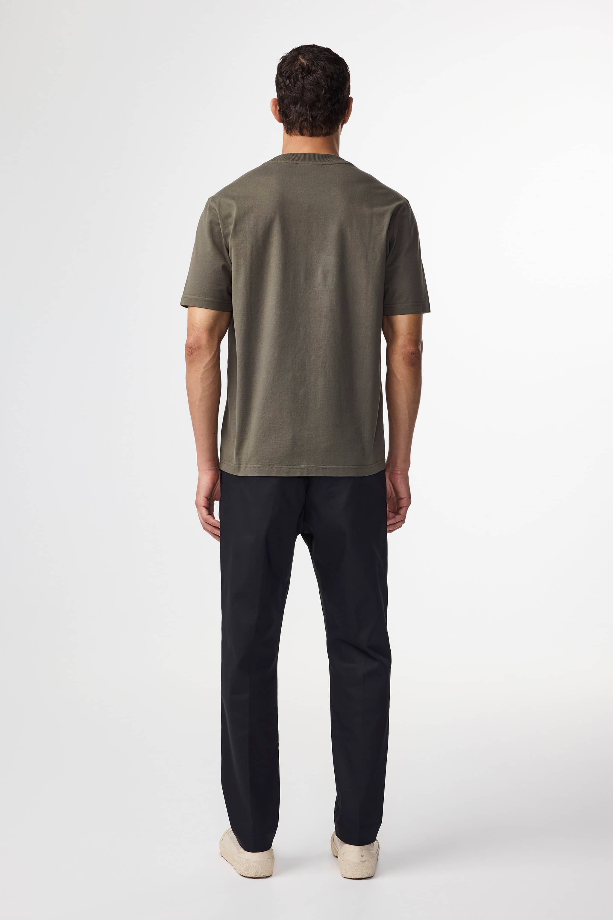 Casual tee made in a cotton jersey with twin needle stitching throughout and a rib detail along the neckline.