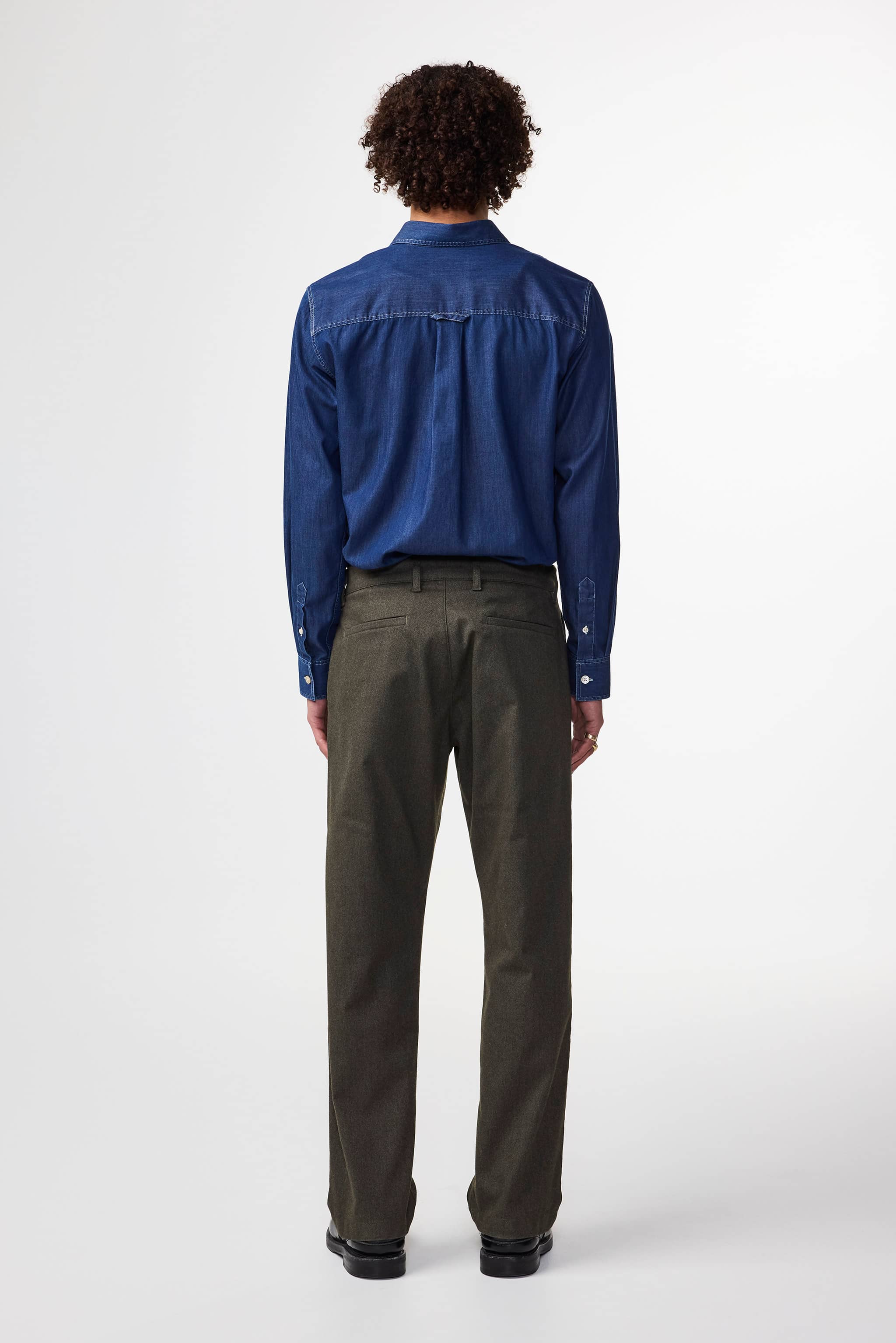 Casual chino with a straight leg made from a brushed 280 g/m² cotton melange blend. The stretchy melange fabric has been treated with enzyme wash and has a soft and brushed handfeel to provide extra comfort. The trousers are finished off with a button closure and backpockets with a subtle NN.07 embroidery.