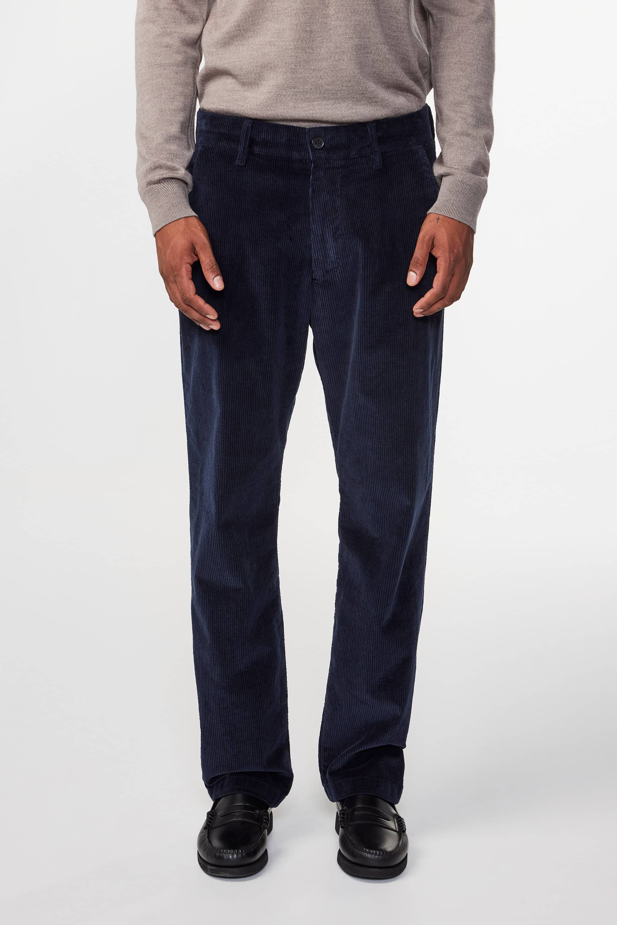Classic five-pocket, straight-leg, mid-rise corduroy trousers crafted in a soft organic cotton blend with earthhorn buttons.
