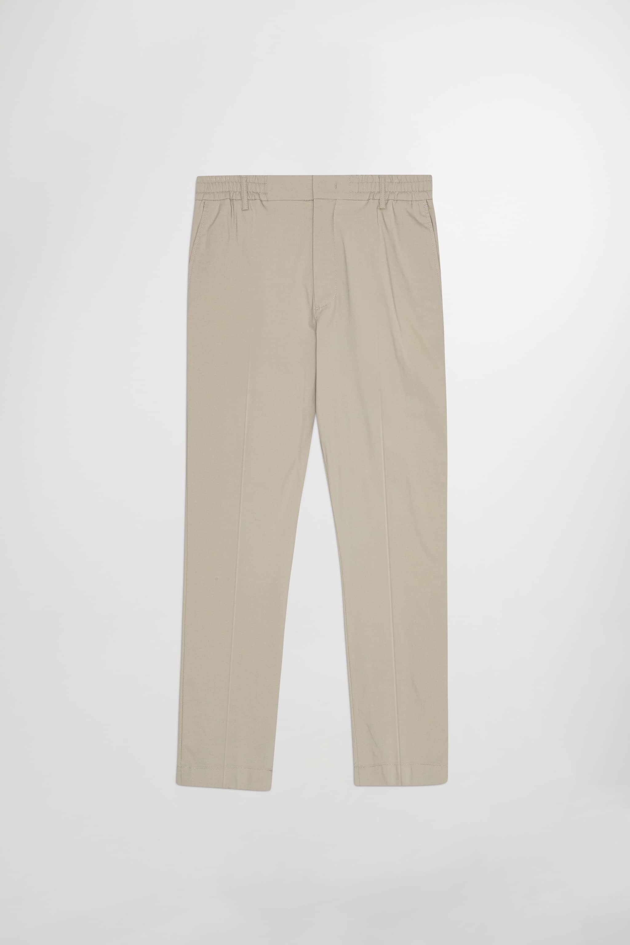 Lightweight trousers in a regular fit trousers with tapered leg, crafted in a 170 g/m2 cotton blend. Designed with an elasticised waistband with drawstring closure. Features a minimalist design with press folds, blind hem, and hidden closure.