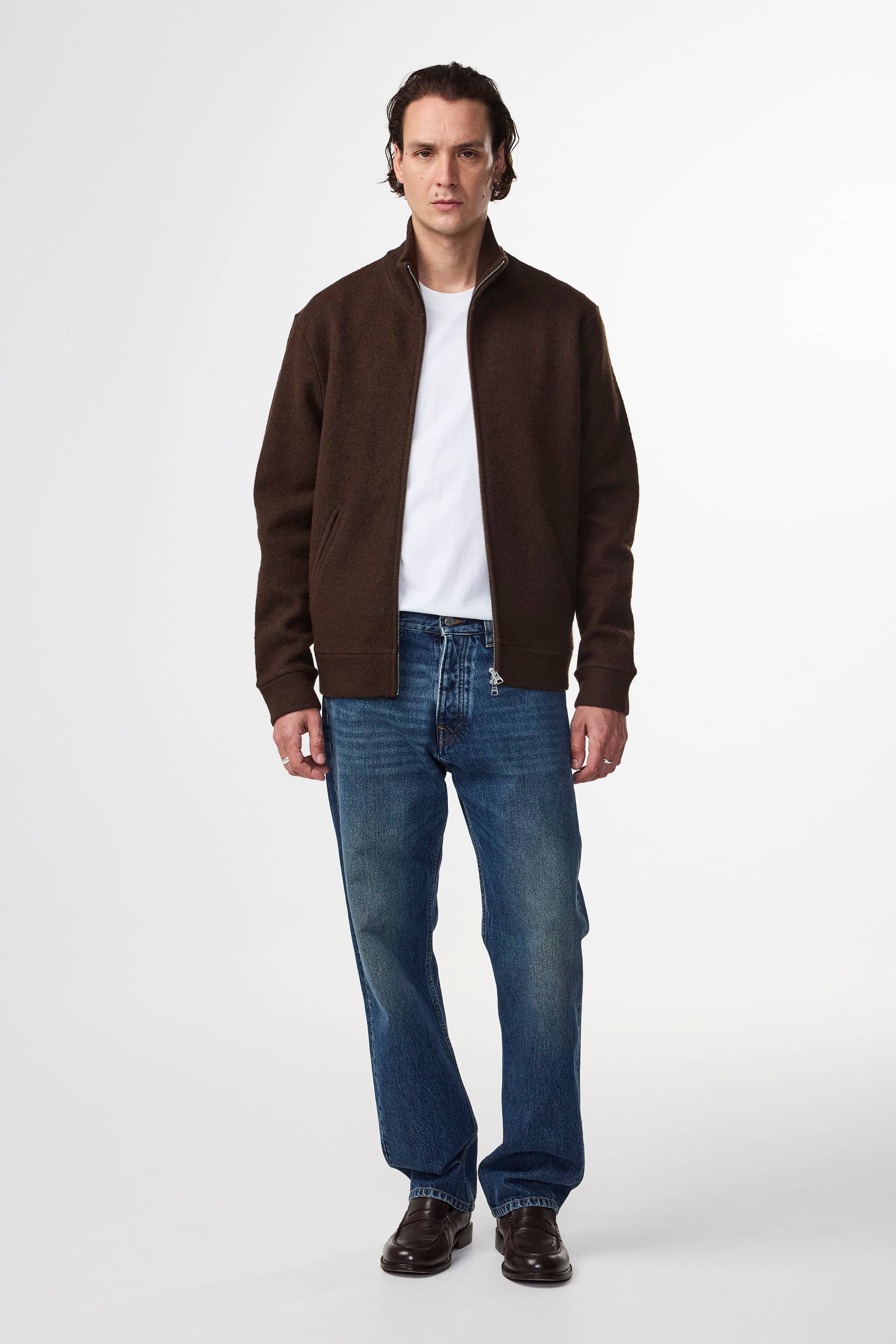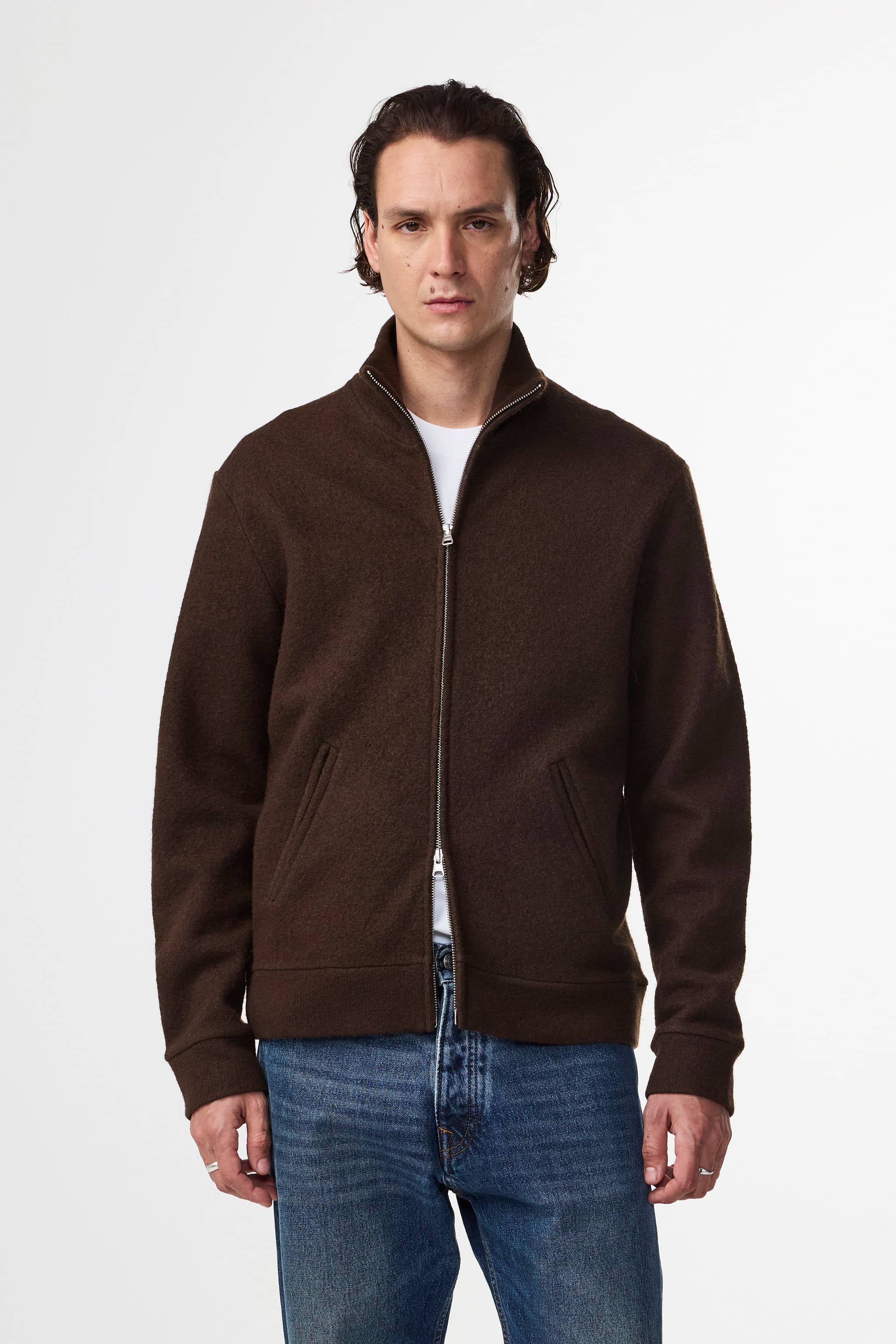 Classic zip-up hybrid crafted from soft-boiled merino wool. Designed with a high neck and finished with discreet side pockets.