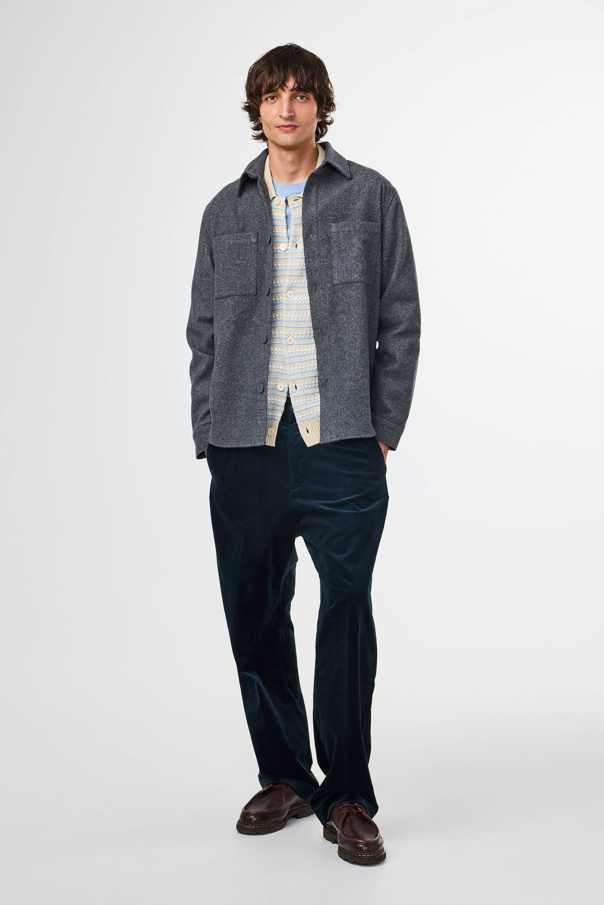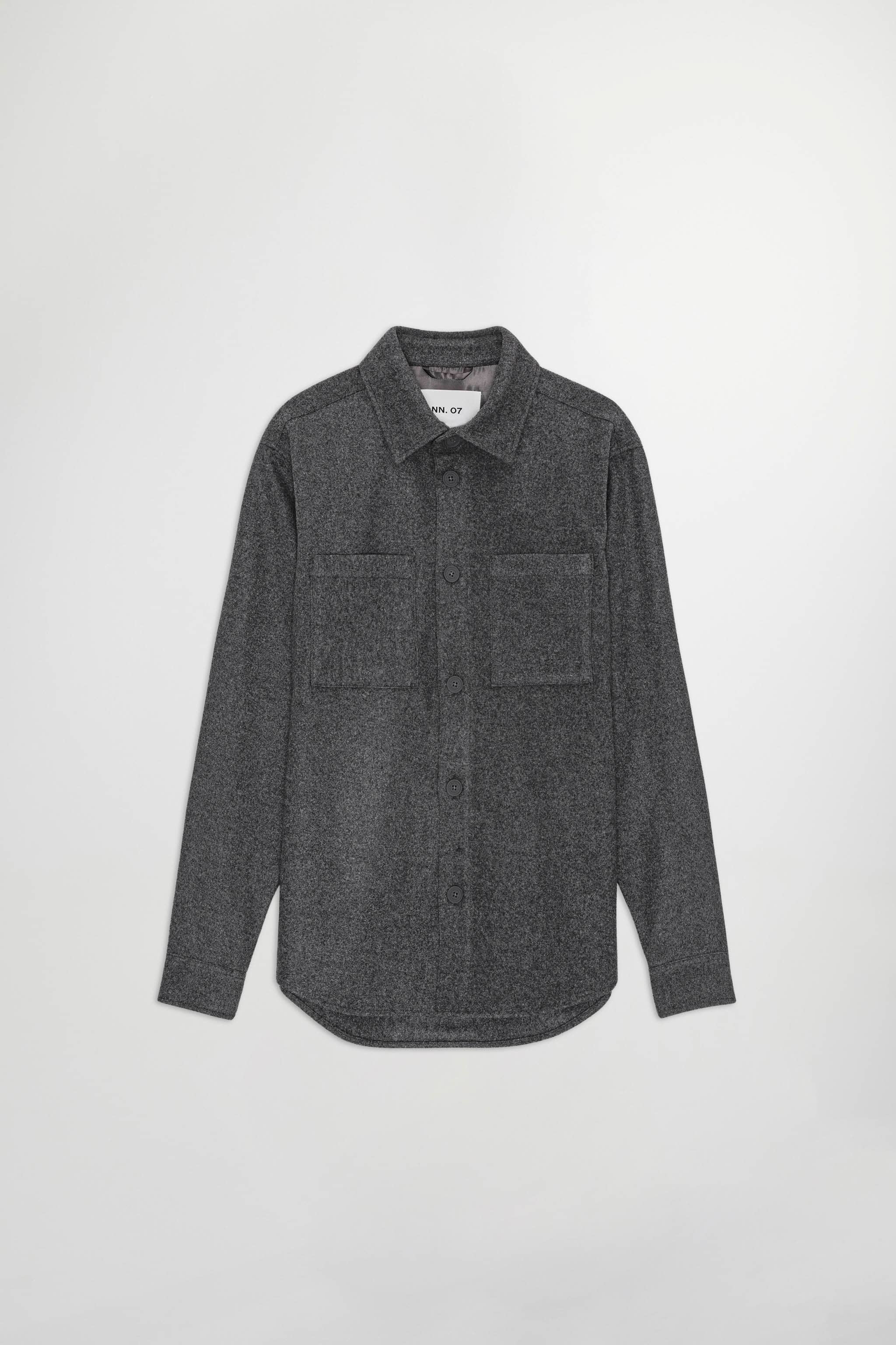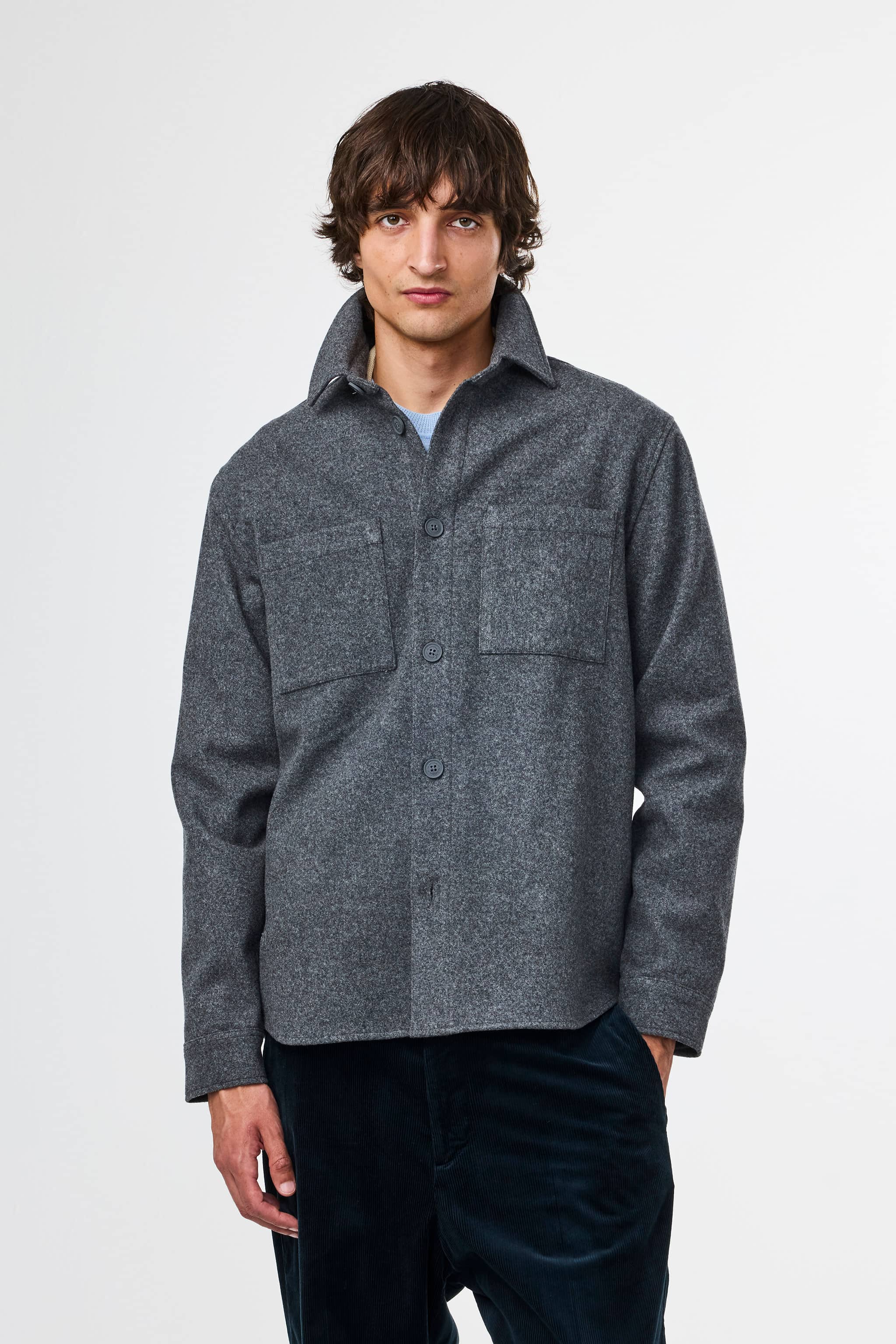Half-lined overshirt crafted from wool fabric, complete with double chest pockets and rubberised logo buttons.
