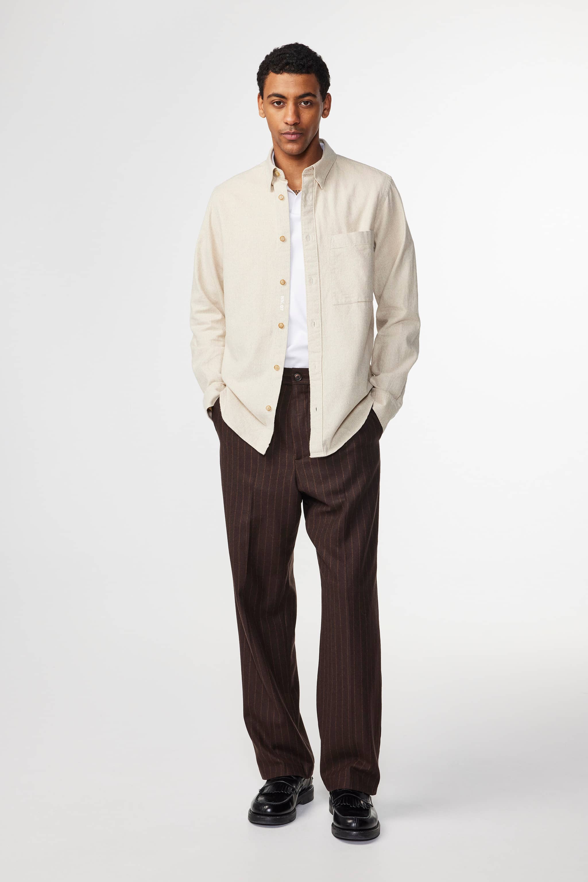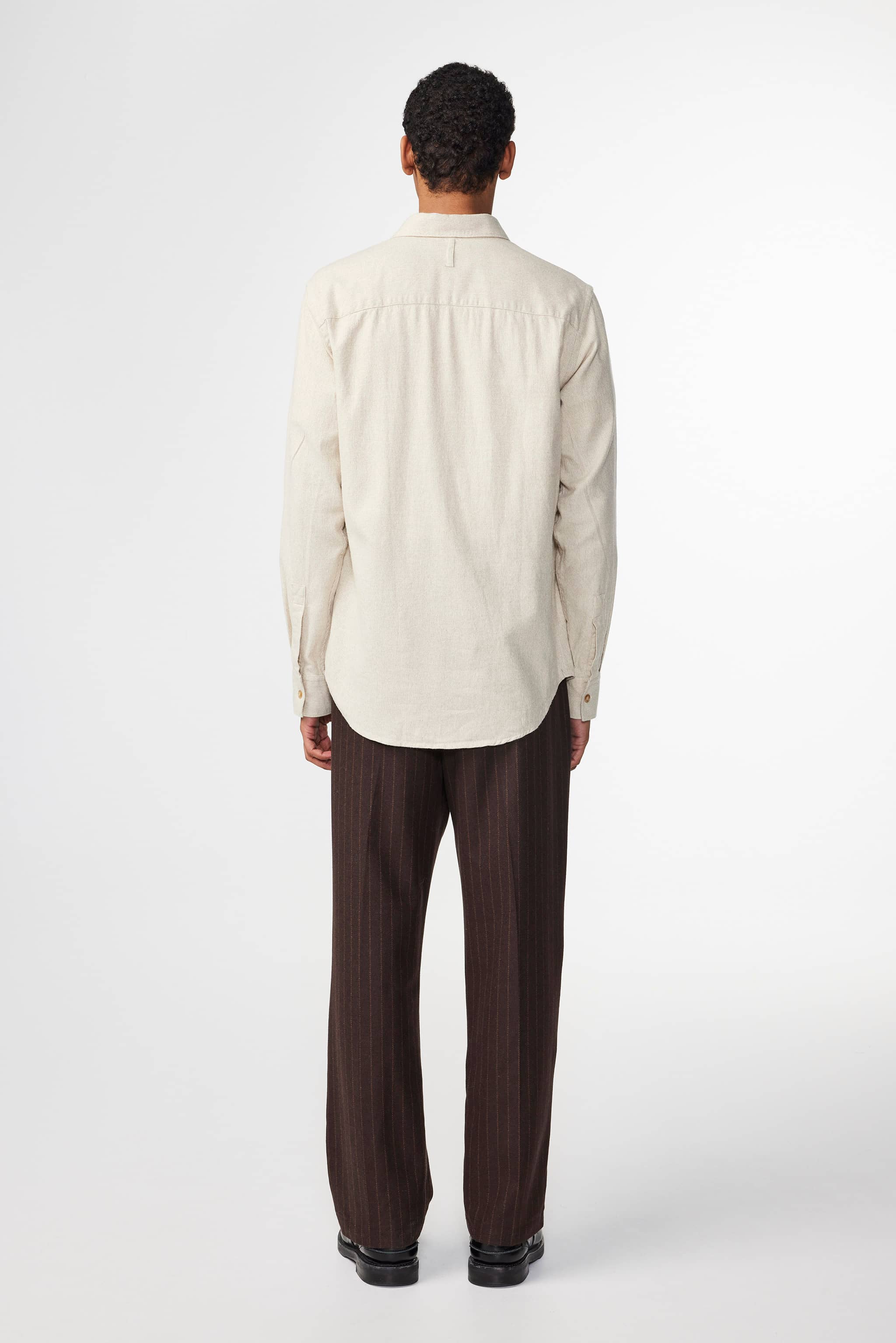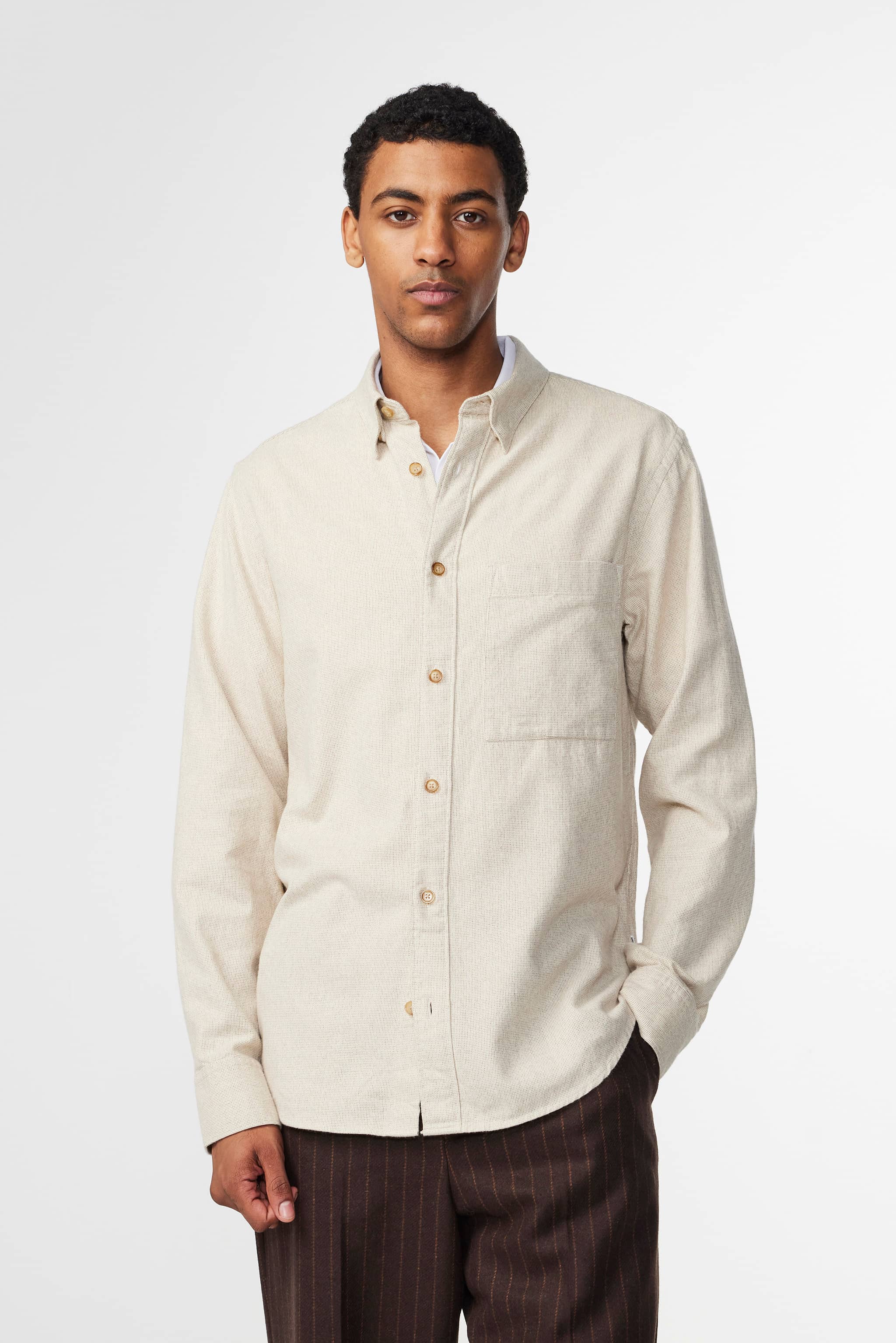 Button-up shirt crafted in an organic cotton flannel twill features a single patch pocket and rounded hemline and topped with classic shirting buttons.