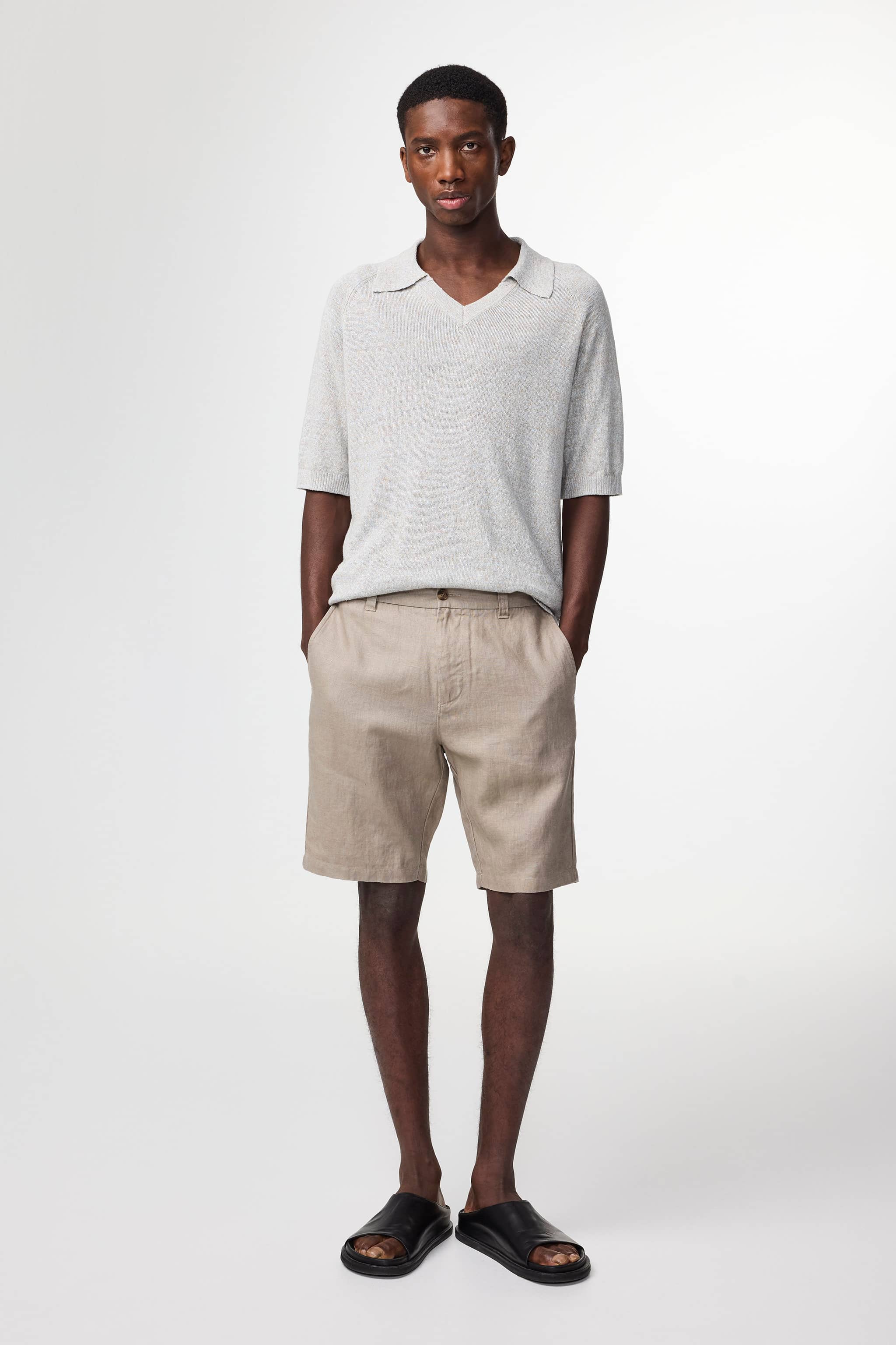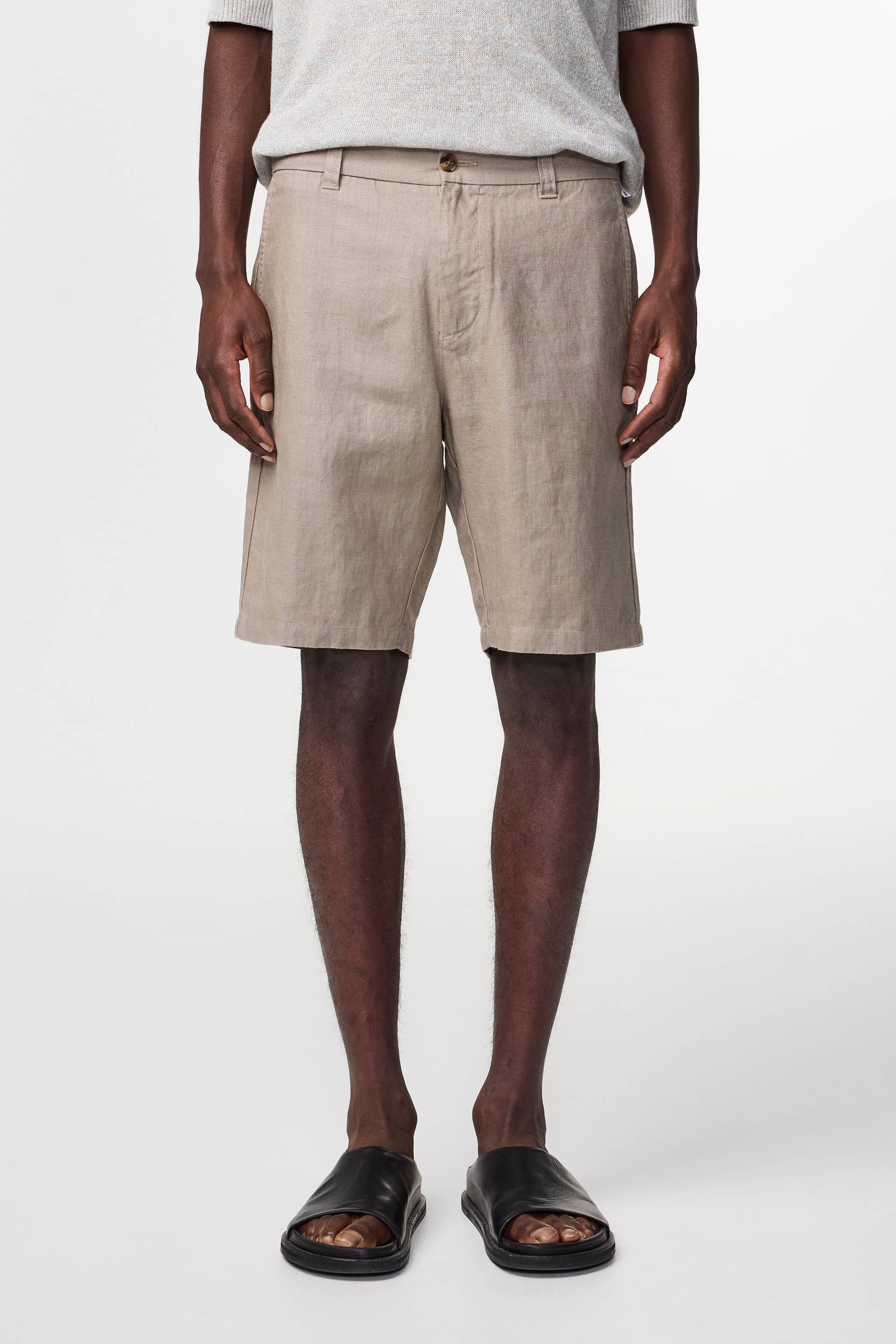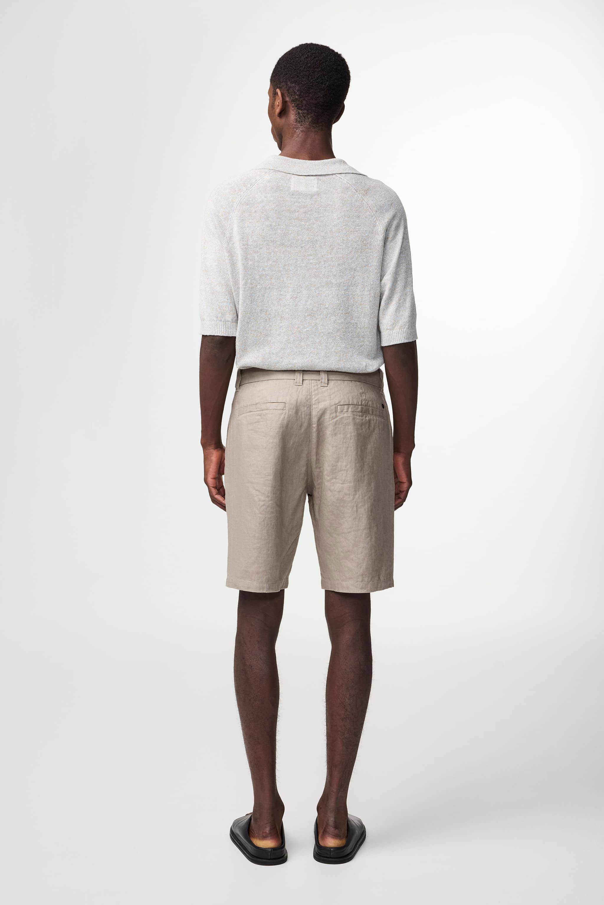 Chino shorts crafted from breathable European linen with a crisp, drapey handfeel. Designed with button closure and back pockets detailed with NN.07 branded metal dots for a refined finish.