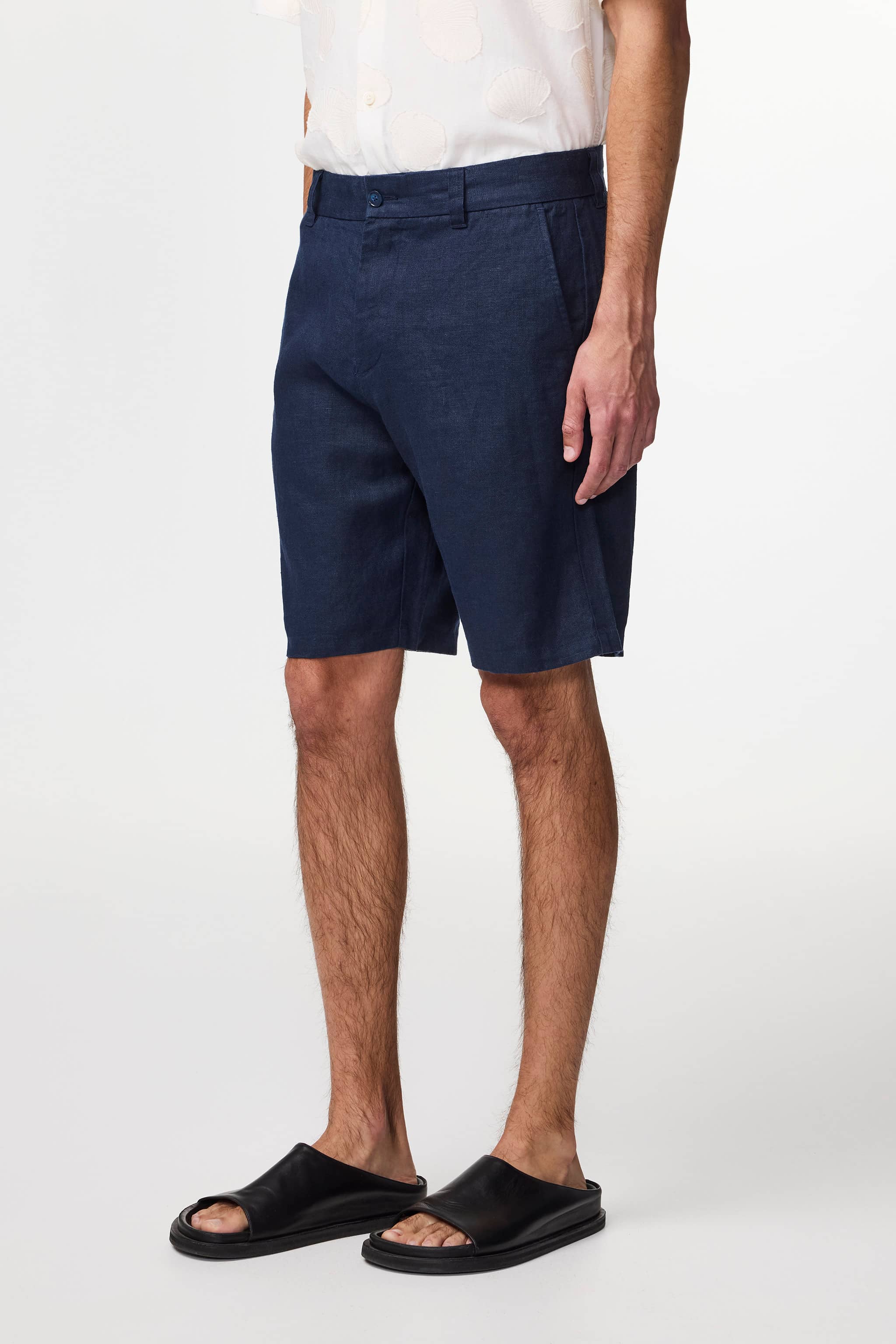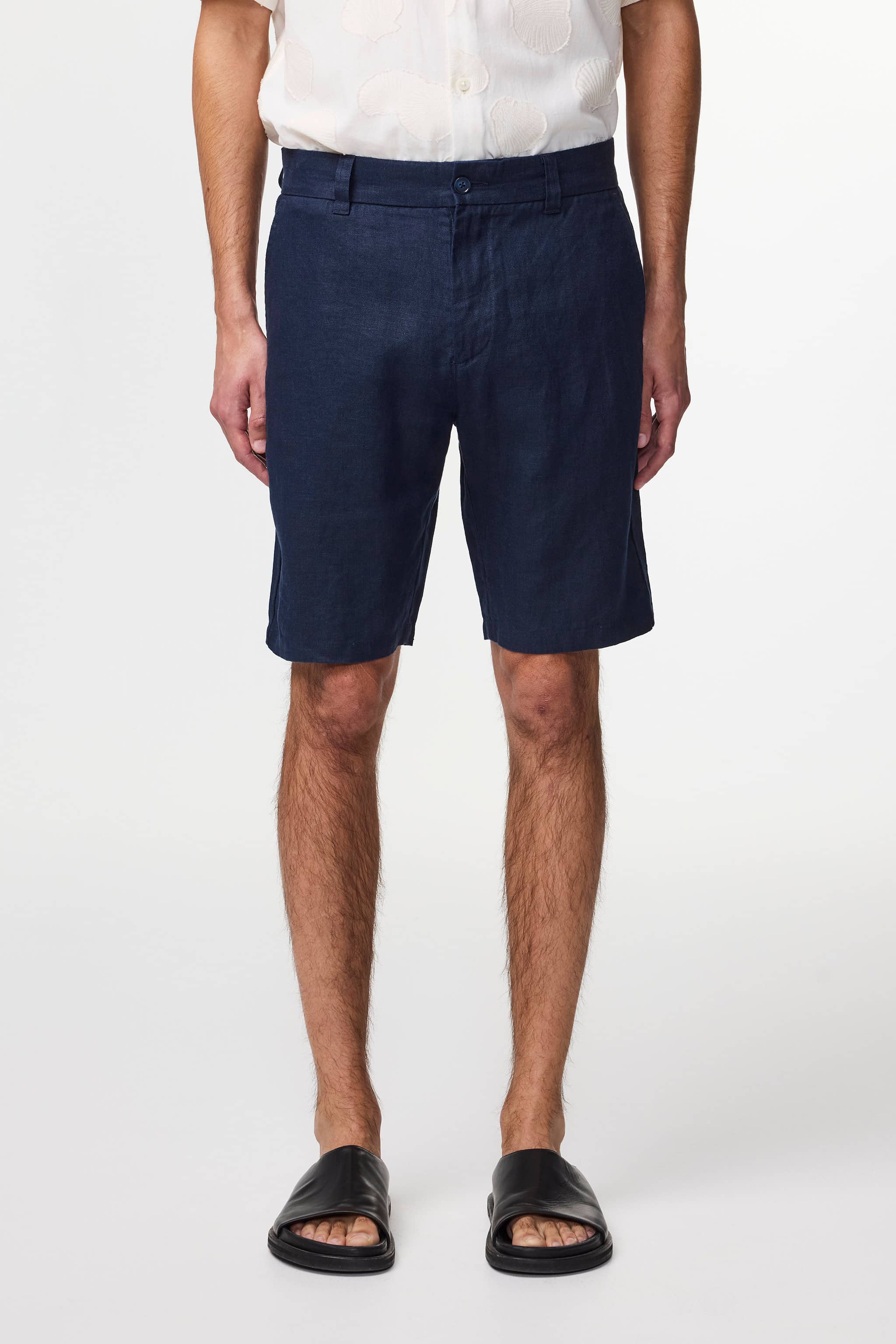 Chino shorts crafted from breathable European linen with a crisp, drapey handfeel. Designed with button closure and back pockets detailed with NN.07 branded metal dots for a refined finish.