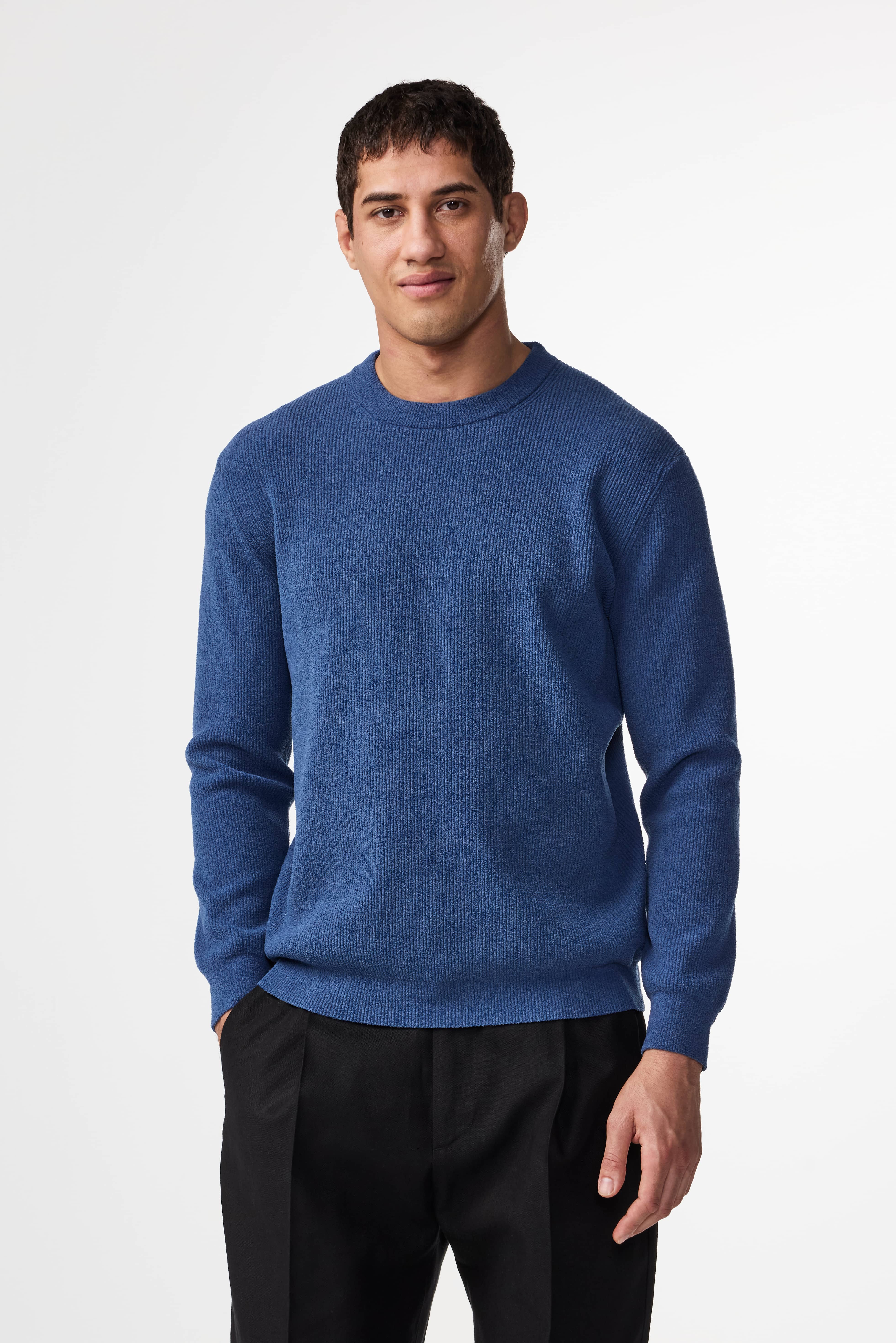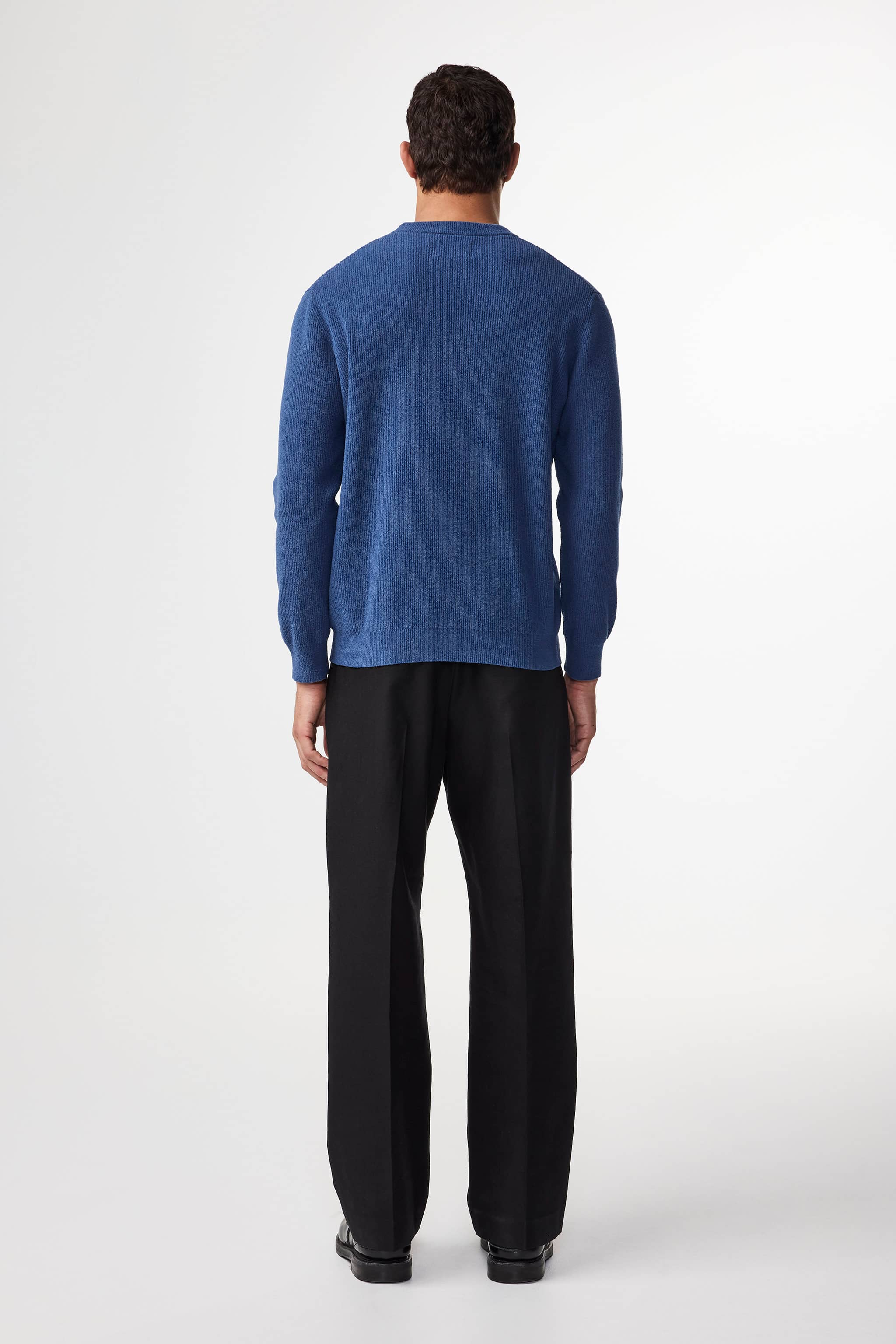 A soft crewneck sweater crafted in a lightweight polyester blend, designed with a neat rib and fashion detailing along the arm and neckline.
