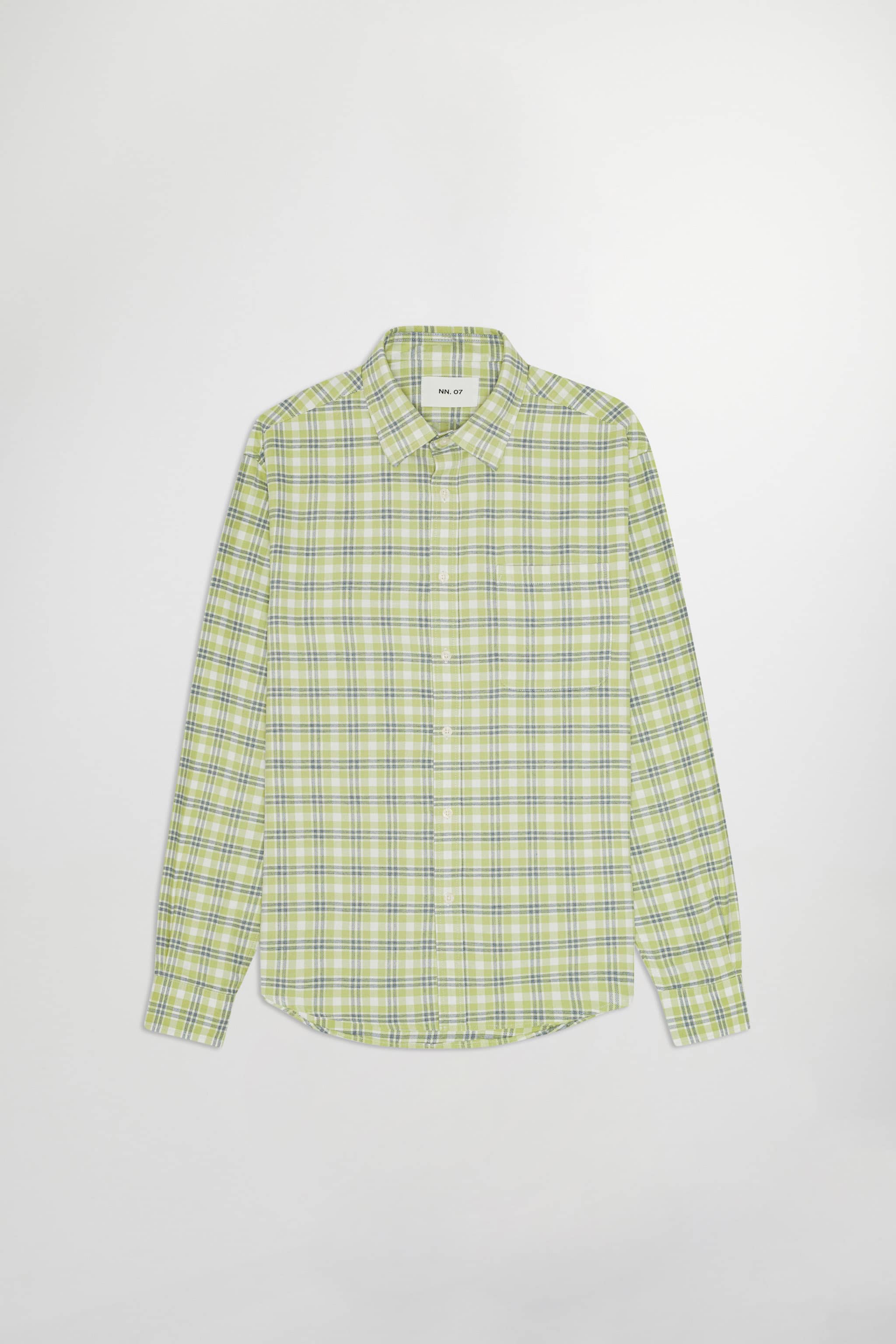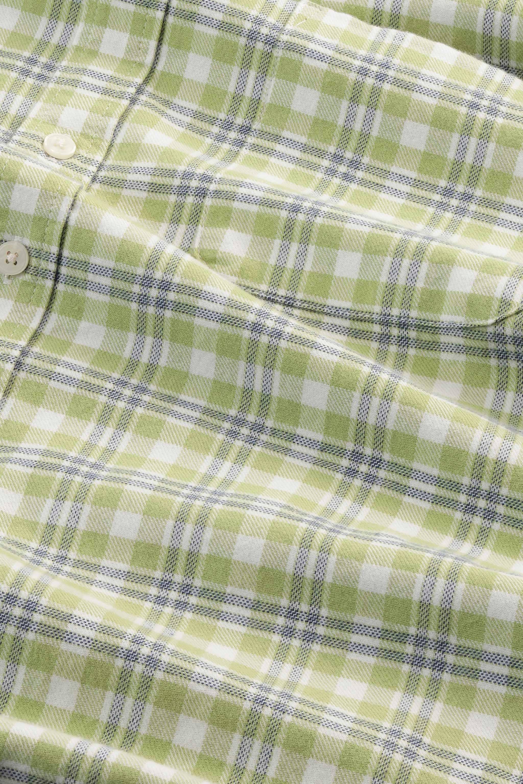 Button-up shirt made in soft cotton and woven in a flannel twill weave. Designed with a single patch pocket and rounded hemline.