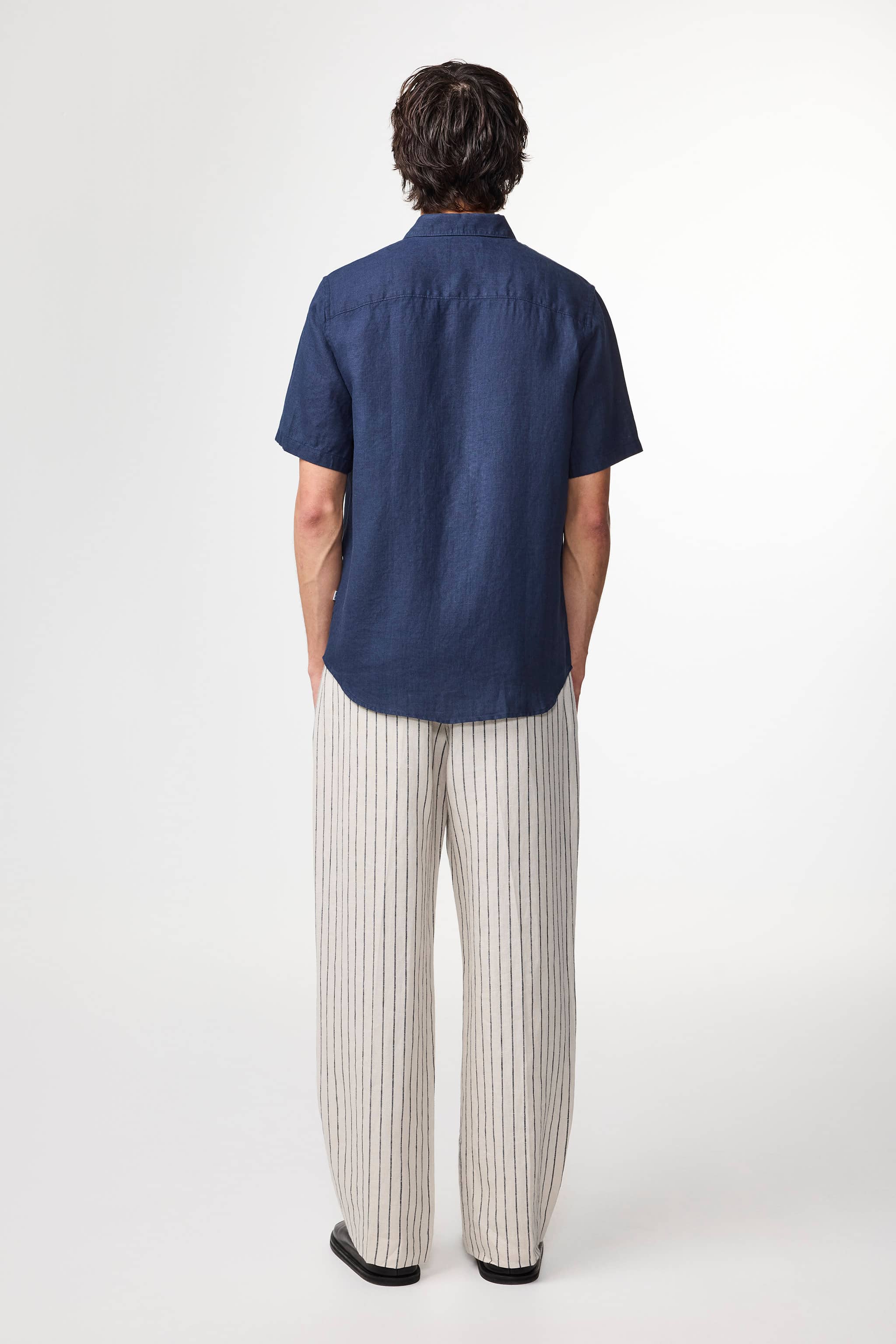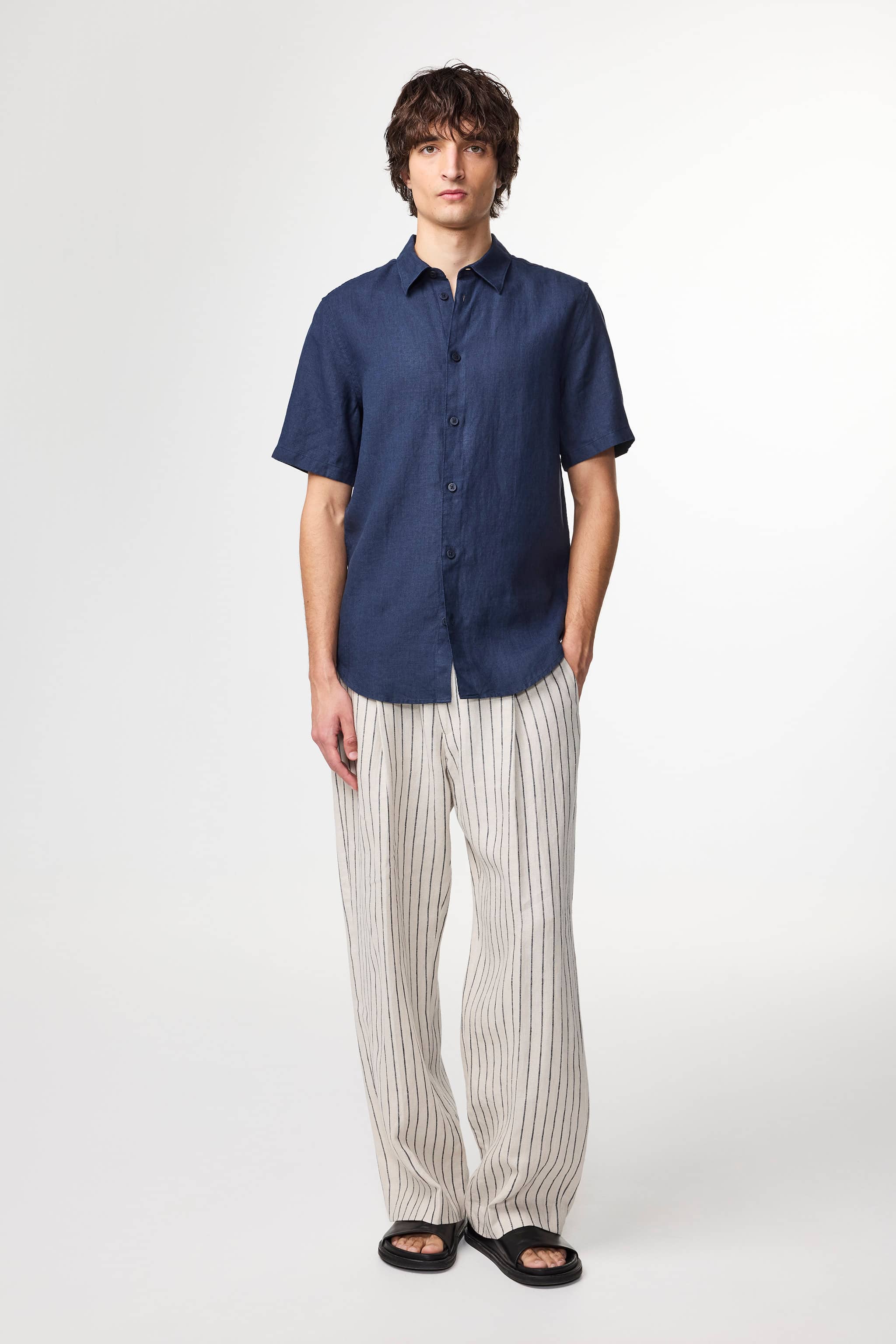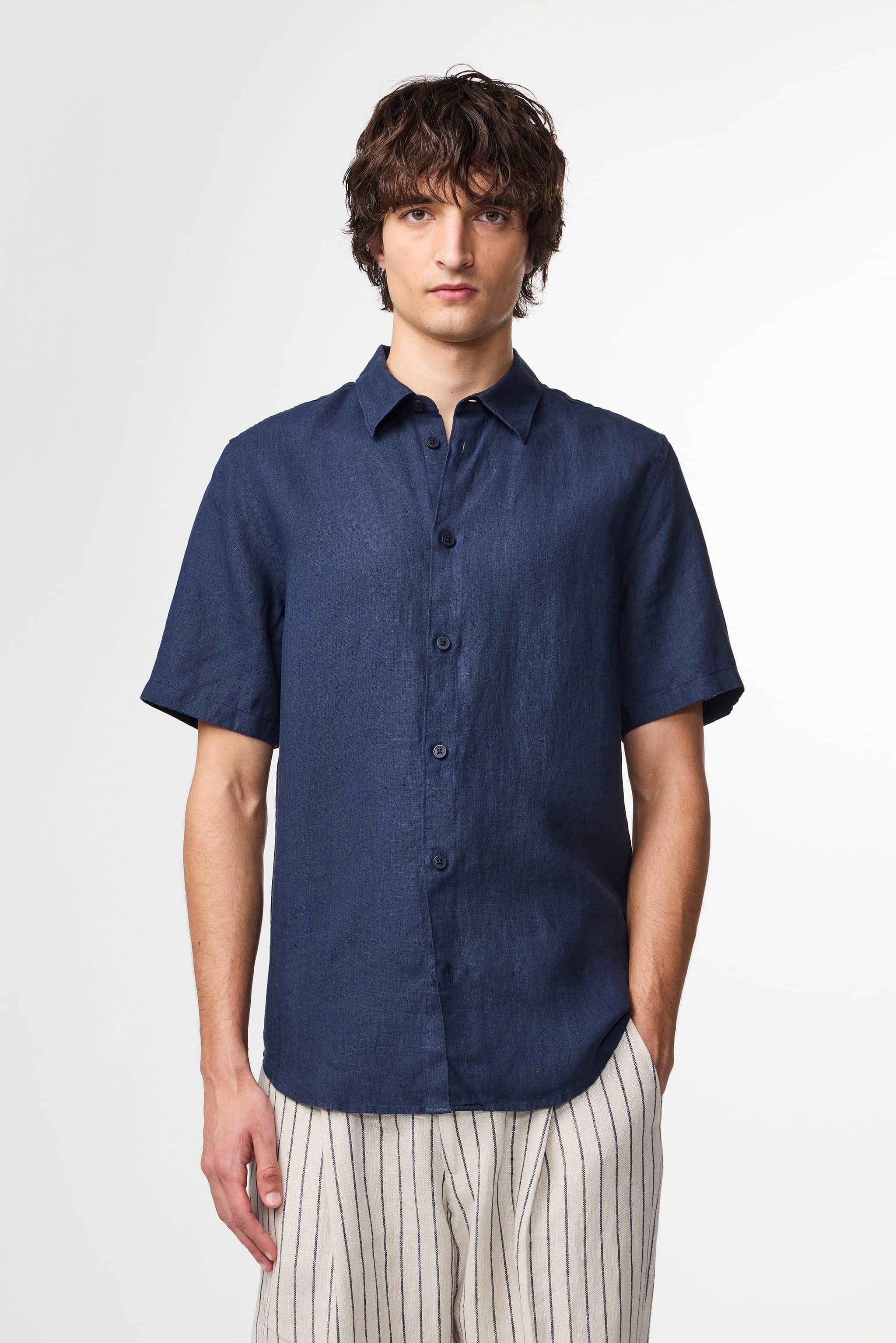 Shirt crafted from a crispy premium linen fabric with a soft feel, complete with dye-to-match buttons.