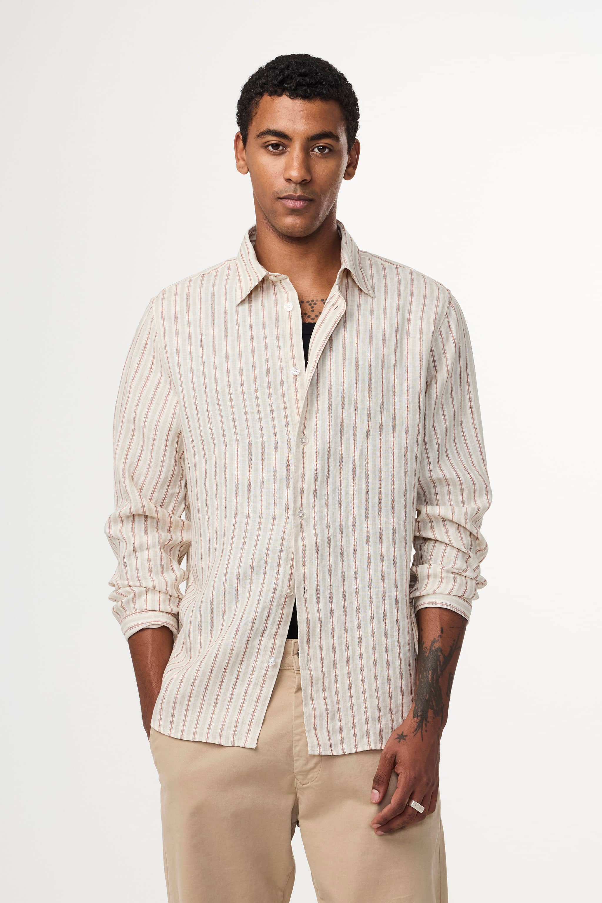 Striped shirt crafted from a crispy premium linen fabric with a soft feel.