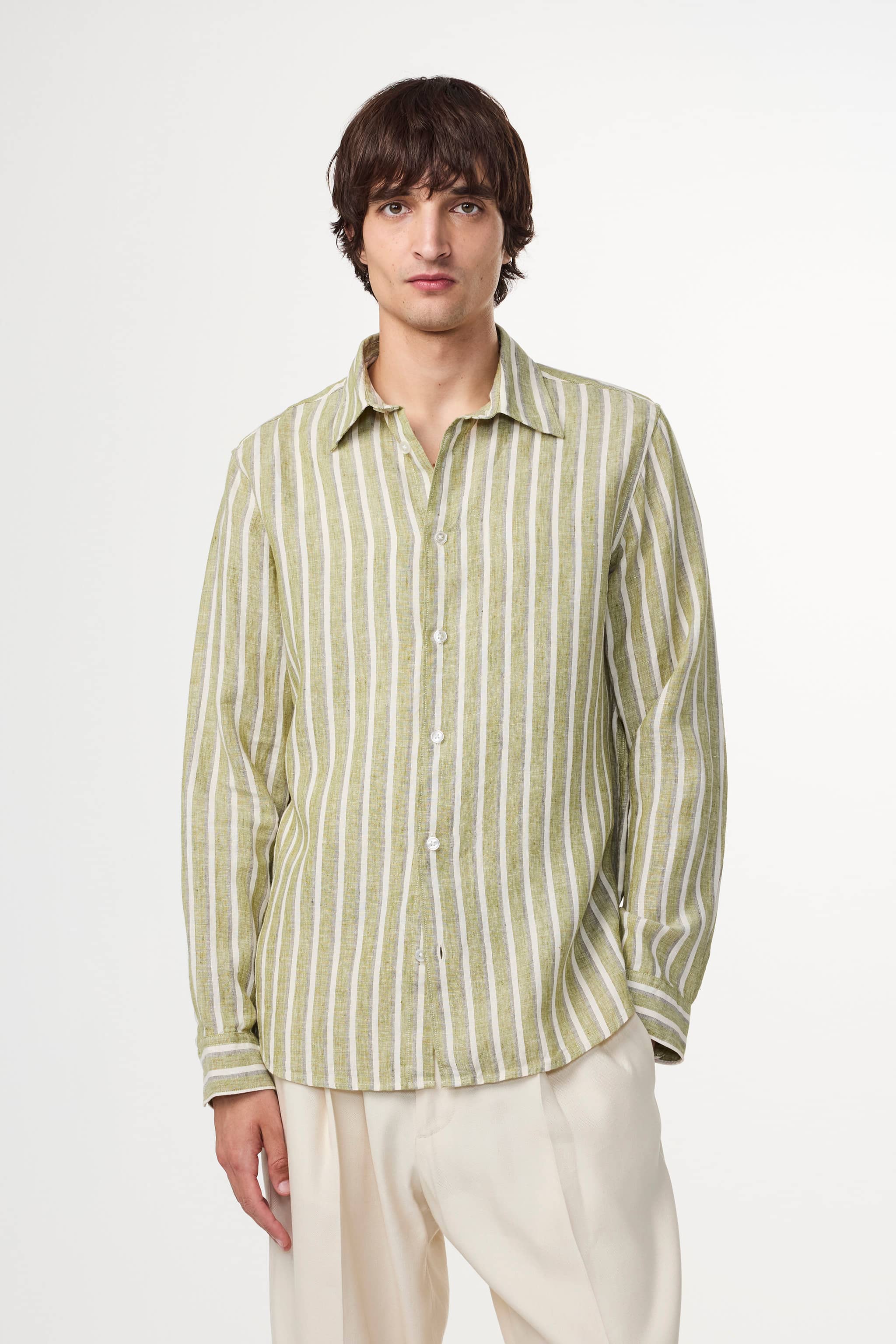 Striped shirt crafted from a crispy premium linen fabric with a soft feel.