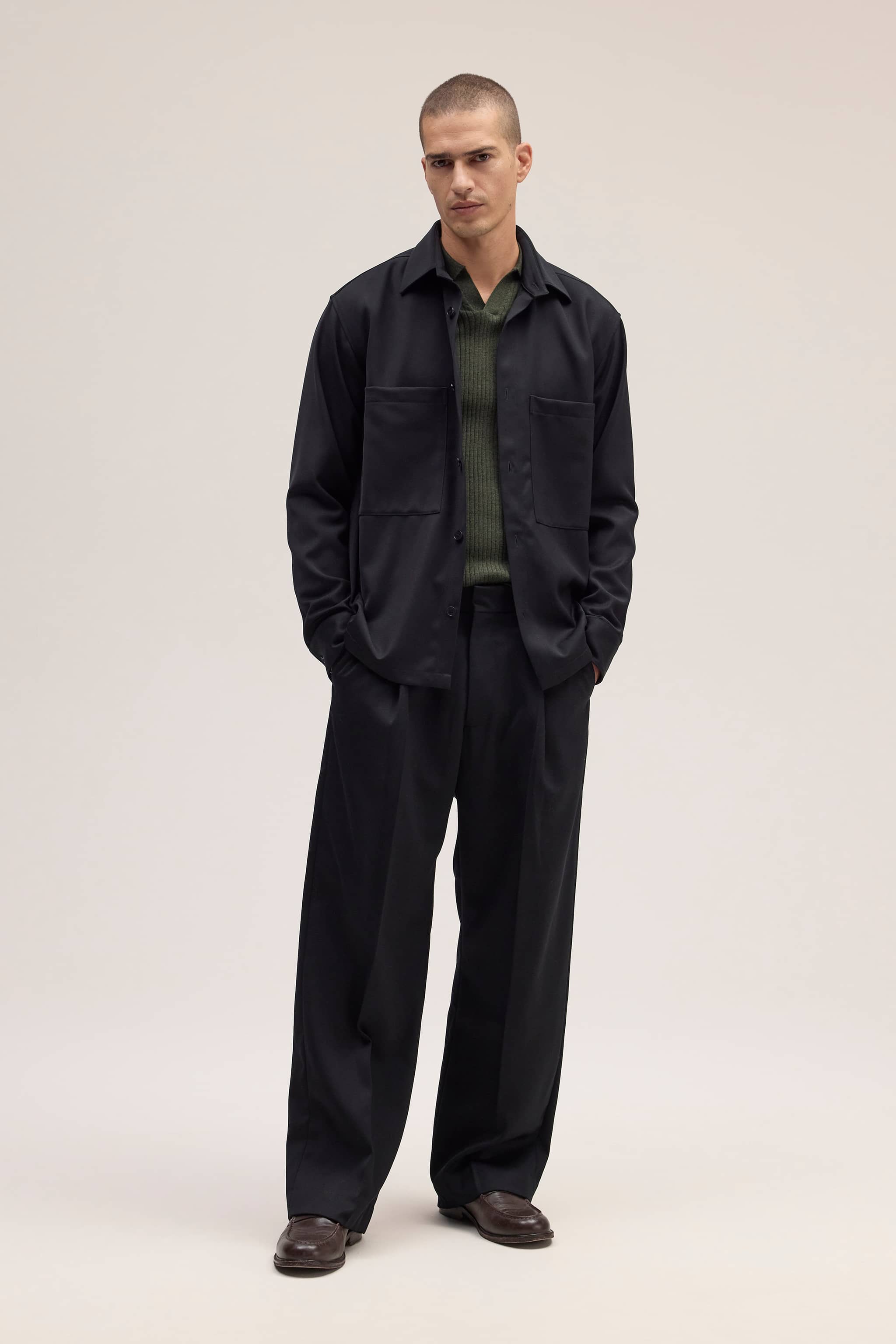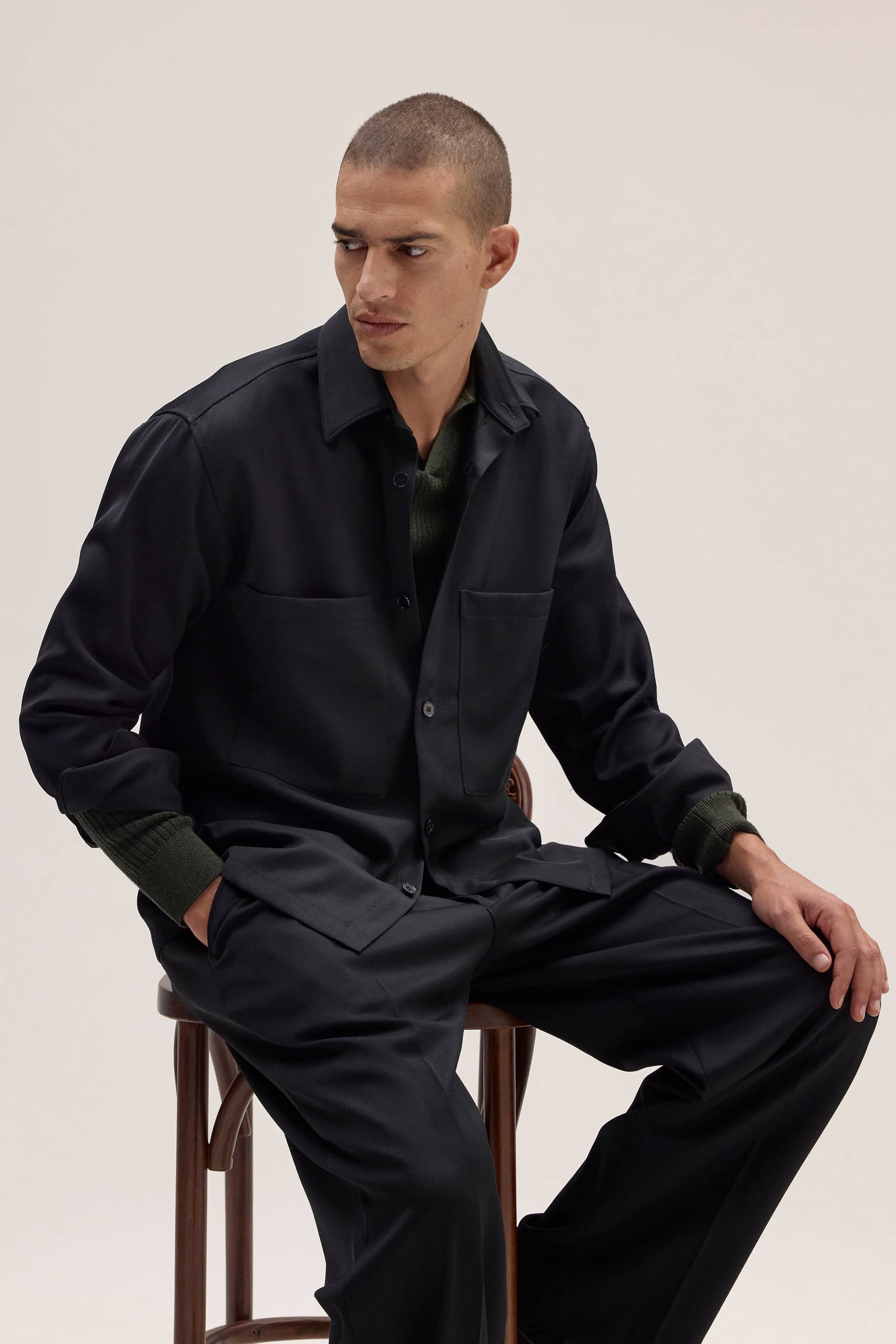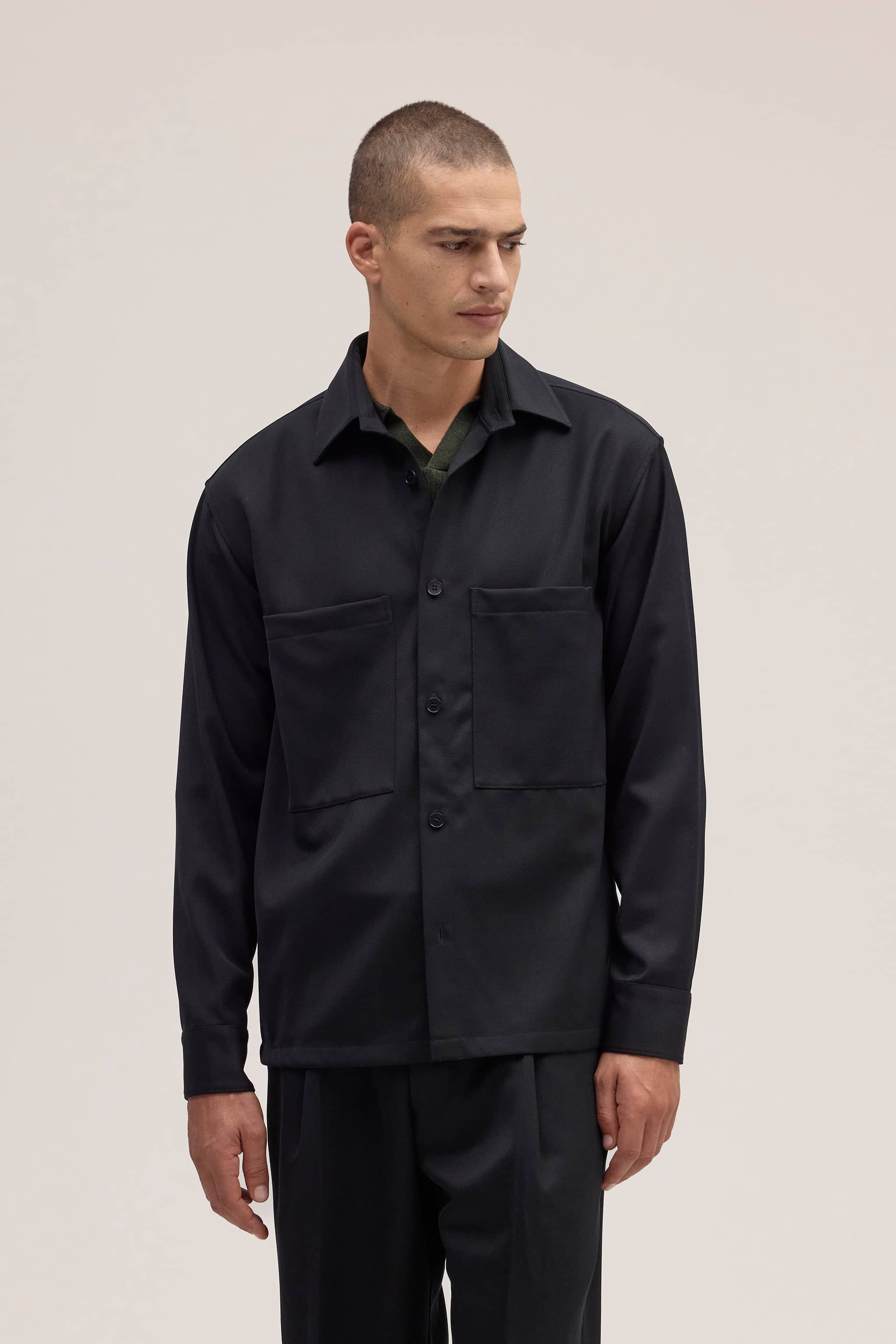 This classic hybrid is designed in a regular fit and is crafted from a blend of Wool and TENCEL™ Lyocell. It is an elegant, tailored piece that features a button-up hybrid design, chest pocket, and button cuffs.