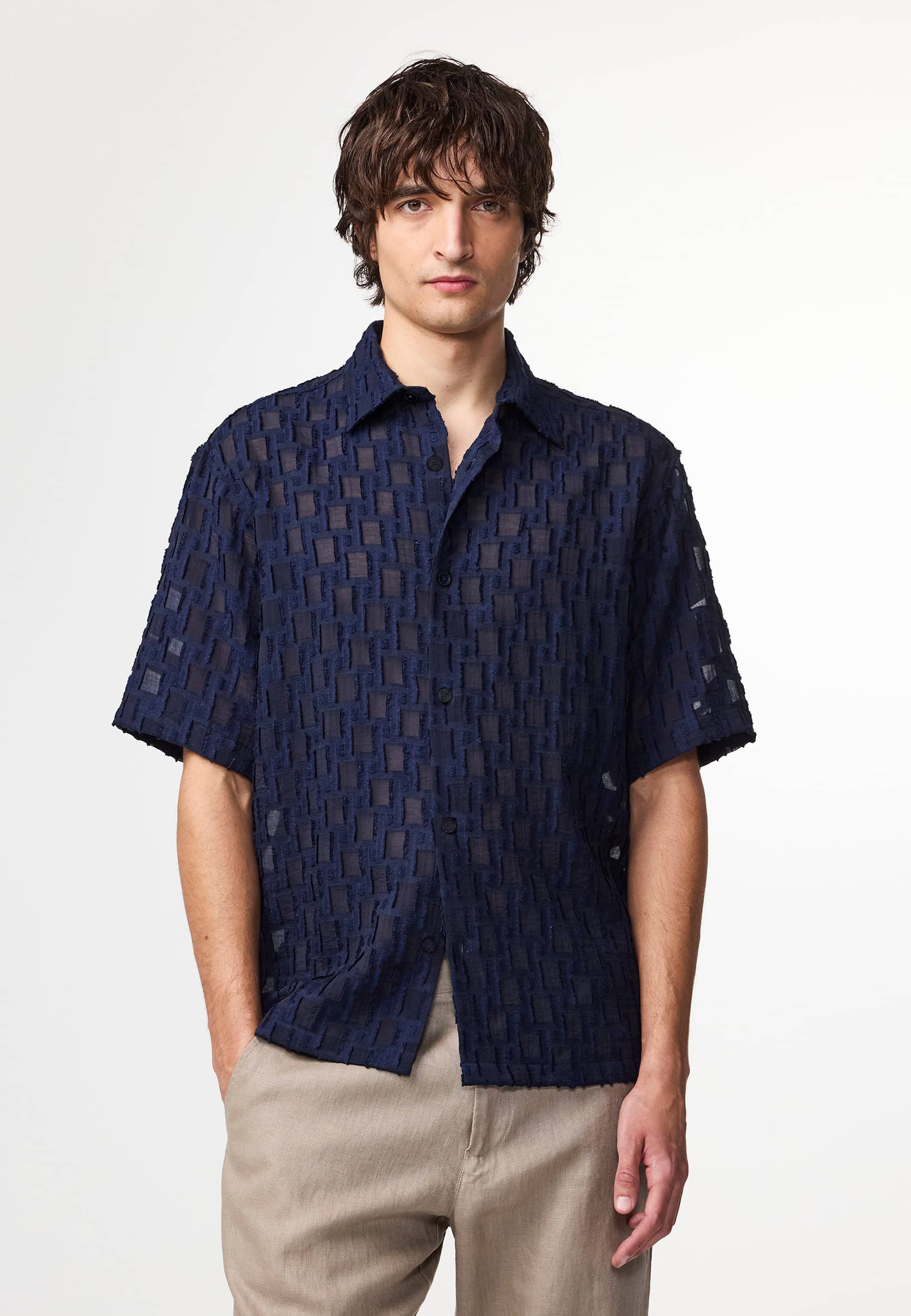 Relaxed-fit shirt made from a LENZING™ ECOVERO™ Viscose fil coupé jaquard blend.