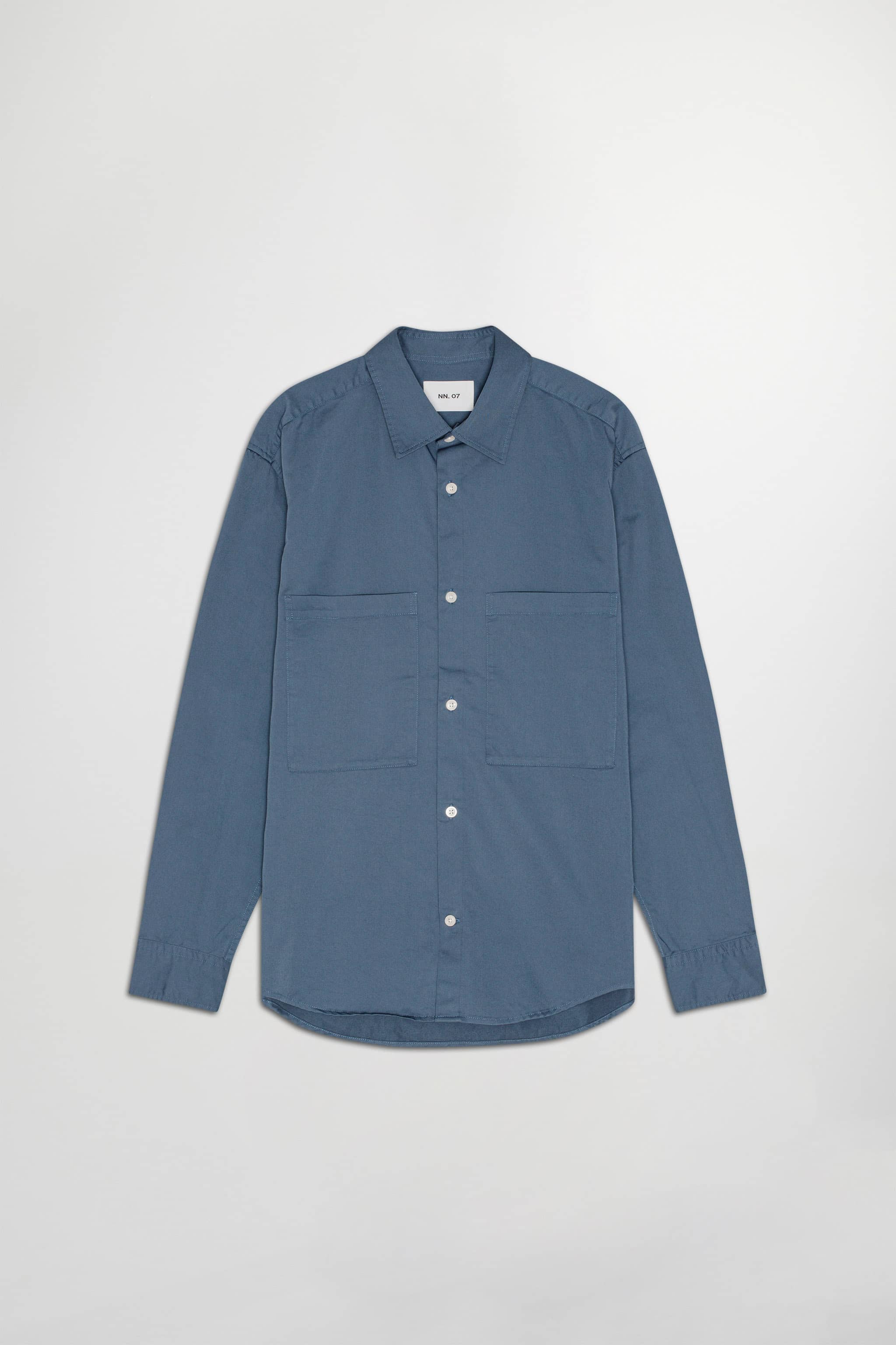 Shirt crafted in an organic cotton blend and woven in a compact twill weave. Designed with workwear-inspired flap pockets. Finished with Mother-of-Pearl buttons.