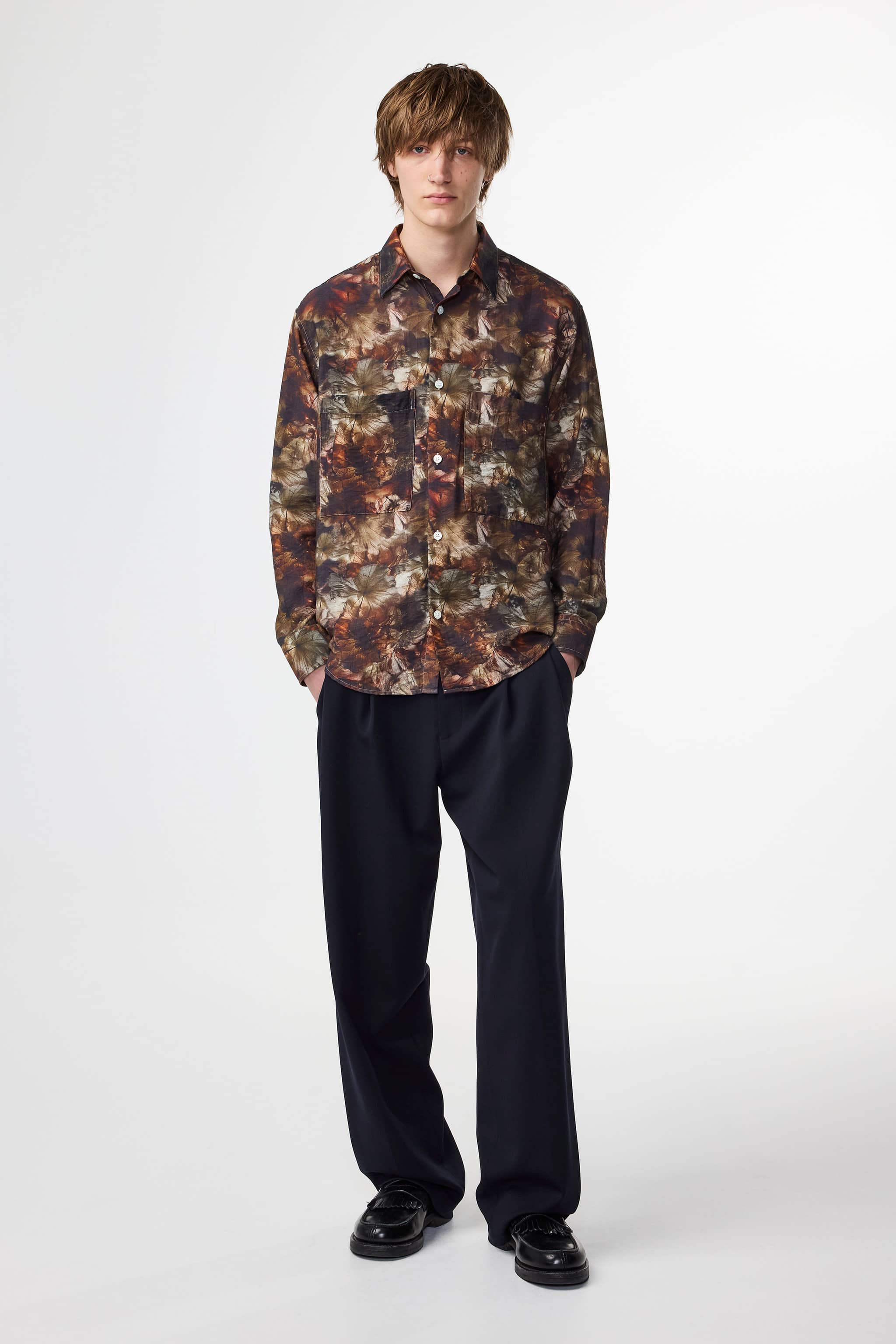 Shirt featuring a digital photo print, crafted from a crisp, lightweight modal blend. Finished with mother-of-pearl buttons for a refined touch.