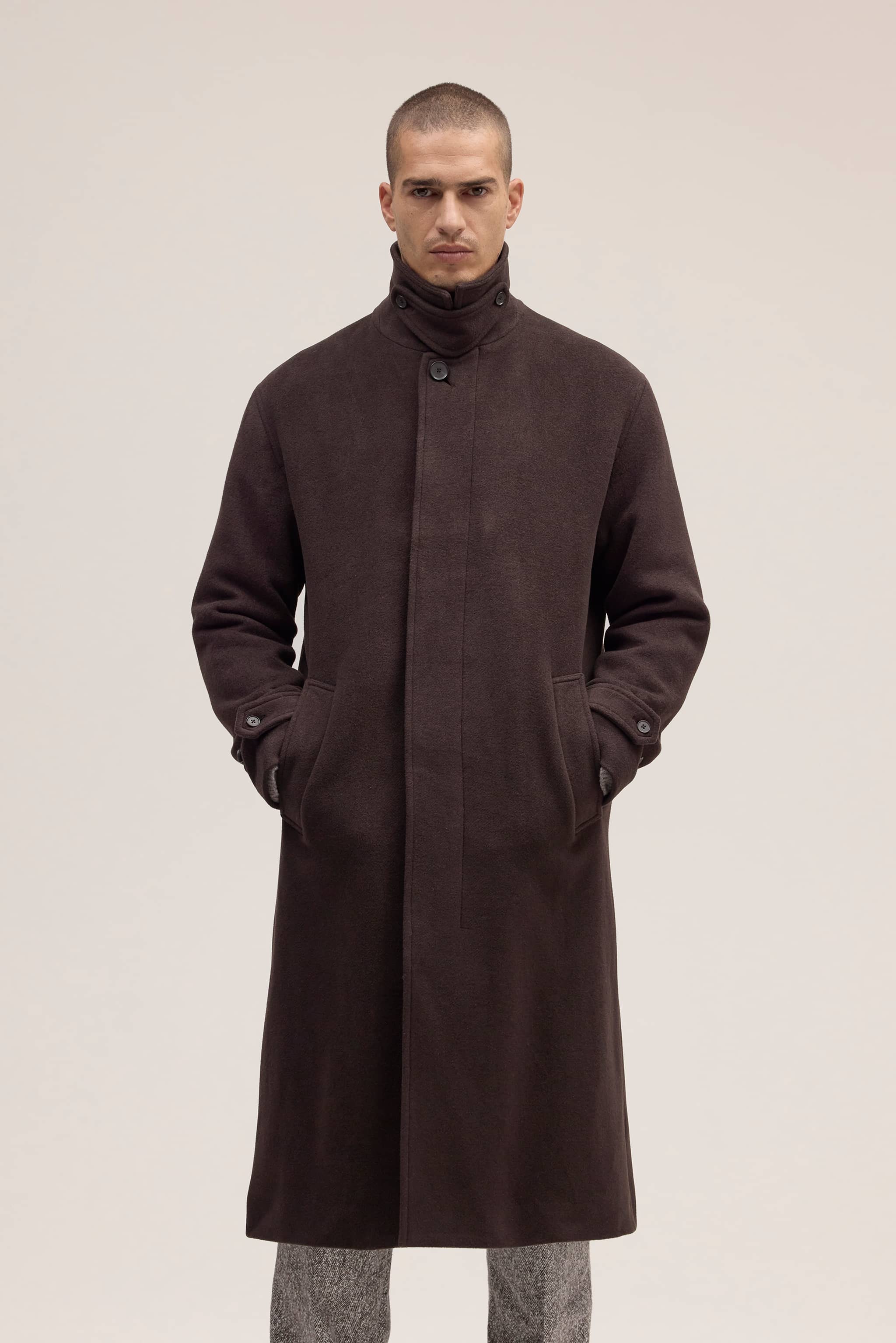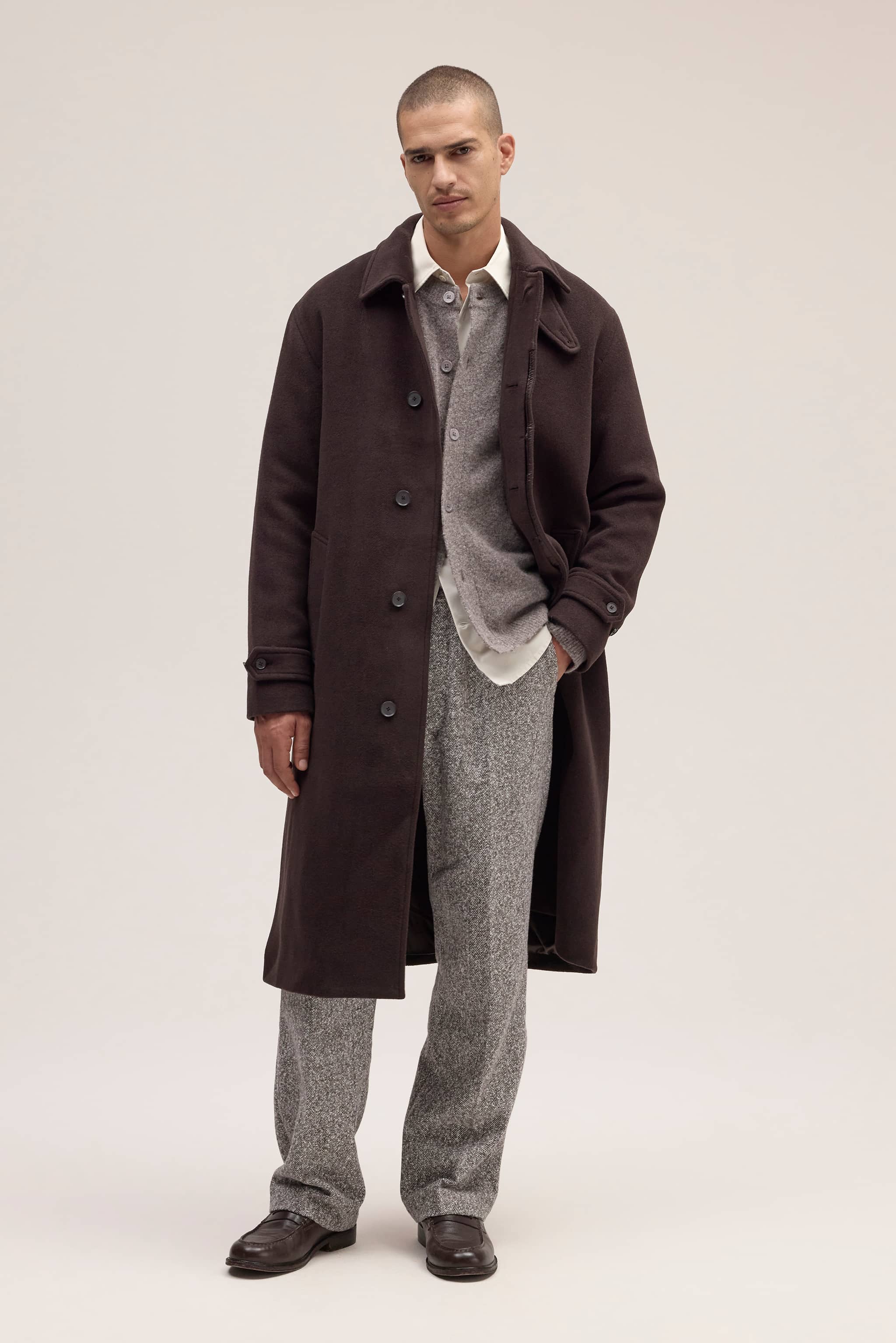 Crafted with Italian fabric from Manteco, this heavyweight wool coat blends recycled wool and TENCEL™ Lyocell. It is made for temperatures down to 0°C and features Earthhorn buttons and a regular fit for comfort and elegance.