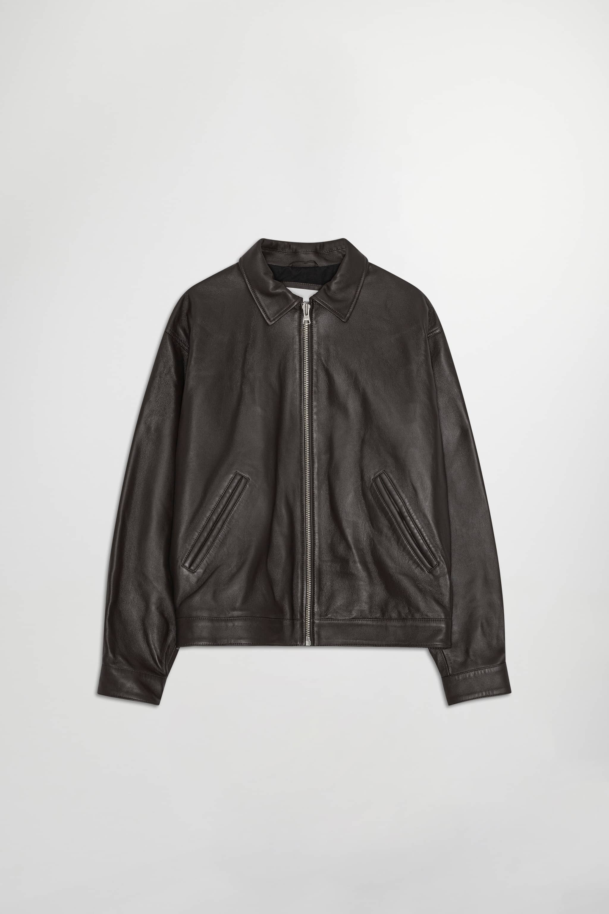 Sleek zip-up jacket in a relaxed fit, crafted from smooth lamb leather with a shiny handfeel.