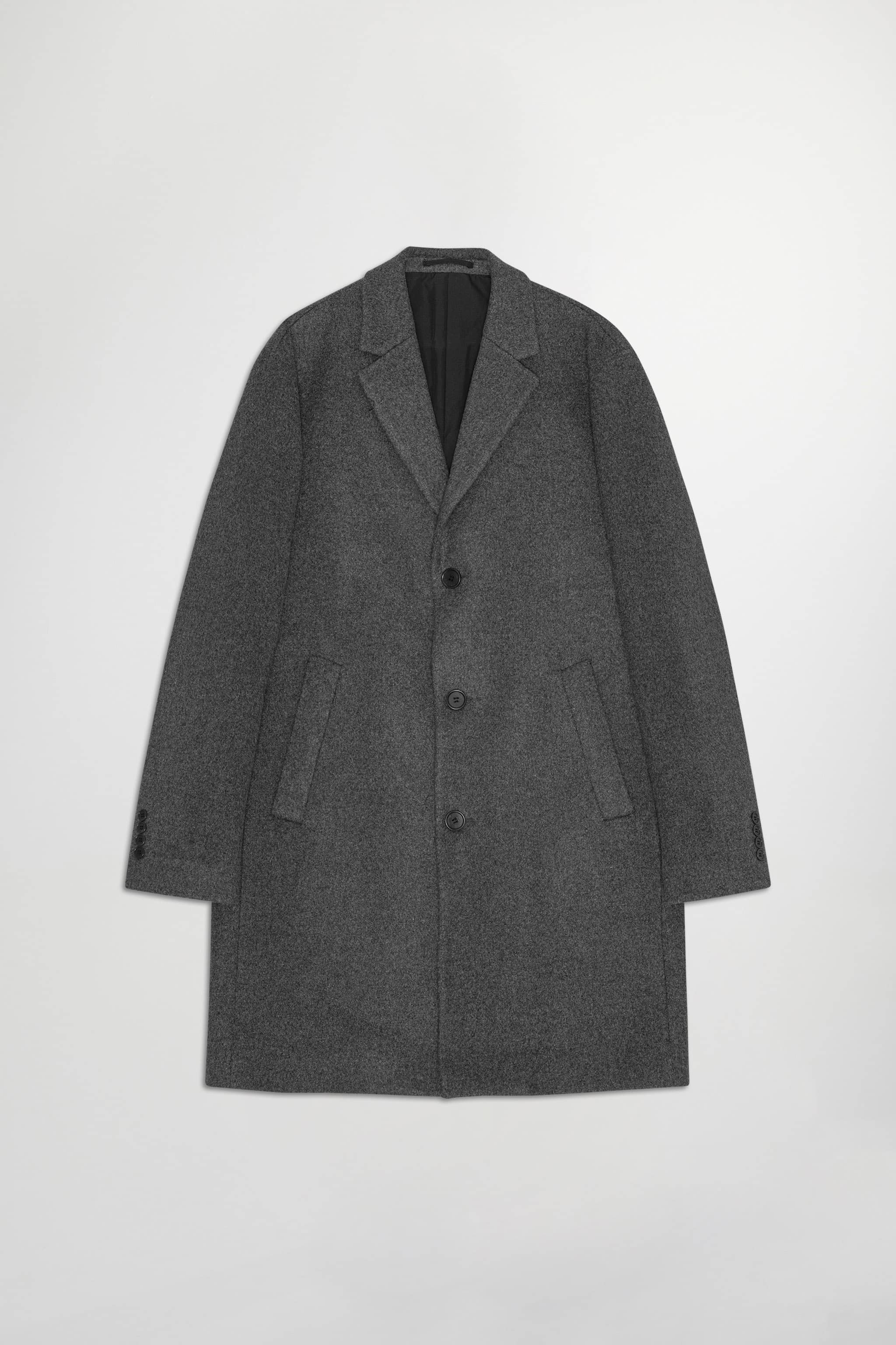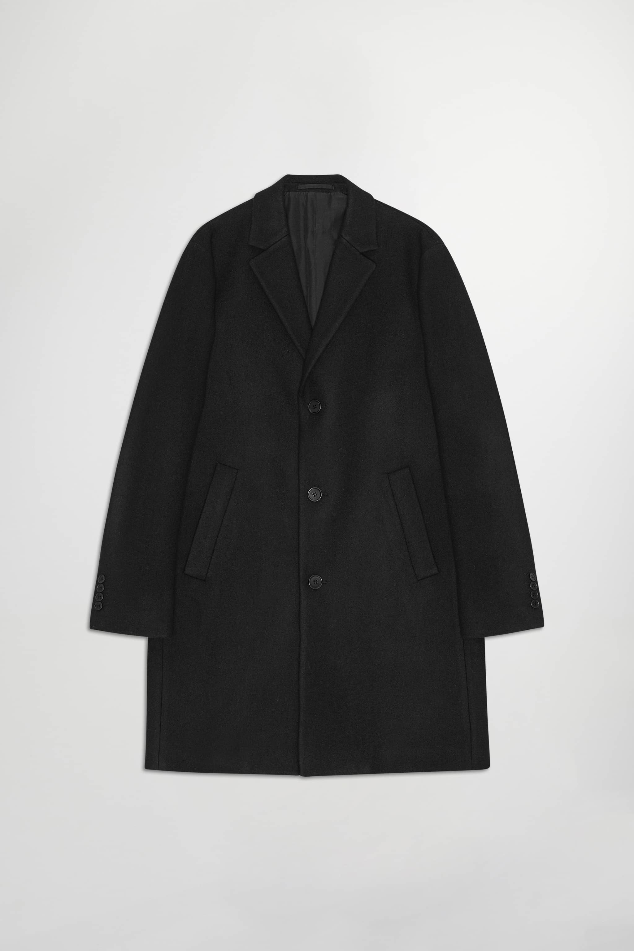 A classic mid-length coat, fully lined and crafted from a soft and heavyweight virgin wool blend.