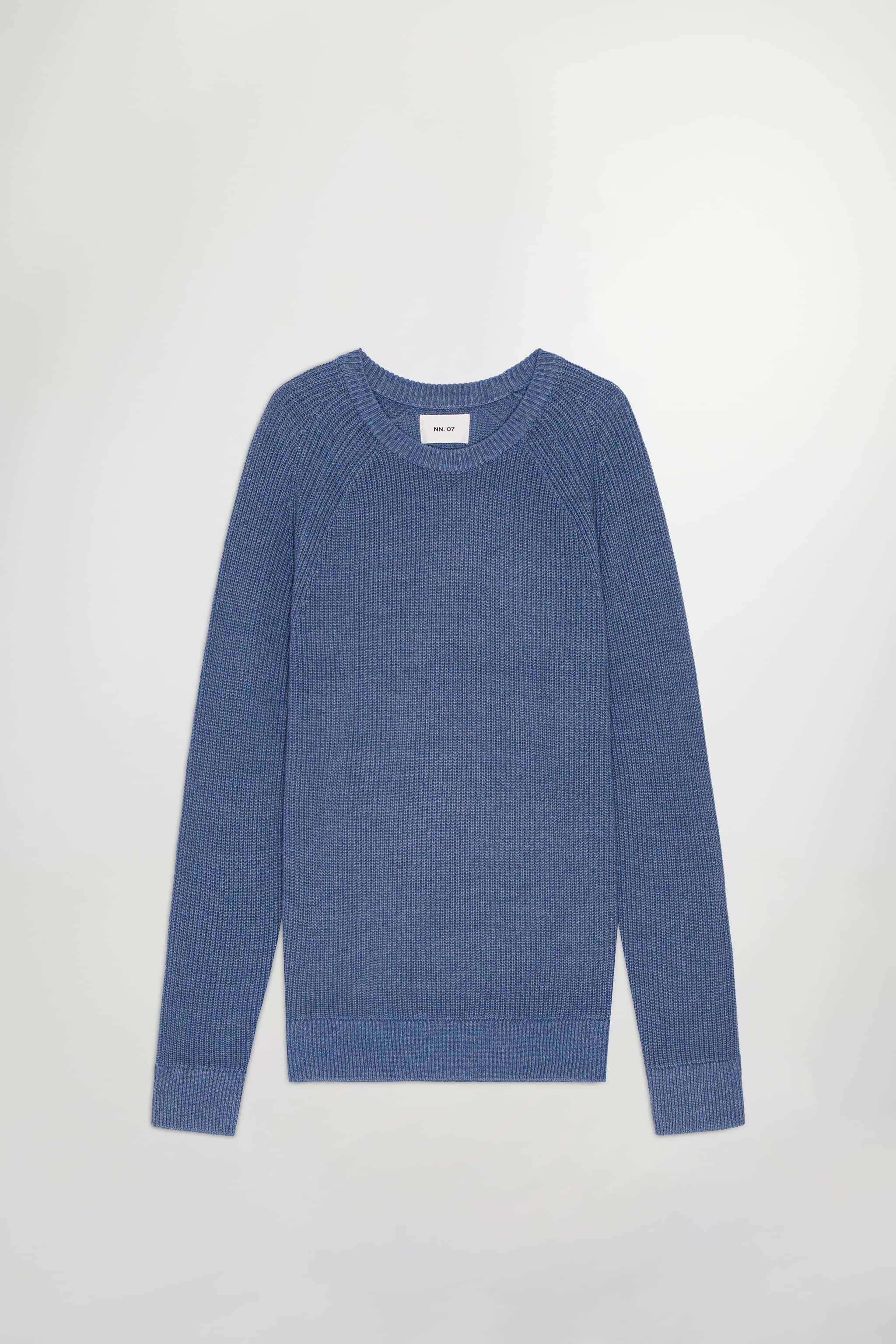 Crewneck crafted in a soft cotton, knit in a half-cardigan stitch.
