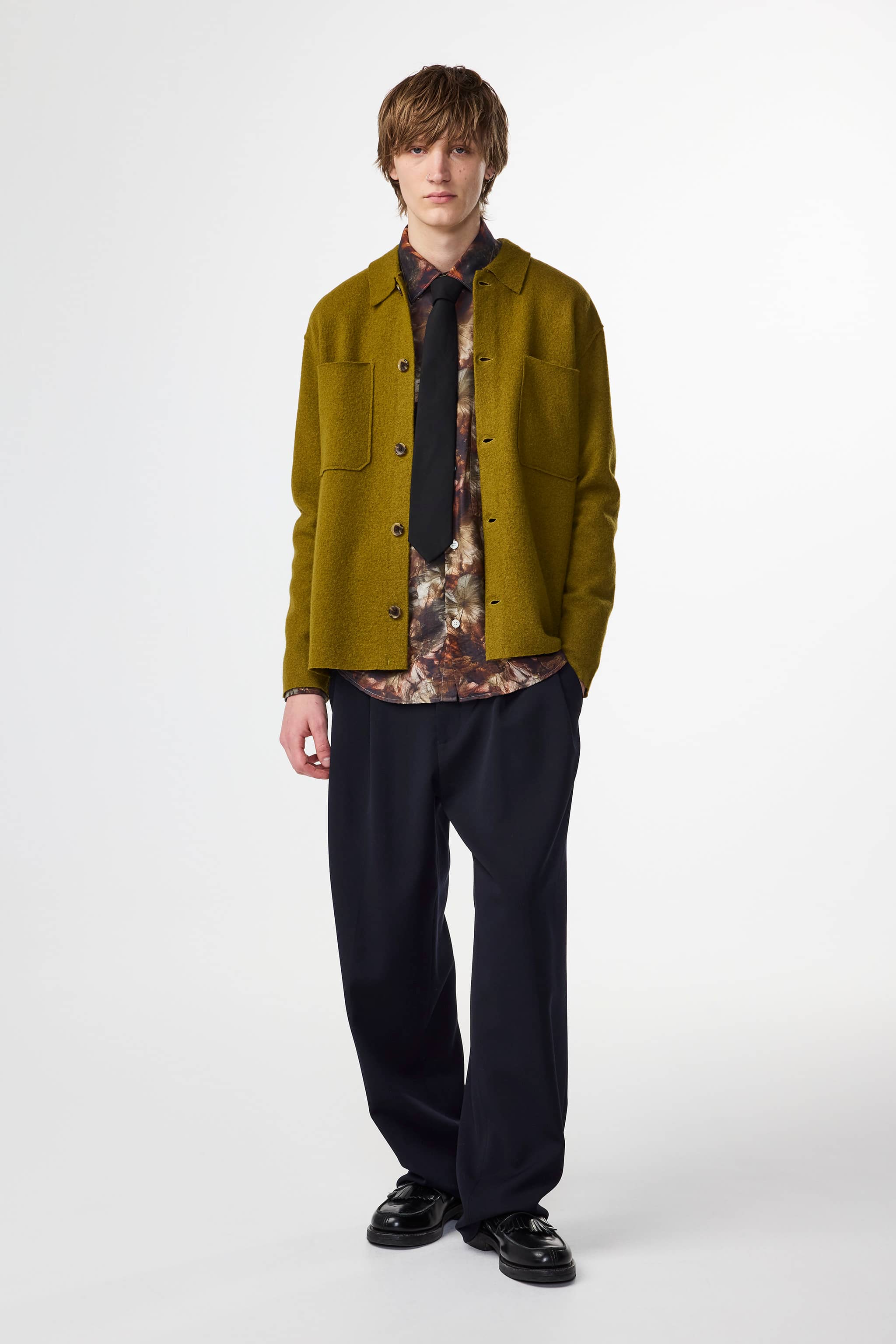 Casual overshirt crafted in soft, lightweight boiled Merino wool, designed with a shirting collar, raw edges, and NN.07 logo buttons.