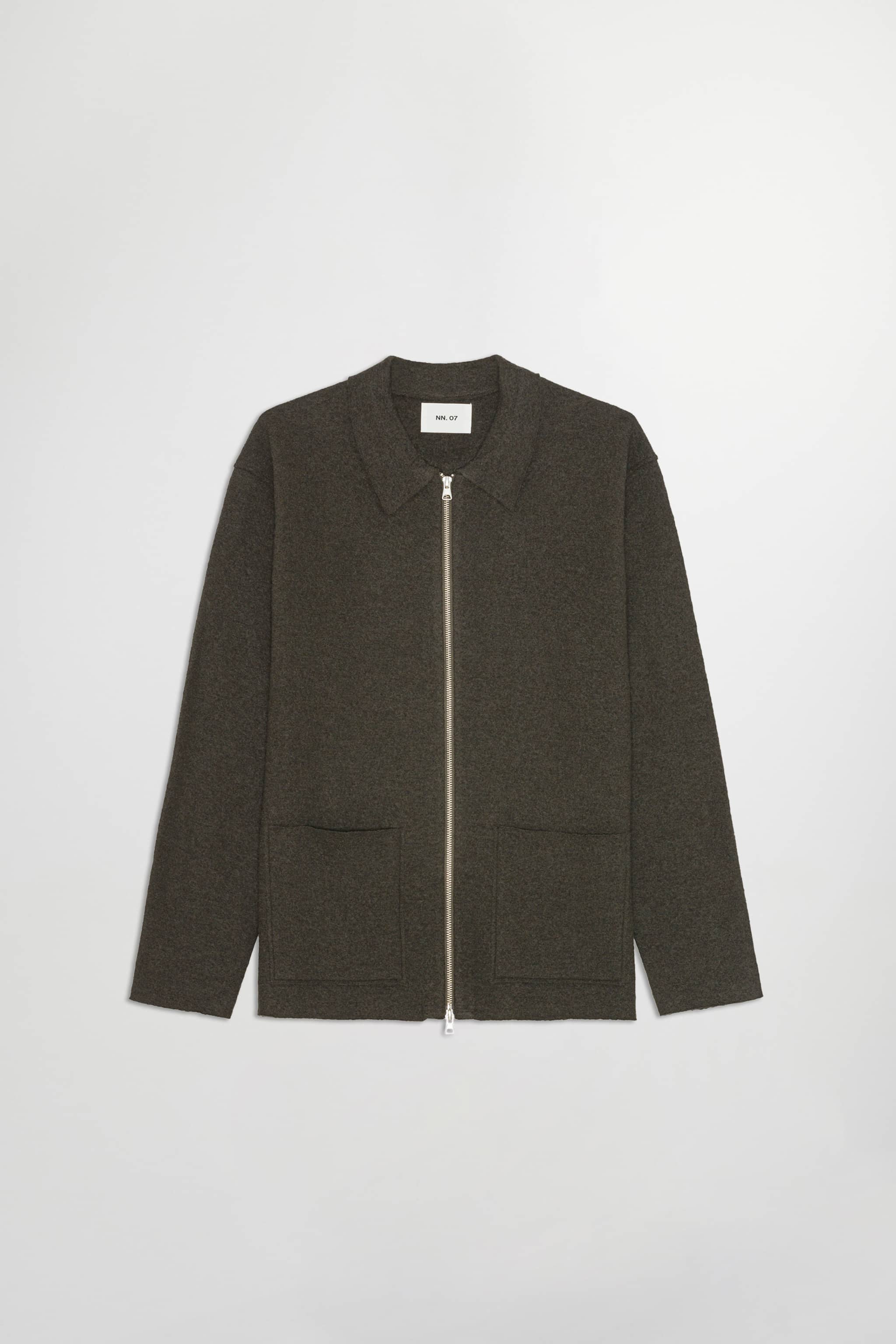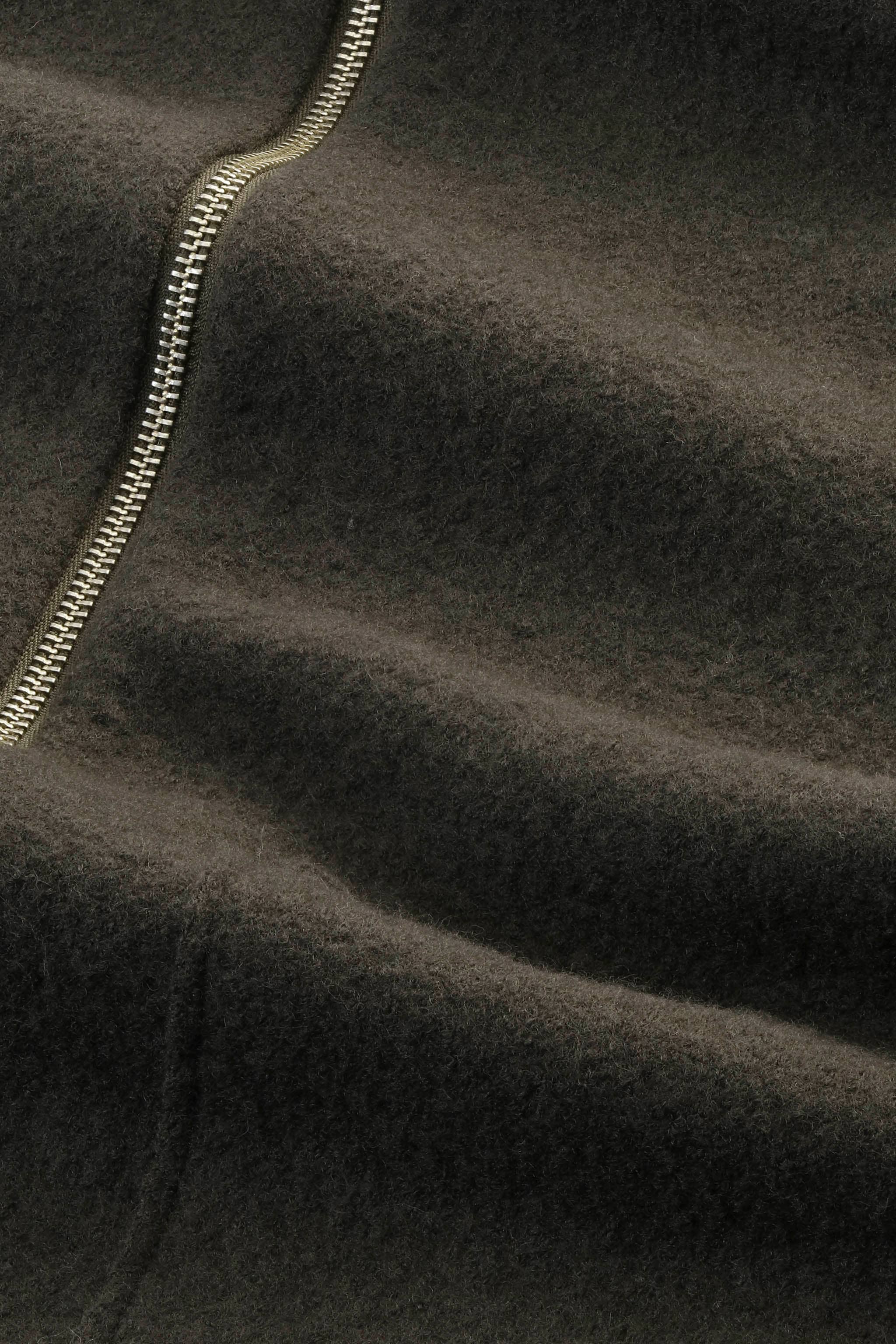 Regular-fit hybrid jacket crafted from 100% boiled Merino wool, offering a fluffy, textured handfeel. Designed with raw-edged boiled wool details and a full zip closure with a signature logo zip.