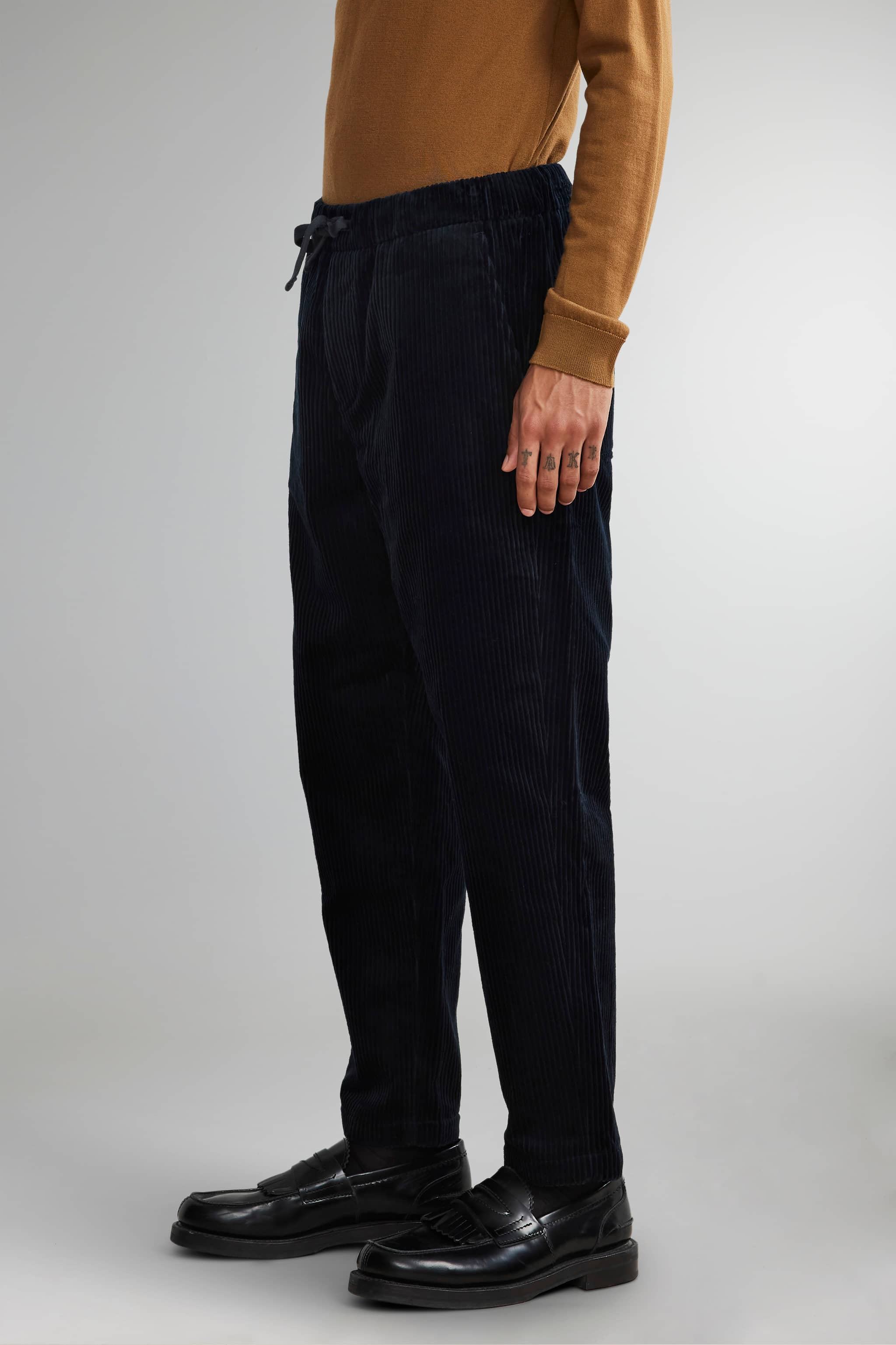 Cropped, tapered leg trousers in a relaxed fit crafted in a wide-wale 360 g/m2 cotton corduroy. Designed for comfort with a drawstring and an elasticized waist.